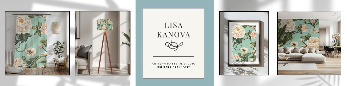 Afternoon Tea in the Parlour | Exclusive License | Pink, Teal and Green Floral Seamless Repeat Pattern | Lisa Kanova Surface Design