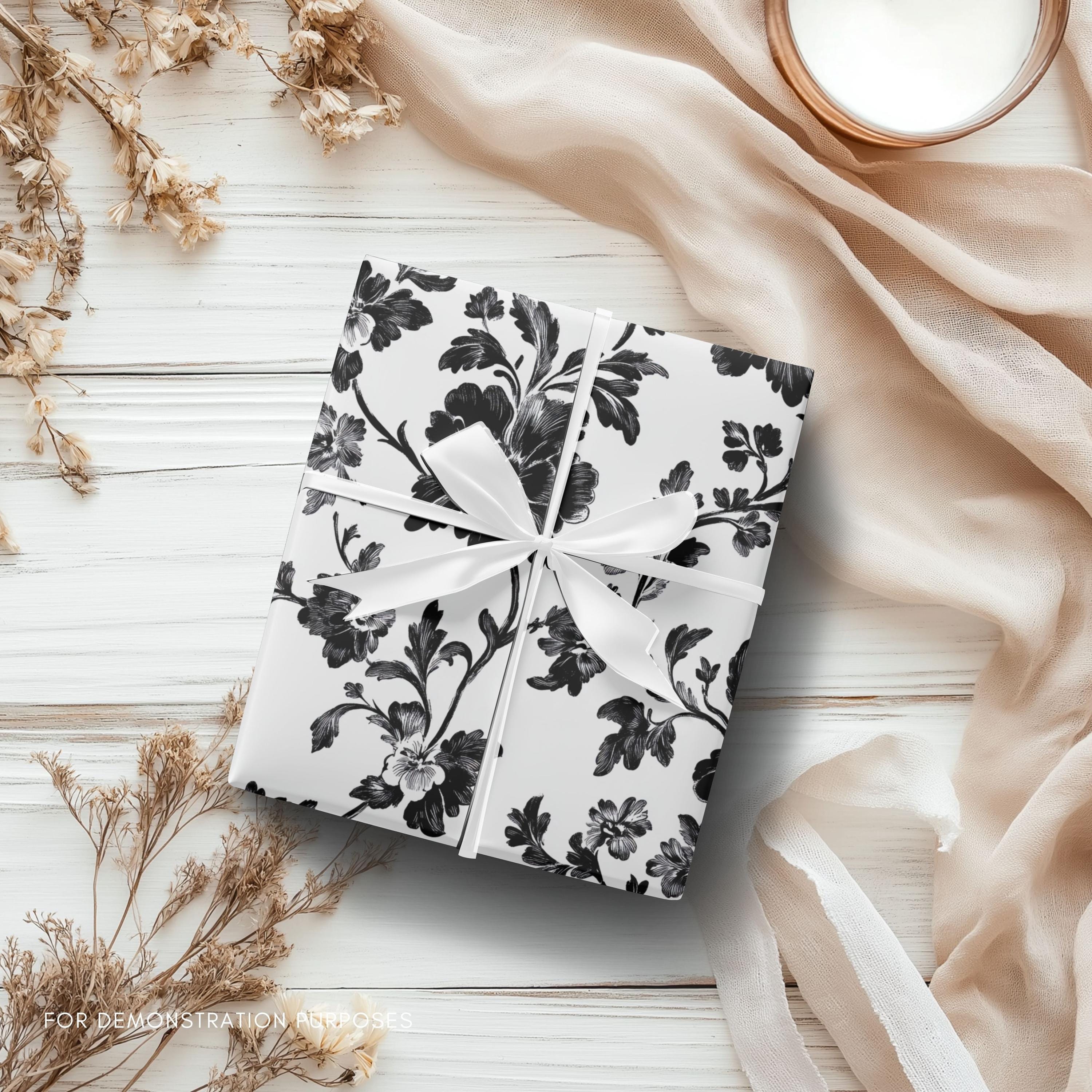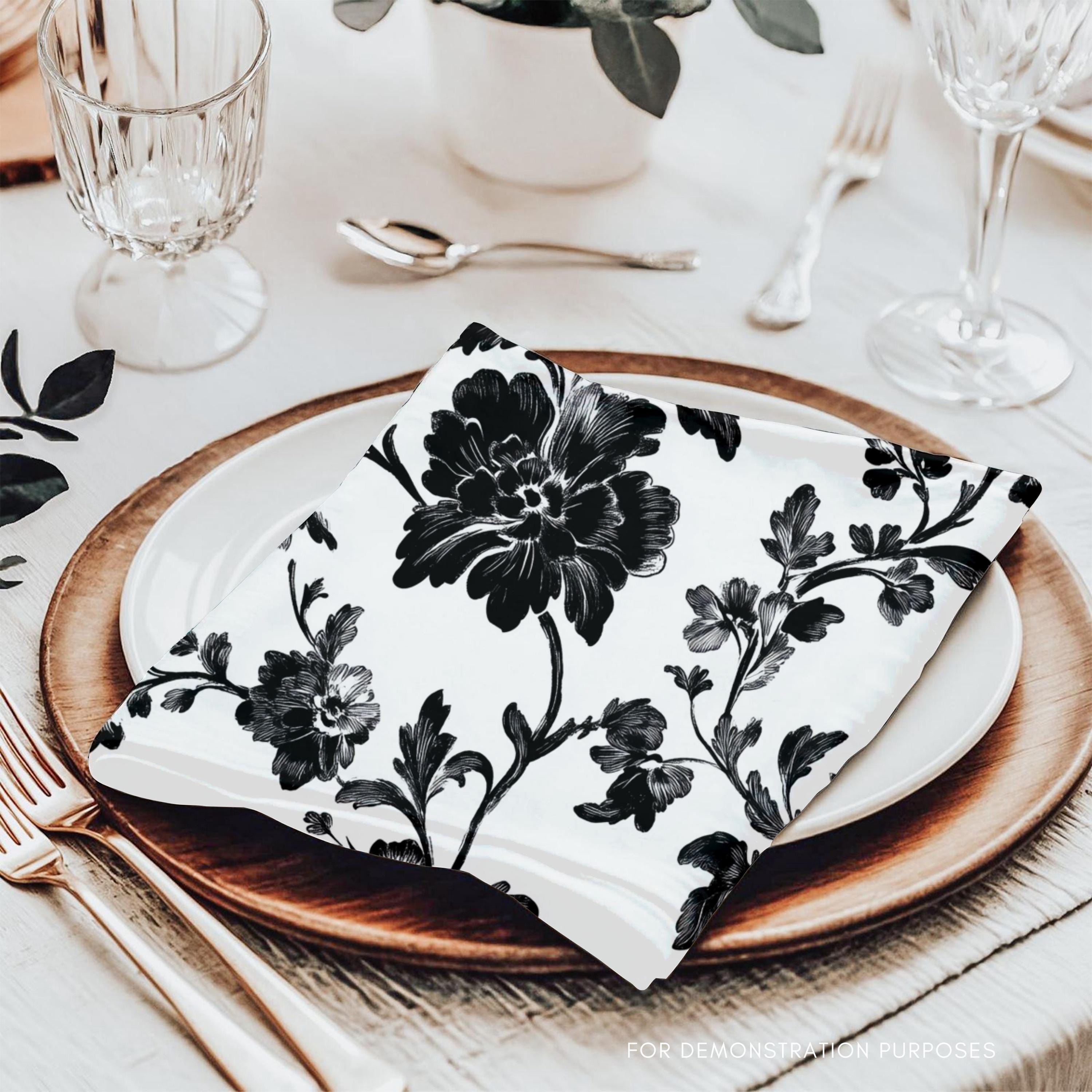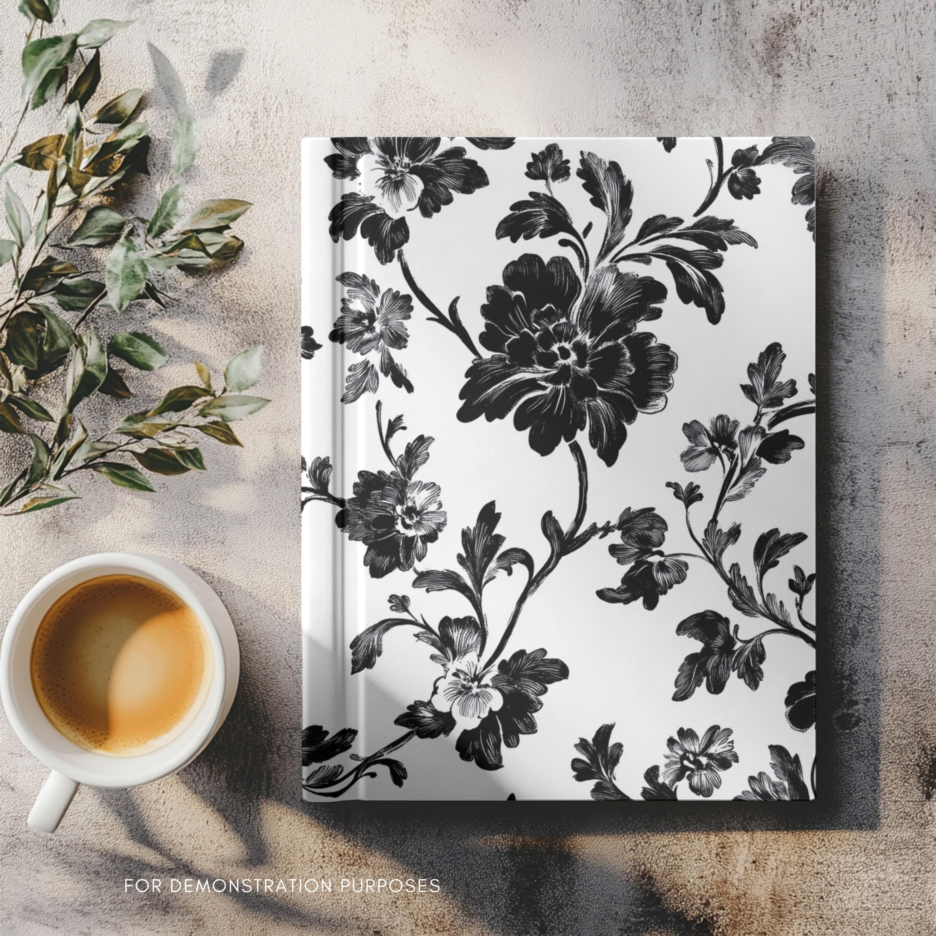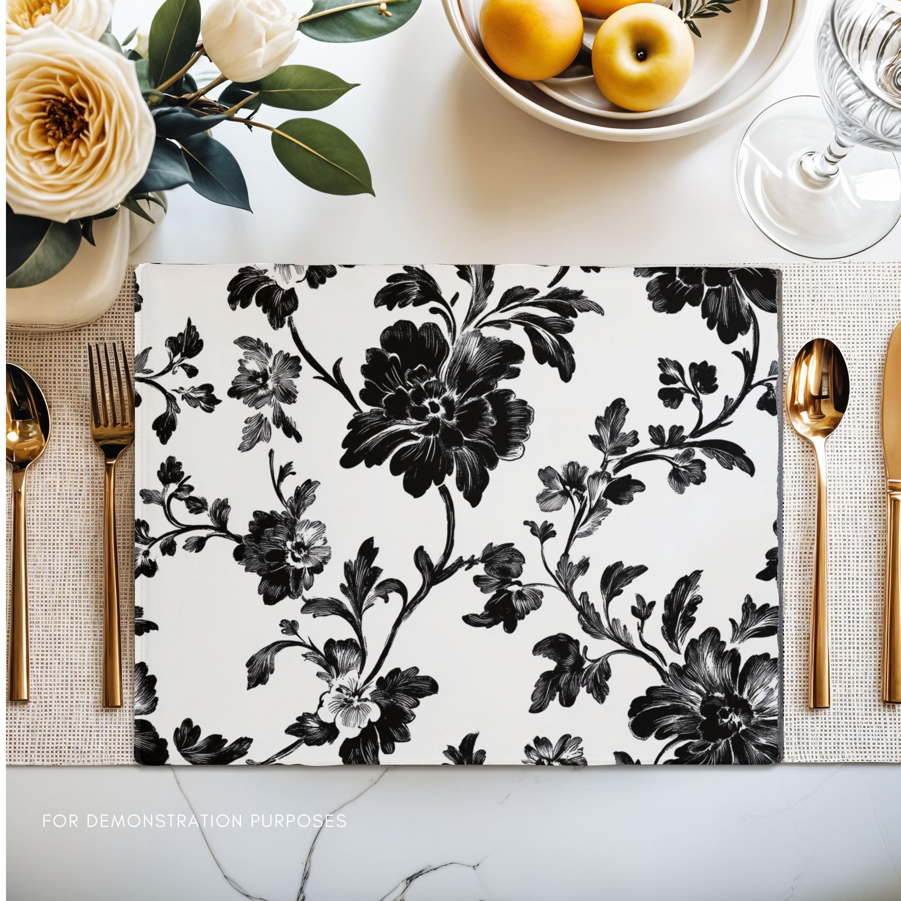 Velvety black petals bloom across a crisp white backdrop in this moody yet refined floral. With the softness of hand-drawn ink and the elegance of vintage etchings, this seamless design adds dramatic charm to fabric projects, stationery, and chic monochrome decor.