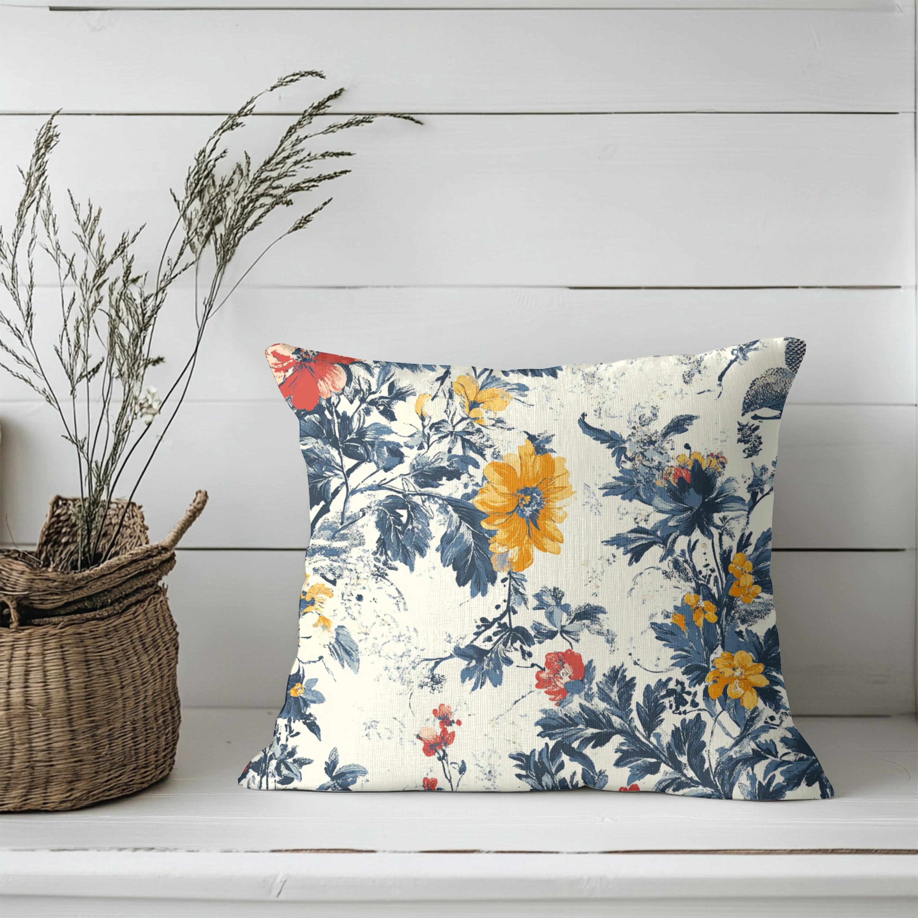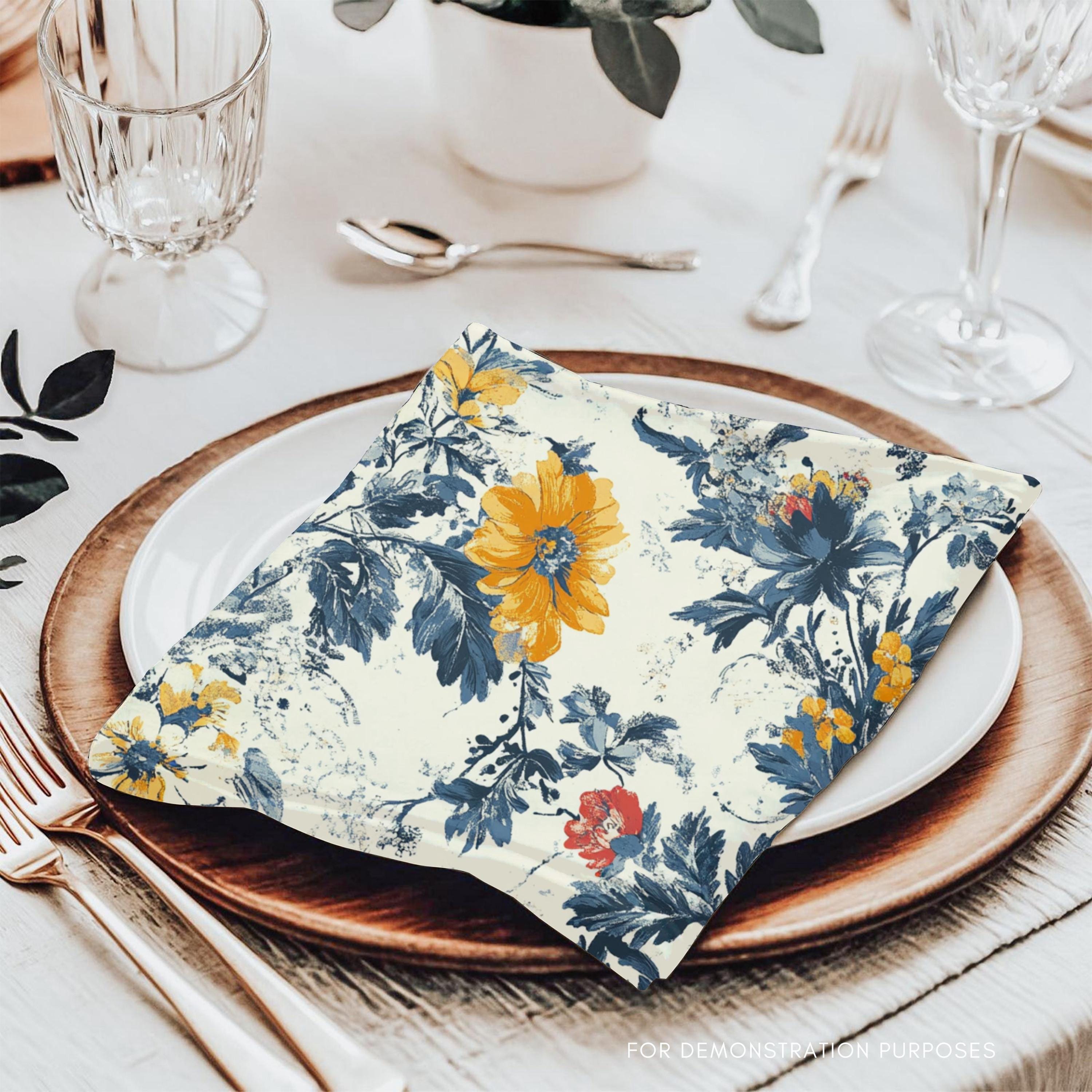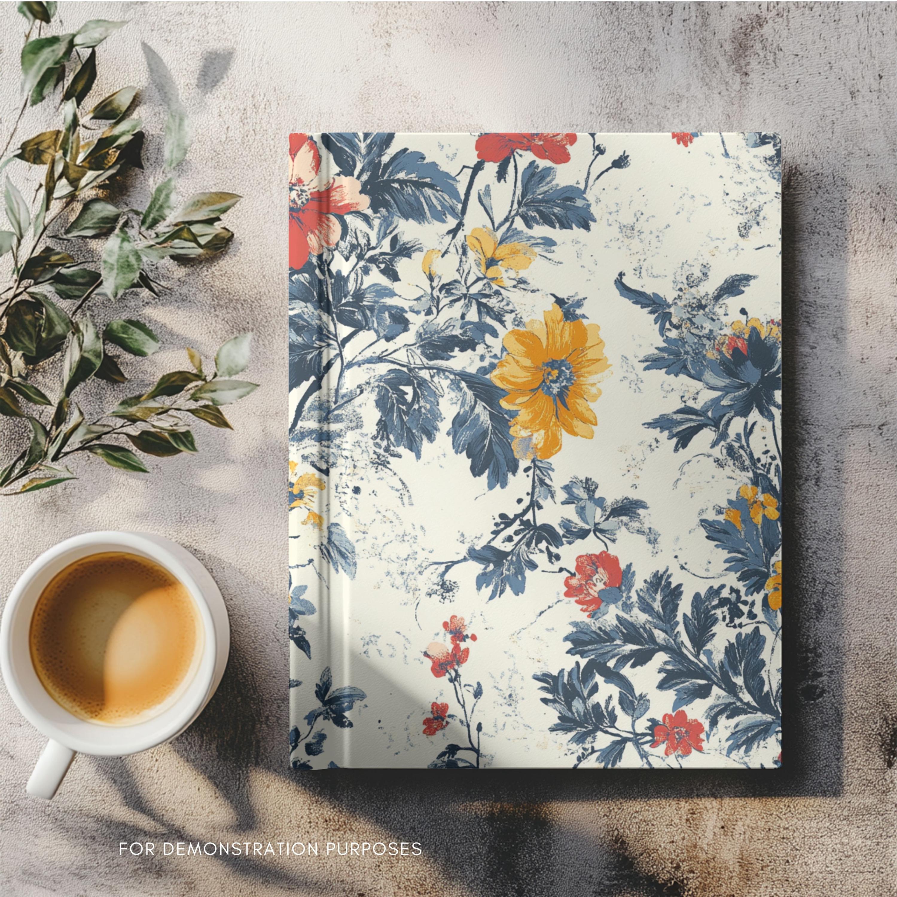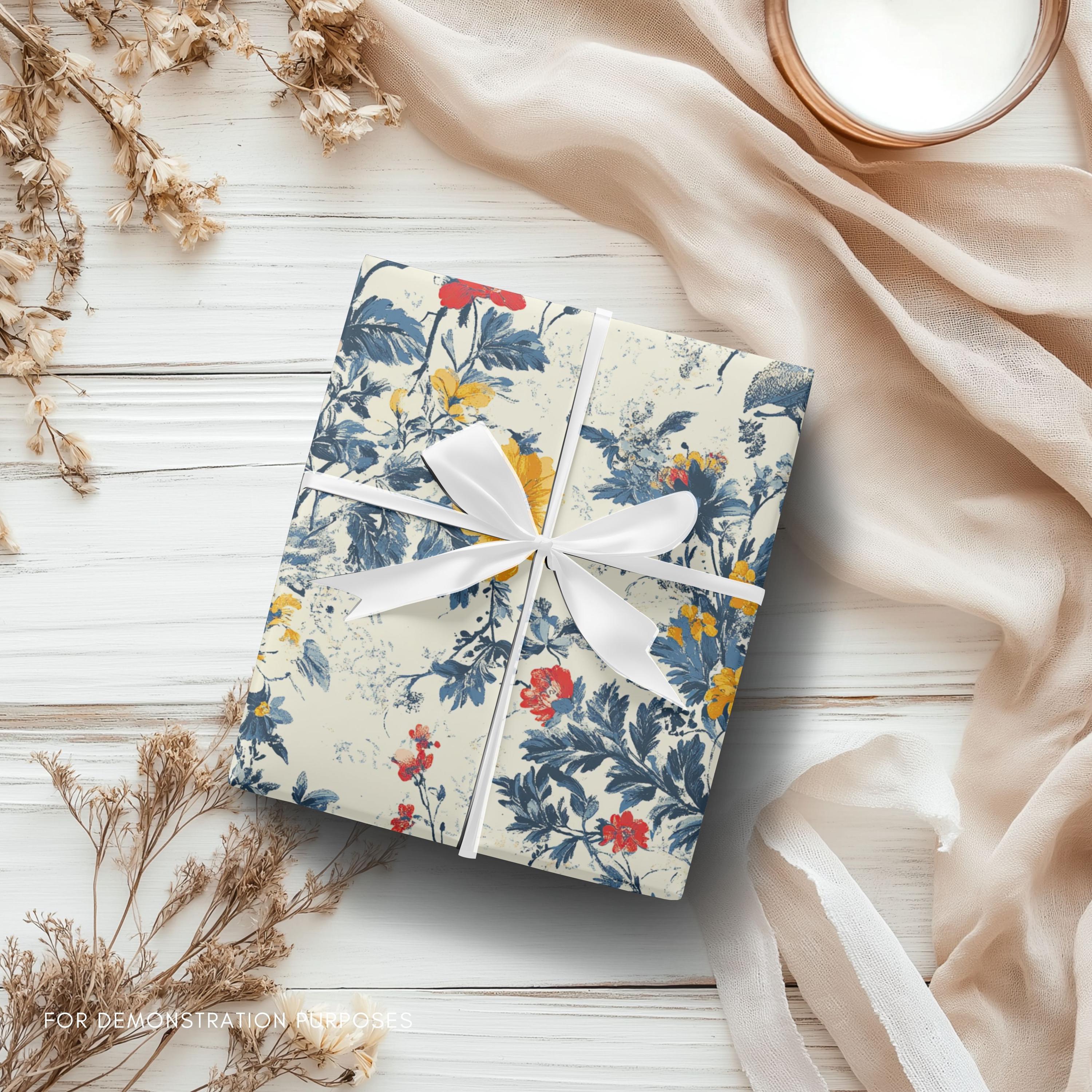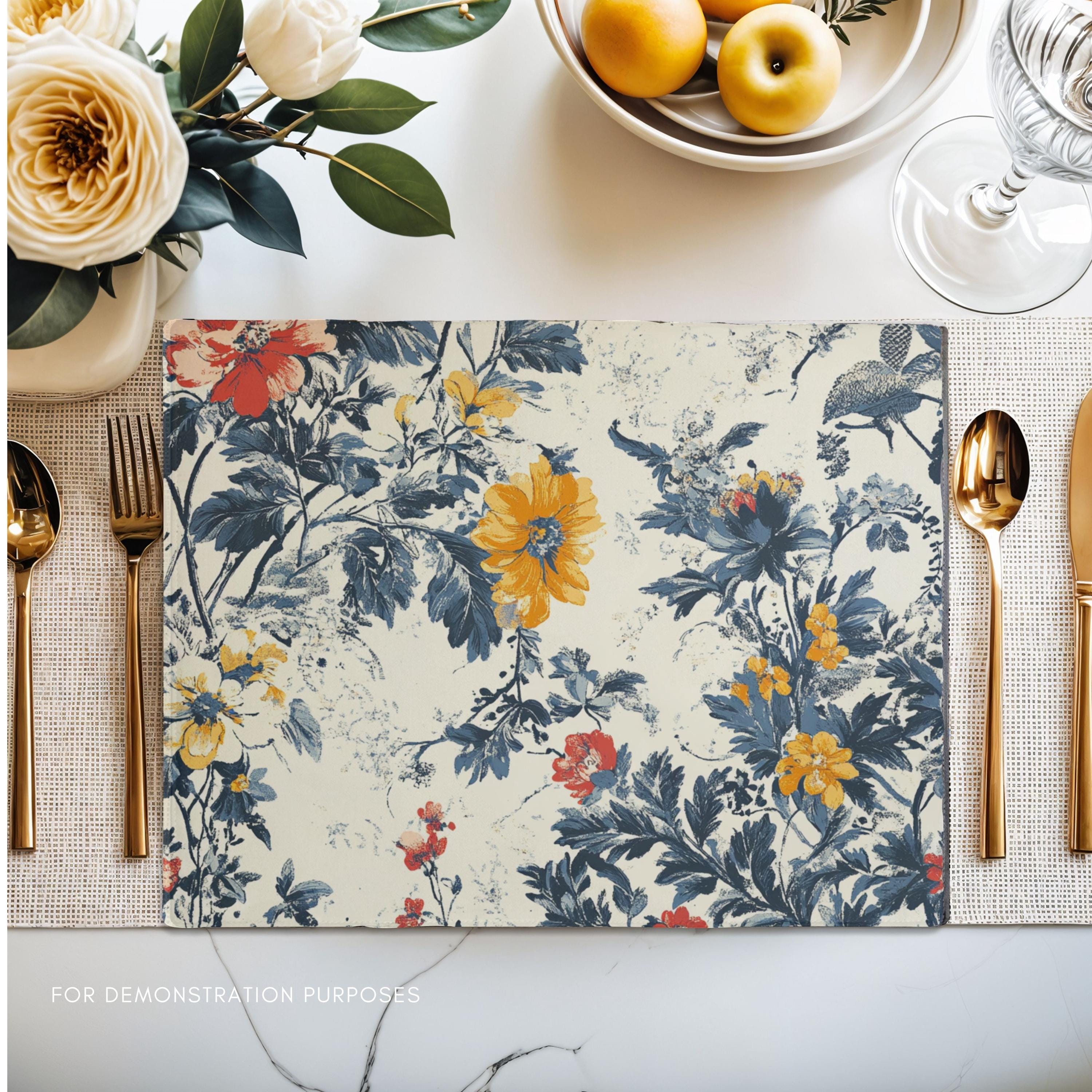 A painterly tangle of scarlet, gold, and indigo blooms sweeps across this distressed ivory canvas, evoking the charm of a forgotten parlor garden. With vintage grit and romantic soul, this seamless floral is made for fabric, wallpaper, and story-rich designs.