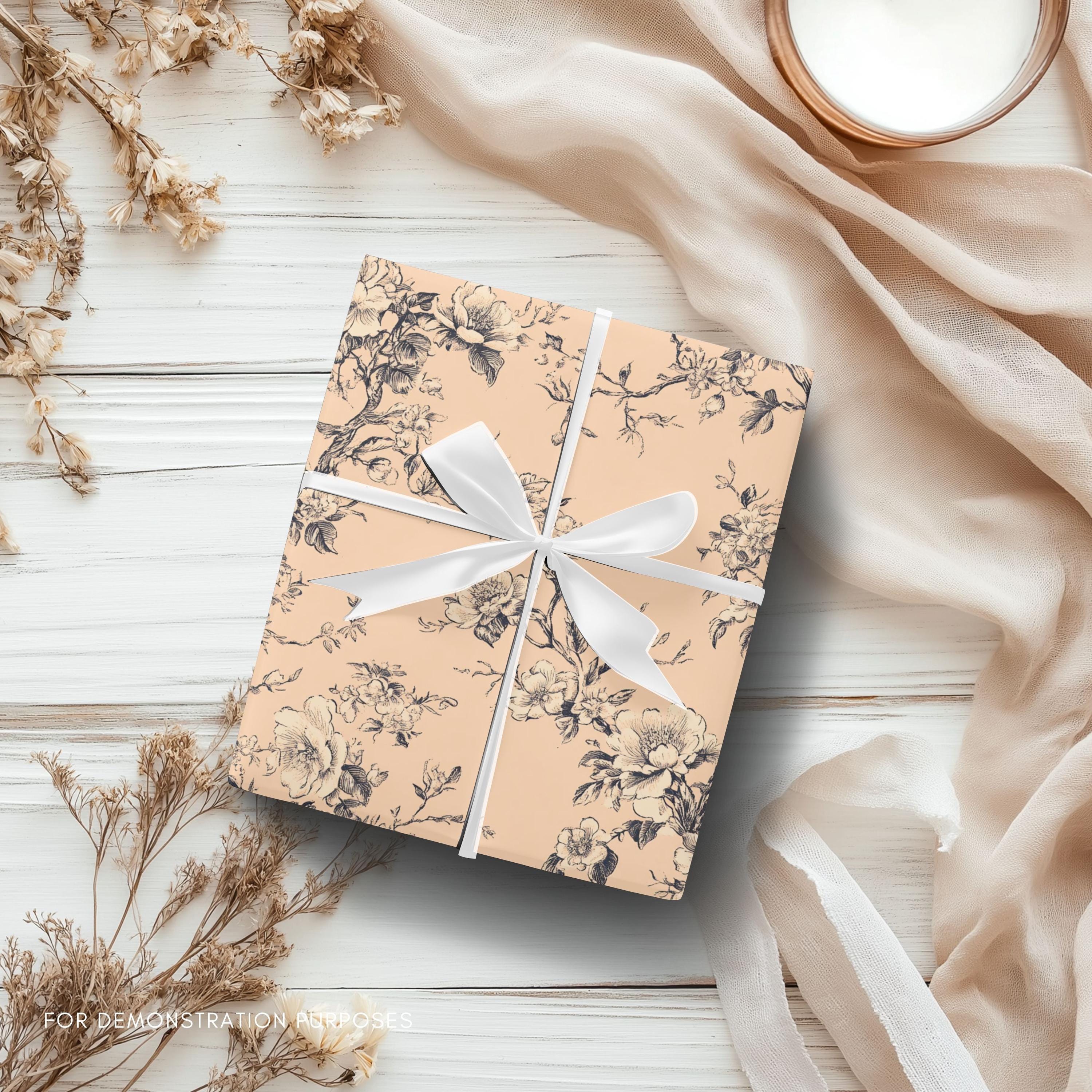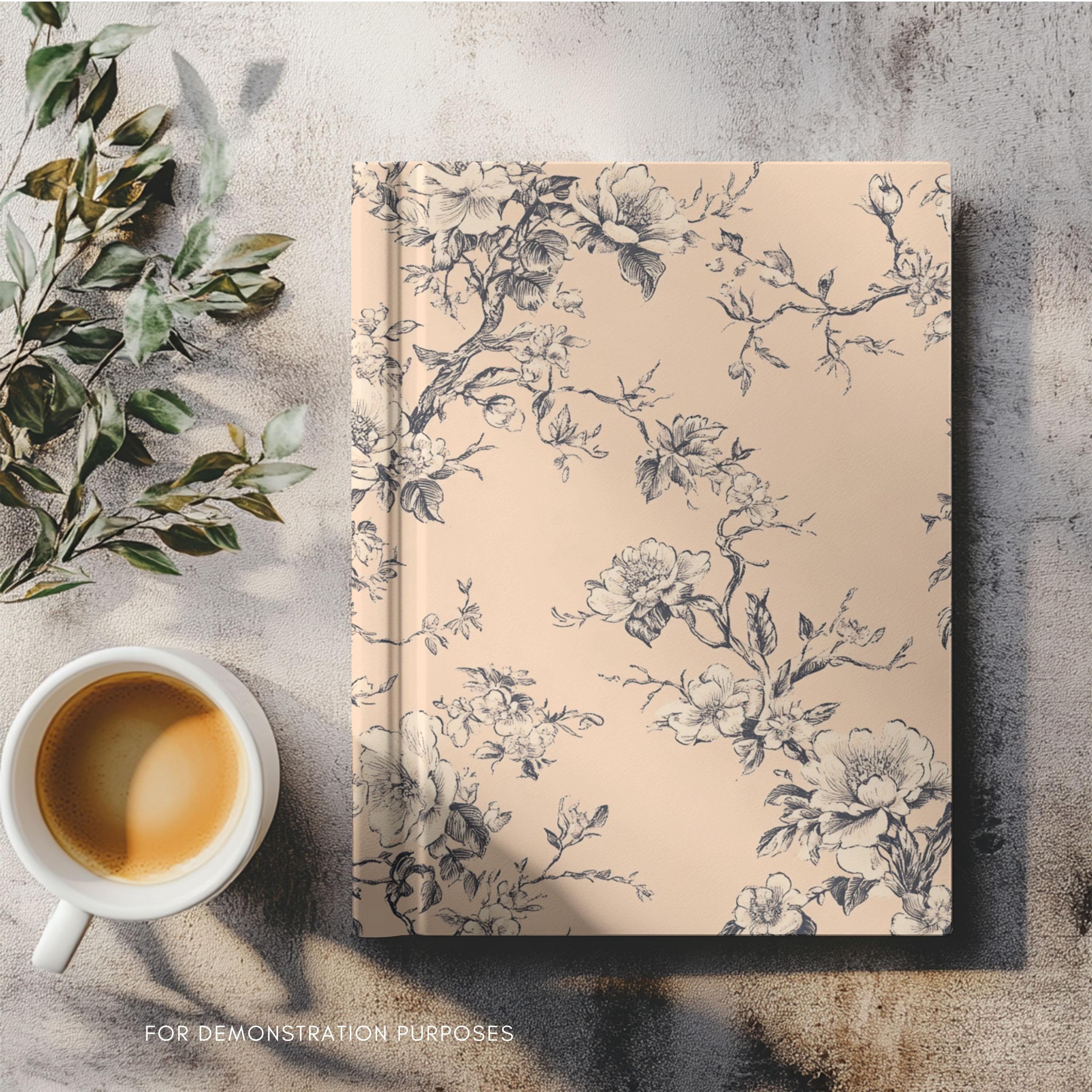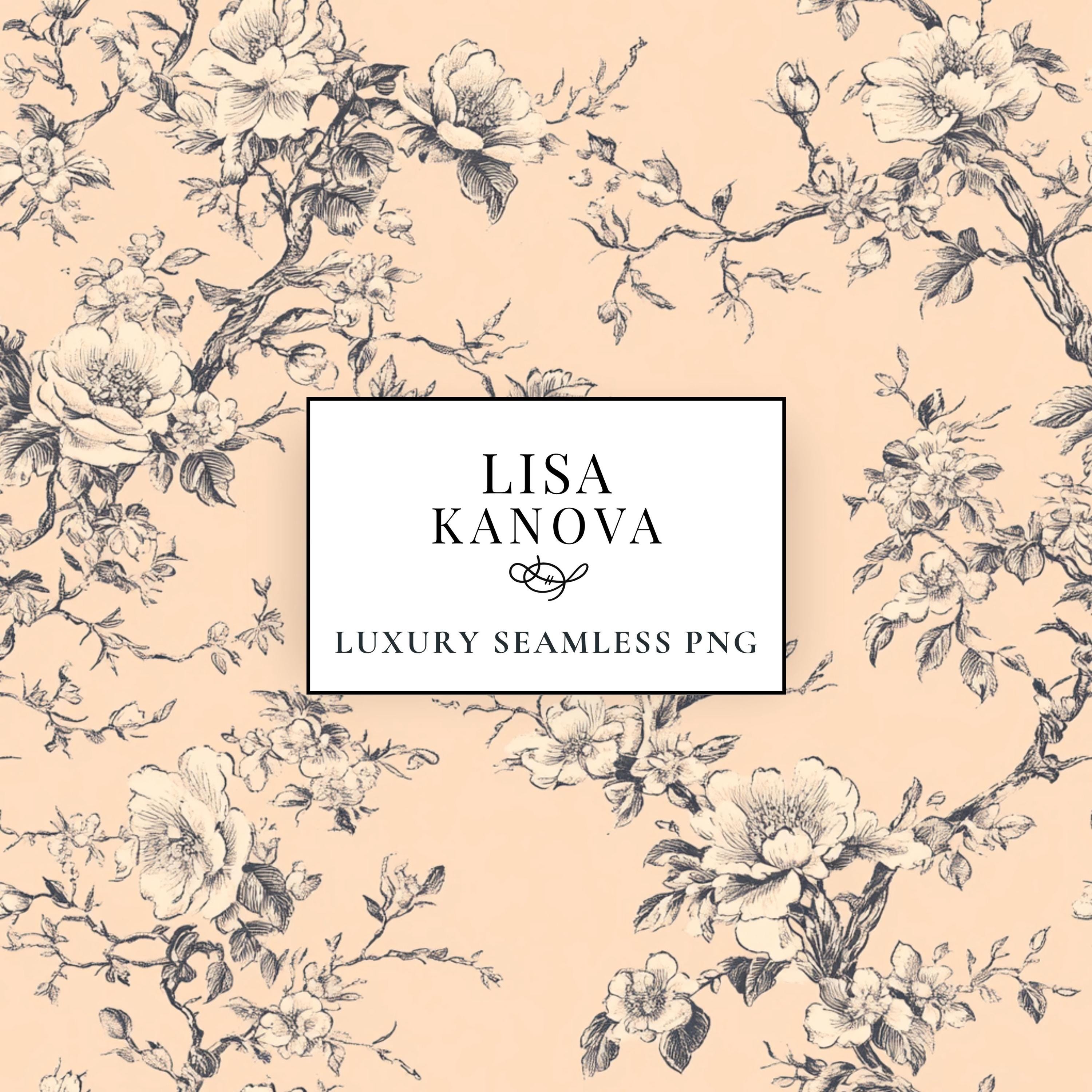 Ornate inky florals stretch across a warm peach background in this timeless toile-inspired design. Delicate yet structured, this seamless pattern blends vintage elegance with soft modern color—perfect for wallpaper, textiles, or elevated digital projects.
