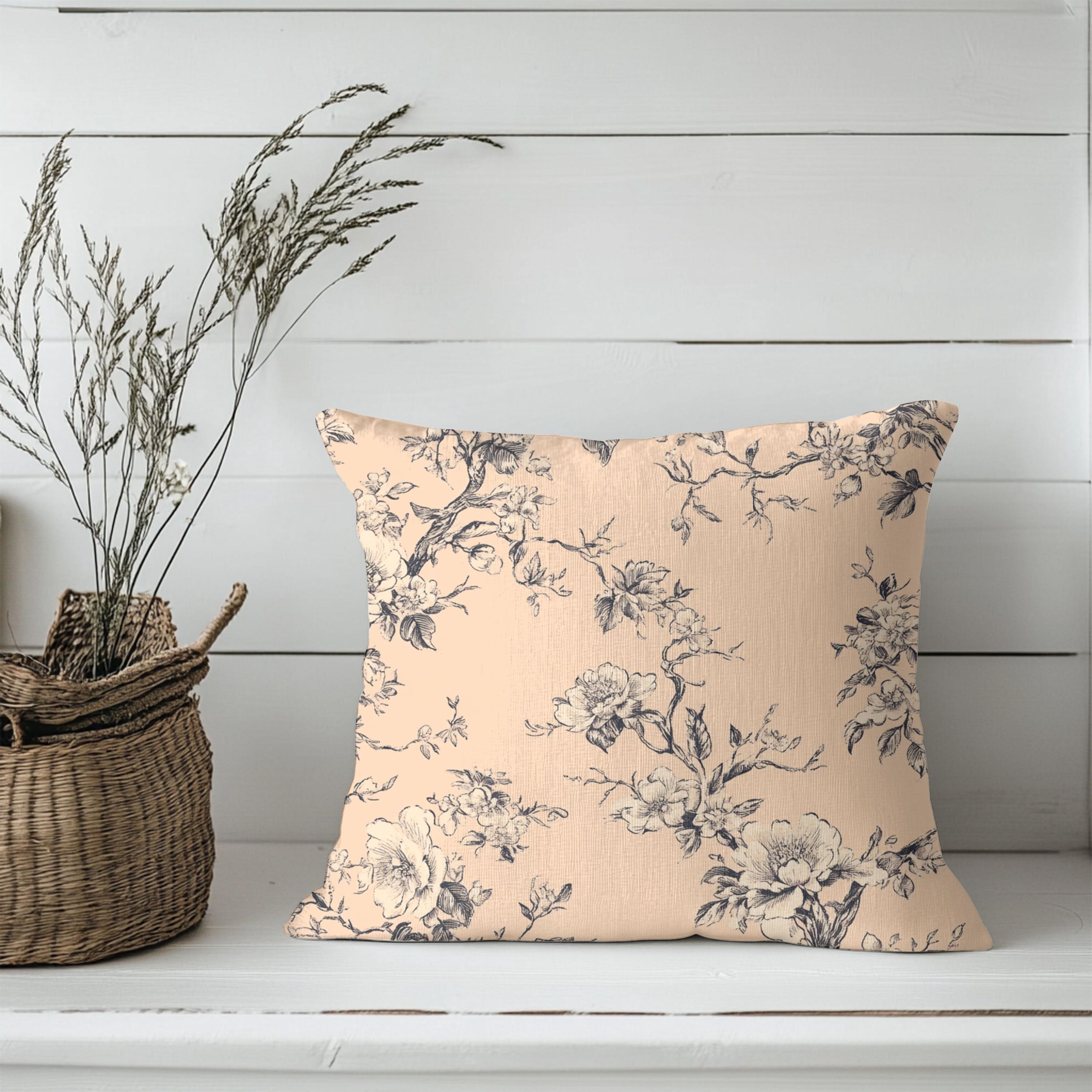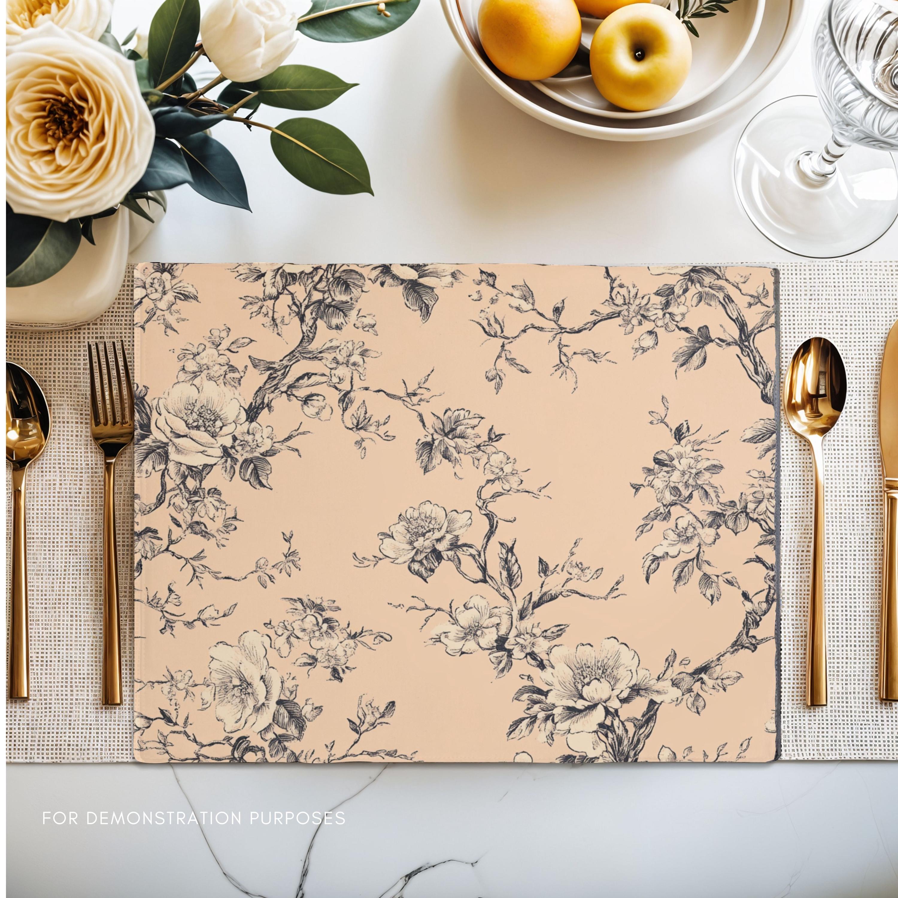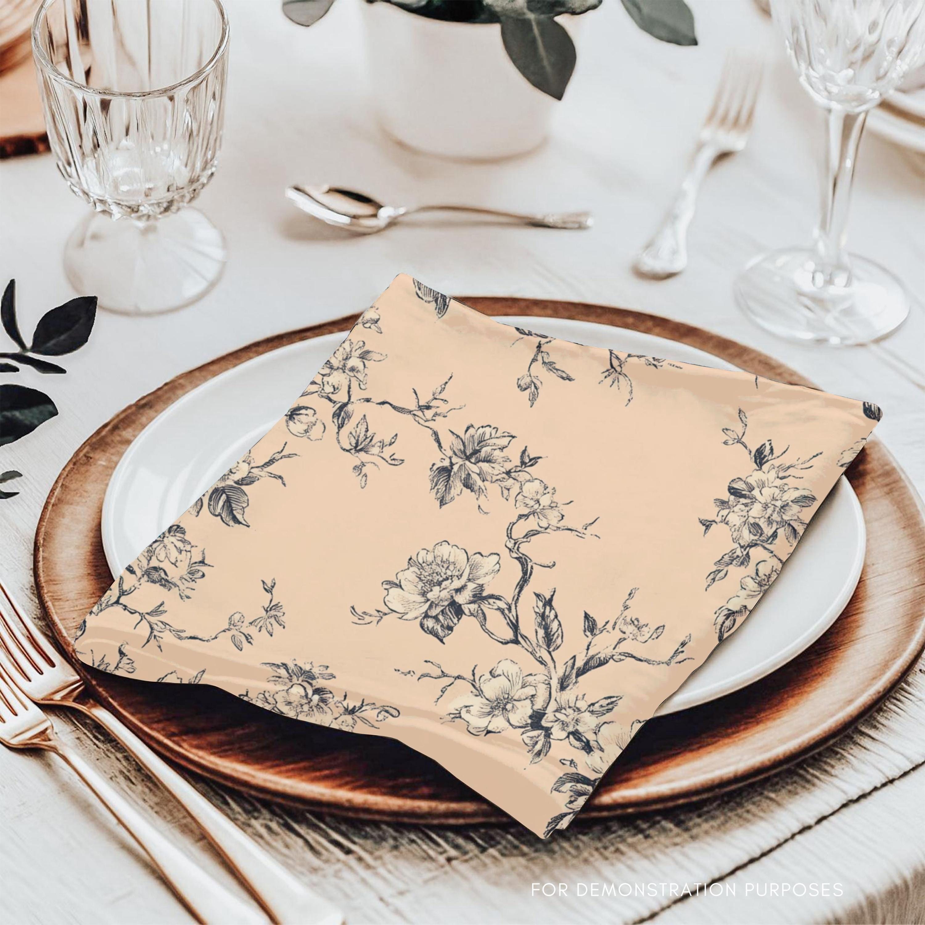 Ornate inky florals stretch across a warm peach background in this timeless toile-inspired design. Delicate yet structured, this seamless pattern blends vintage elegance with soft modern color—perfect for wallpaper, textiles, or elevated digital projects.