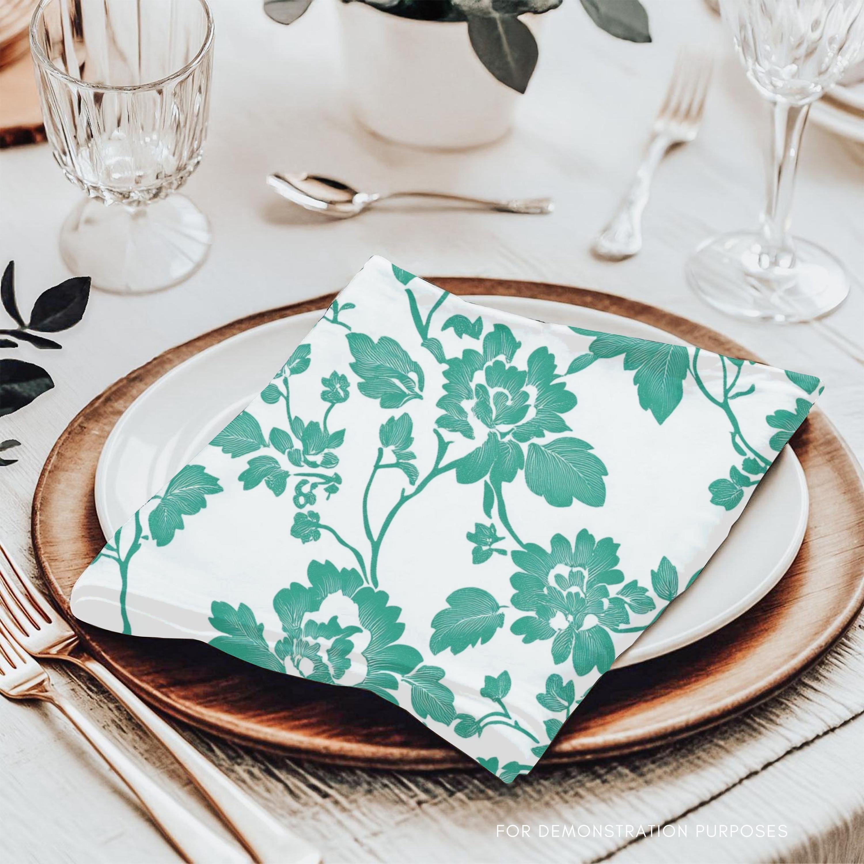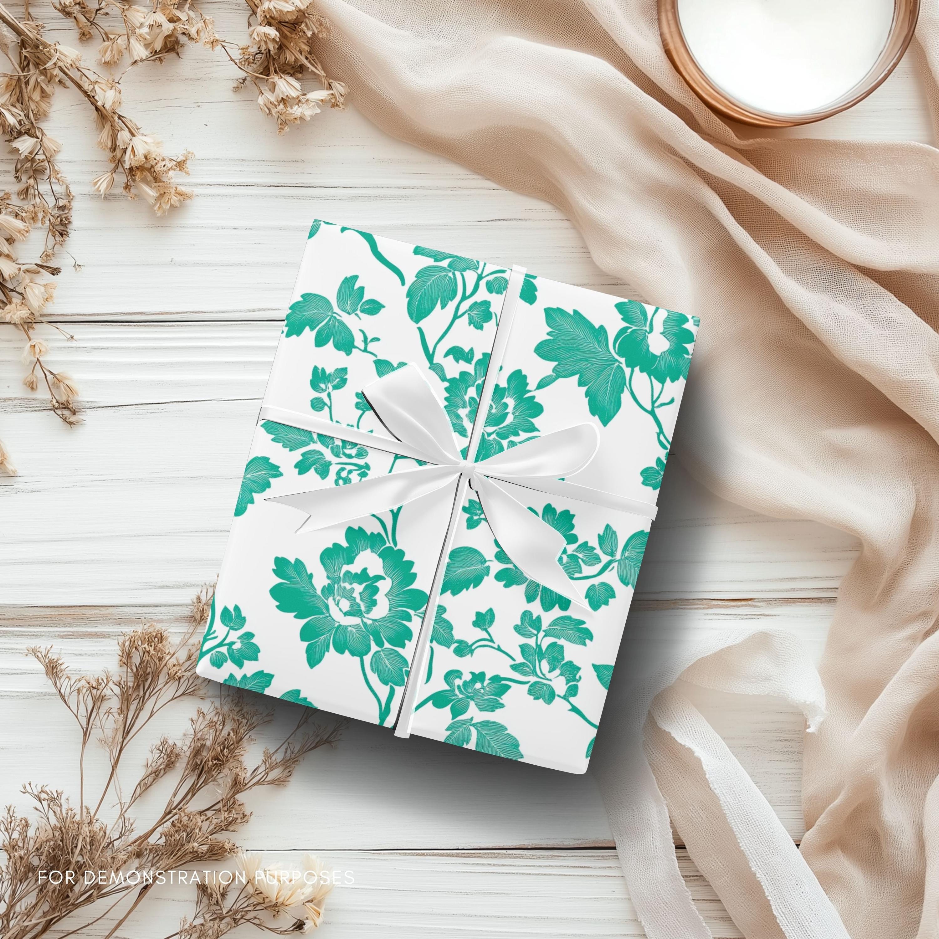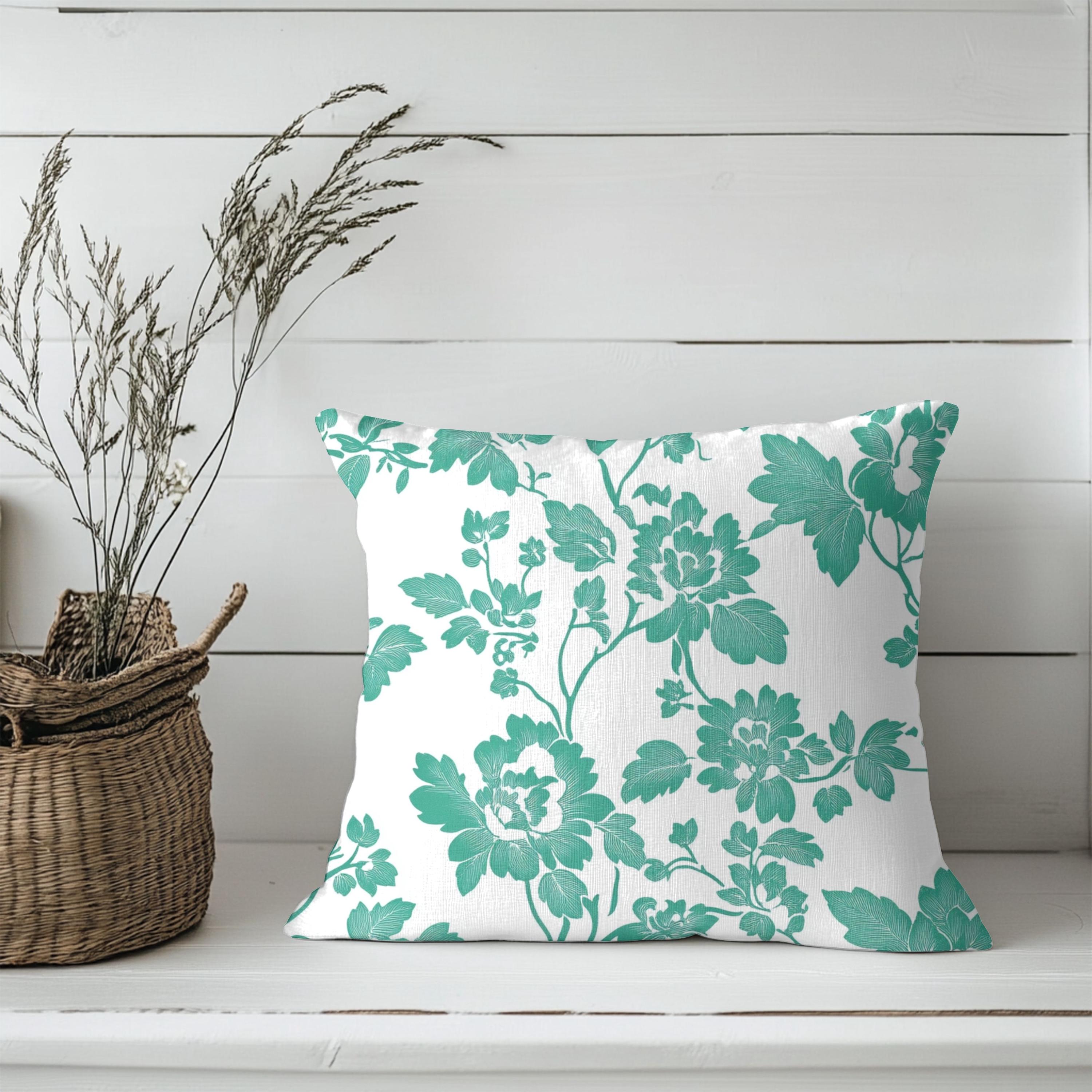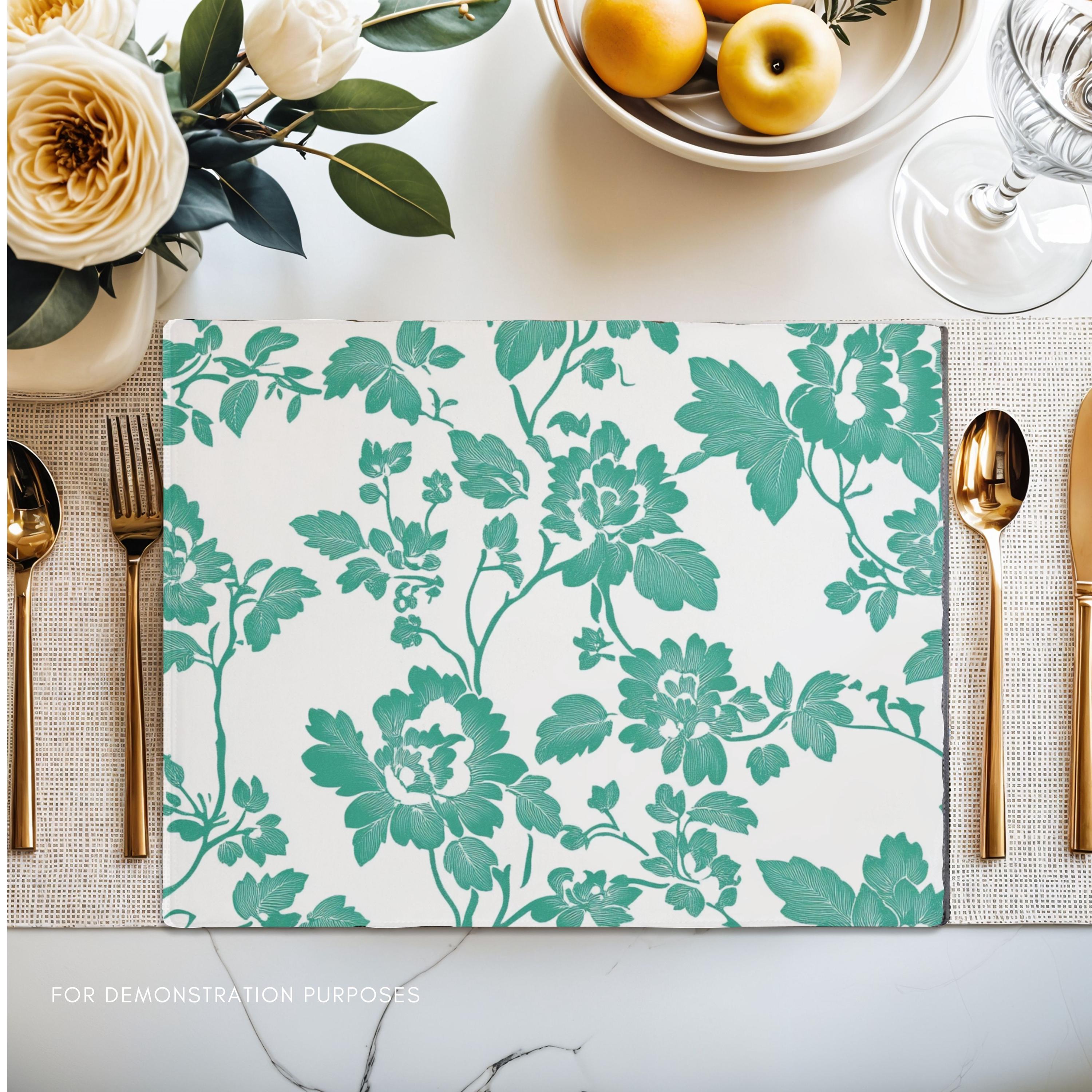 Lush botanical silhouettes in fresh seafoam green weave across a clean white background in this crisp, elegant seamless pattern. Perfectly balanced between classic toile and modern minimalism, this design adds a breezy sophistication to any fabric, stationery, or home project.
