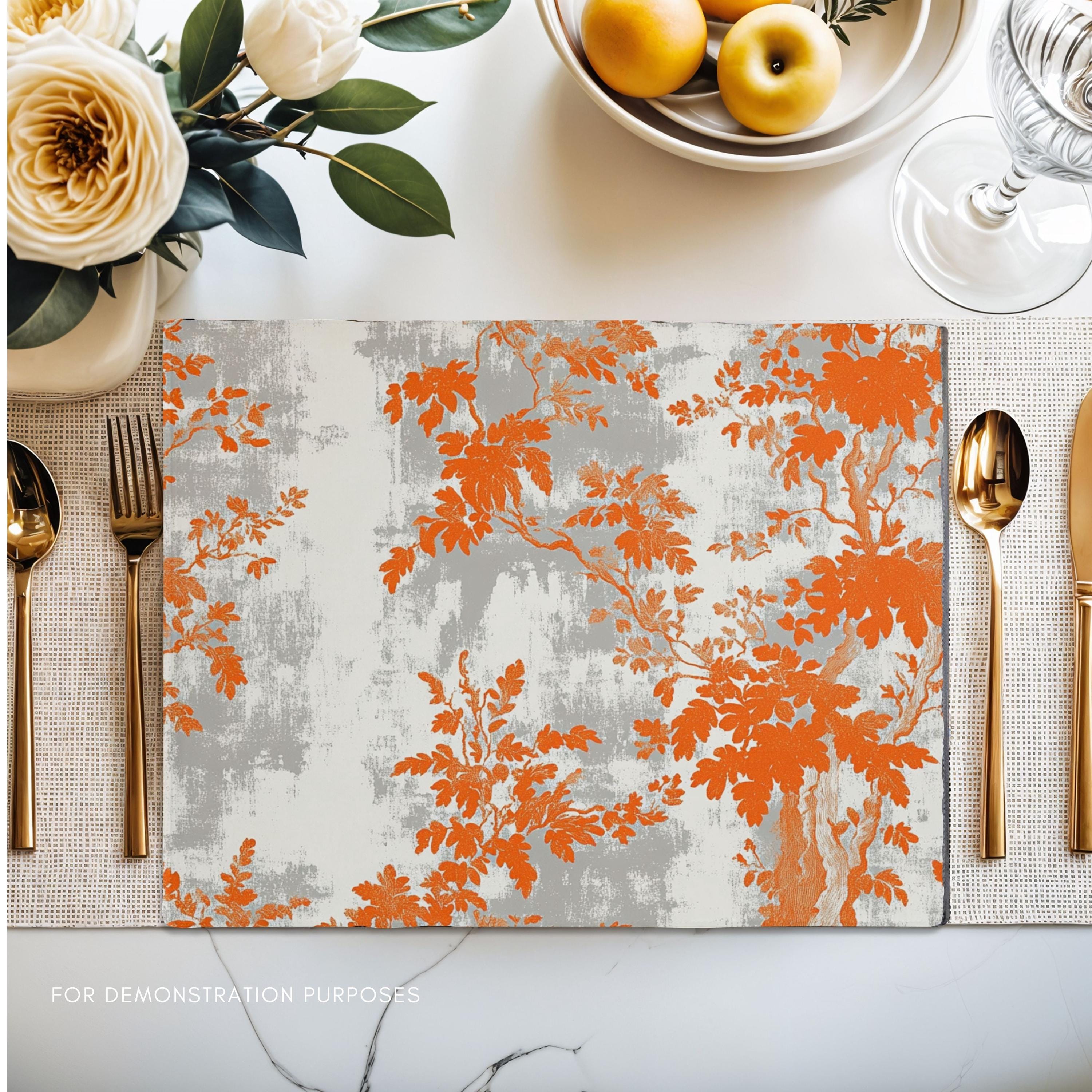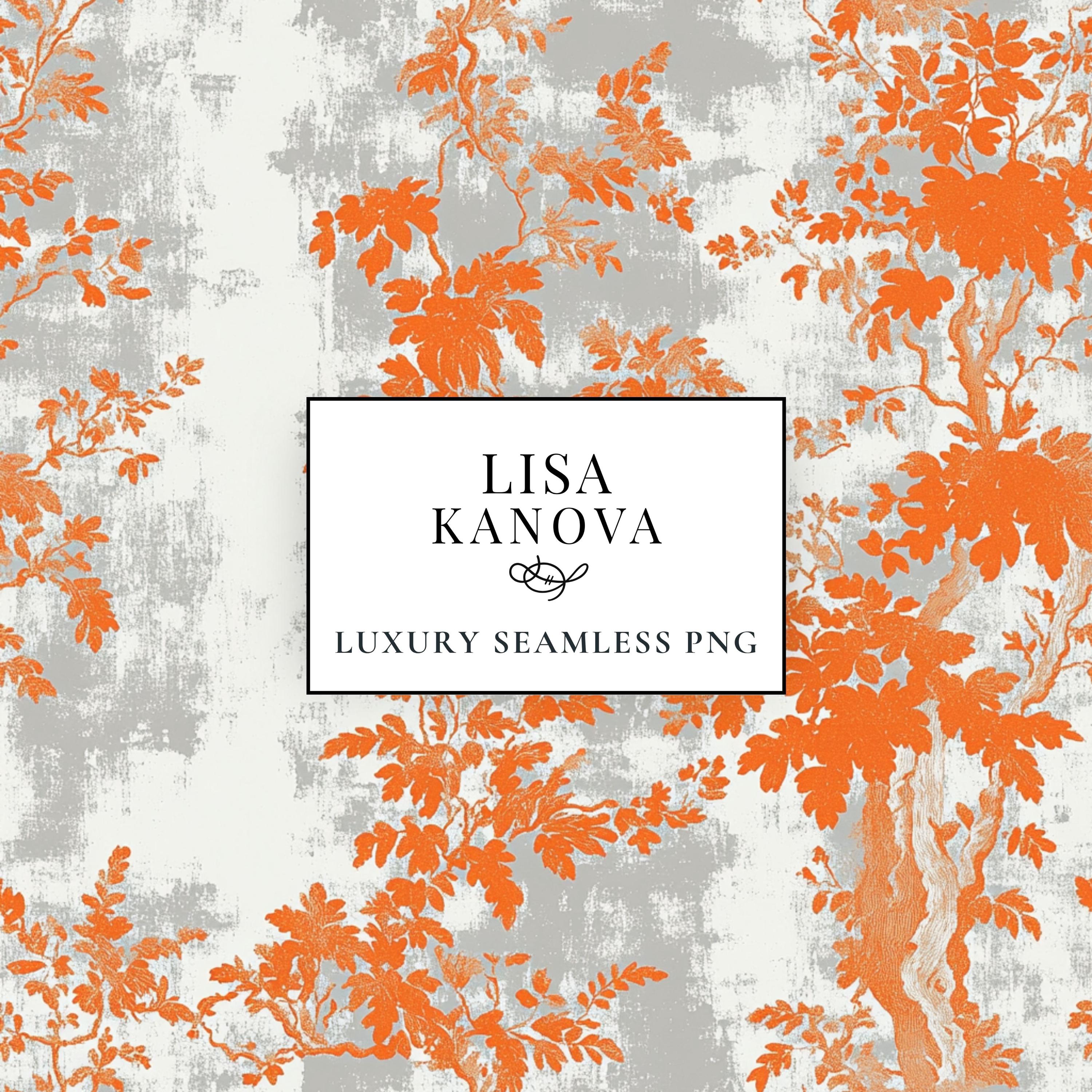 Bold burnt orange trees sweep across a painterly gray backdrop in this modern take on classic toile. With its fiery contrast and distressed texture, this seamless pattern strikes the perfect balance between traditional charm and edgy sophistication—made for standout projects.