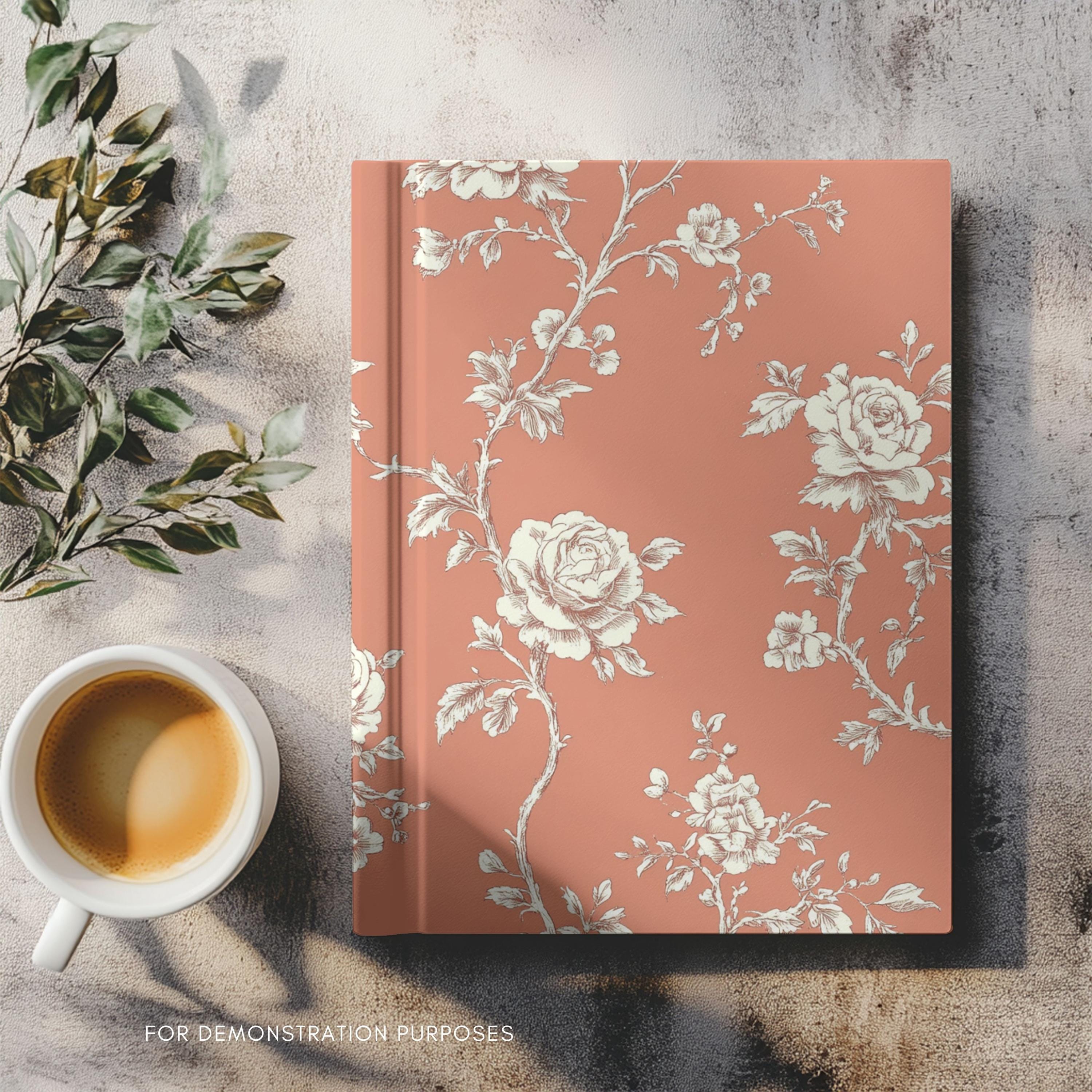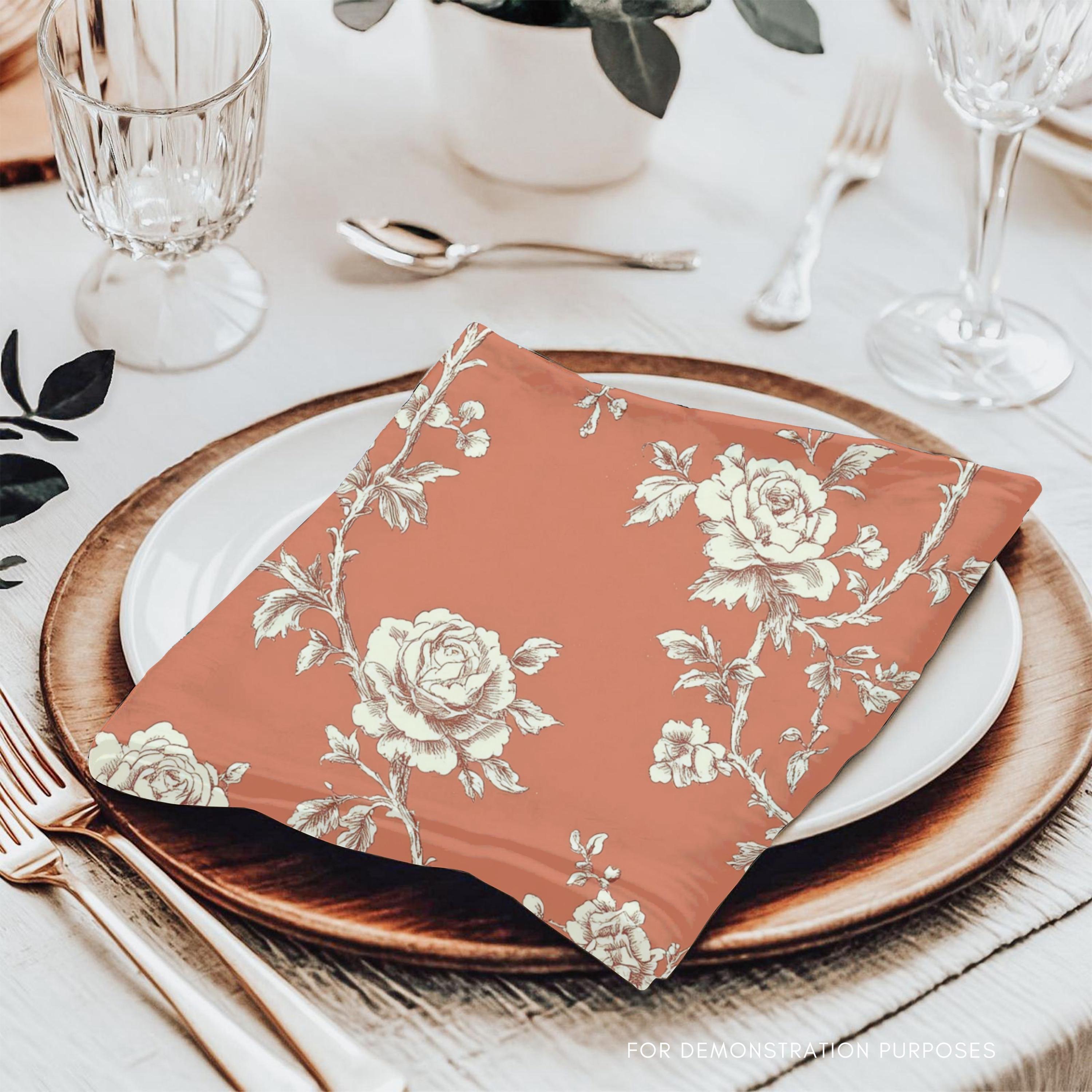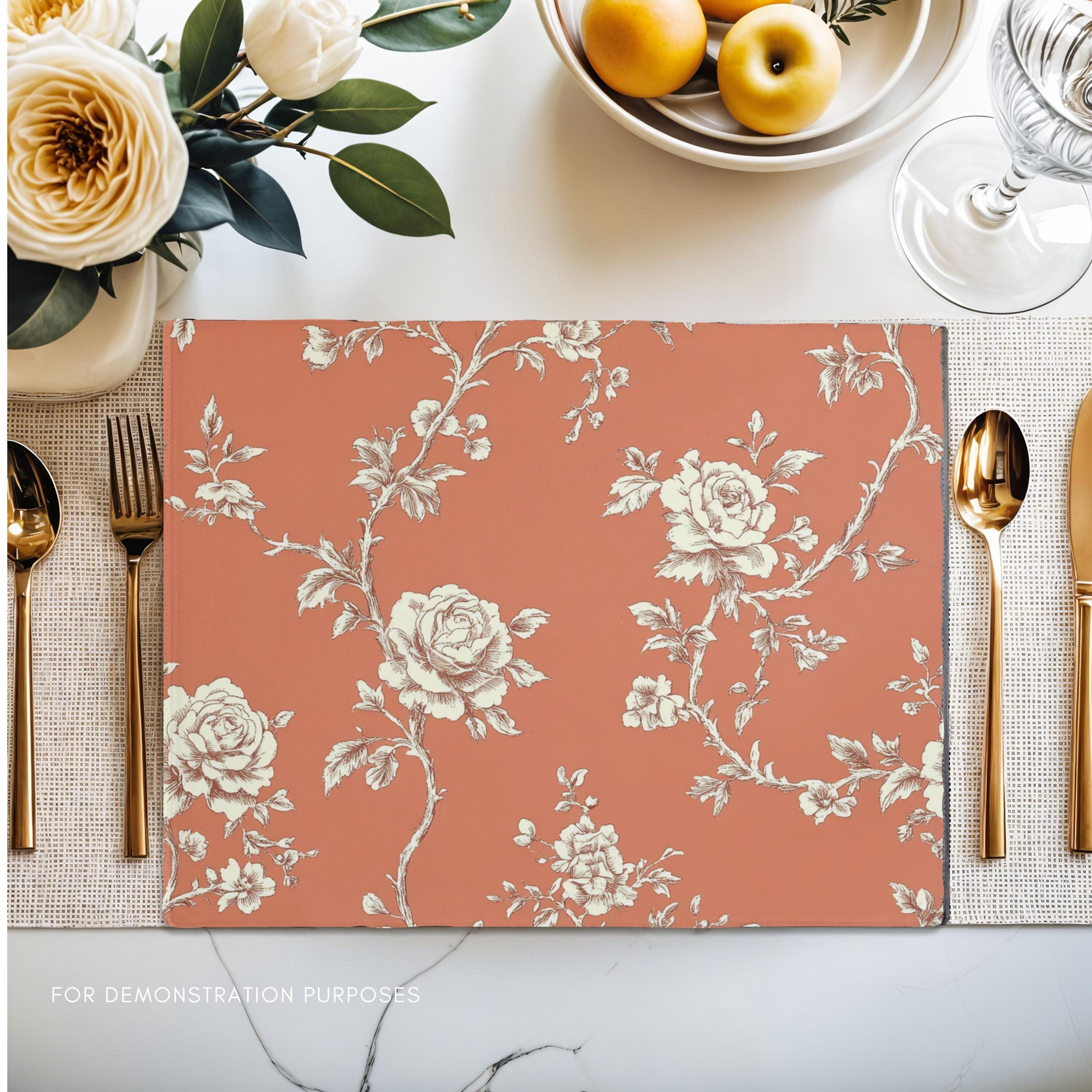 Graceful ivory rose vines curve across a warm terracotta backdrop in this softly romantic toile. With its hand-drawn charm and earthy elegance, this seamless pattern is ideal for home decor, stationery, or any project that calls for vintage sophistication with a sun-warmed twist.