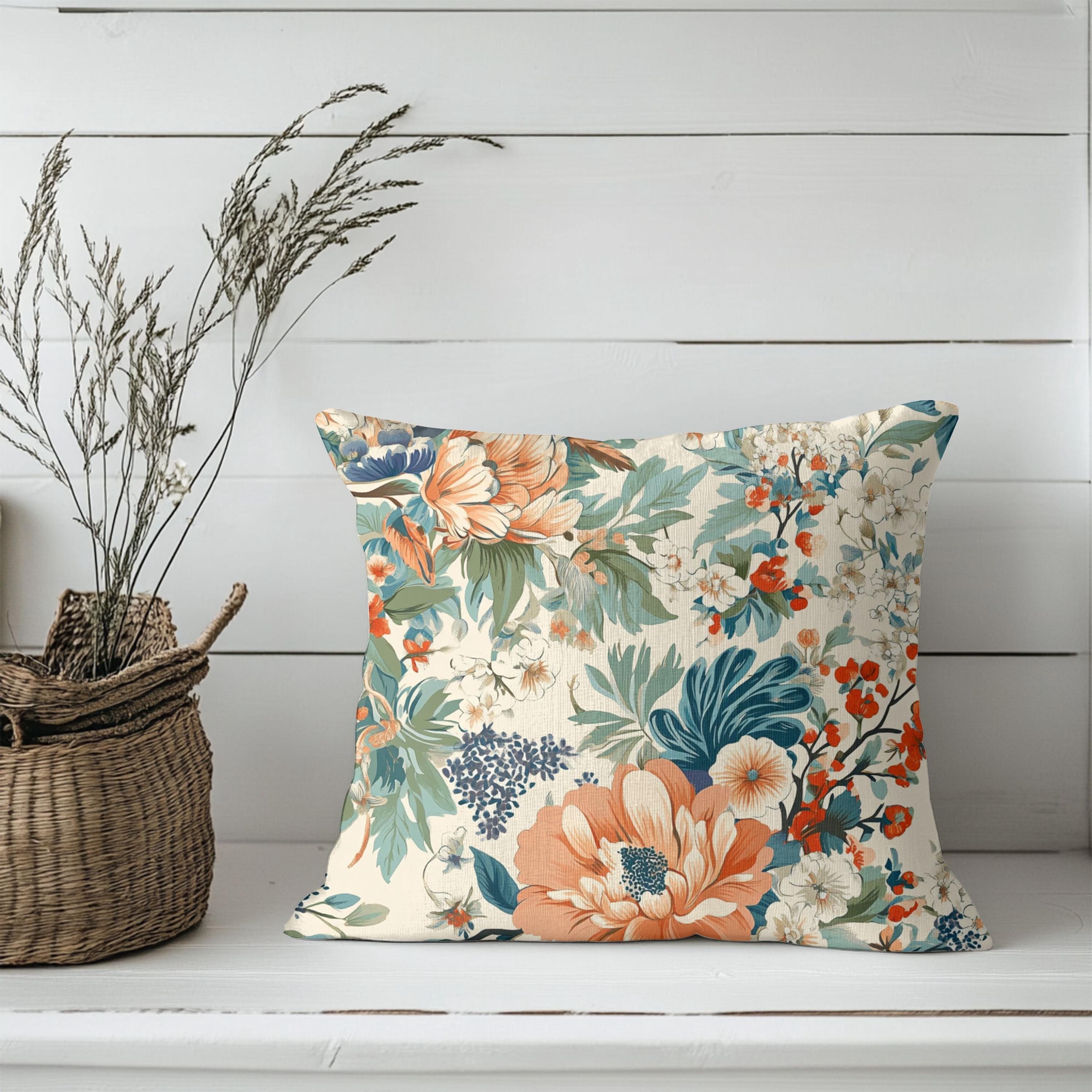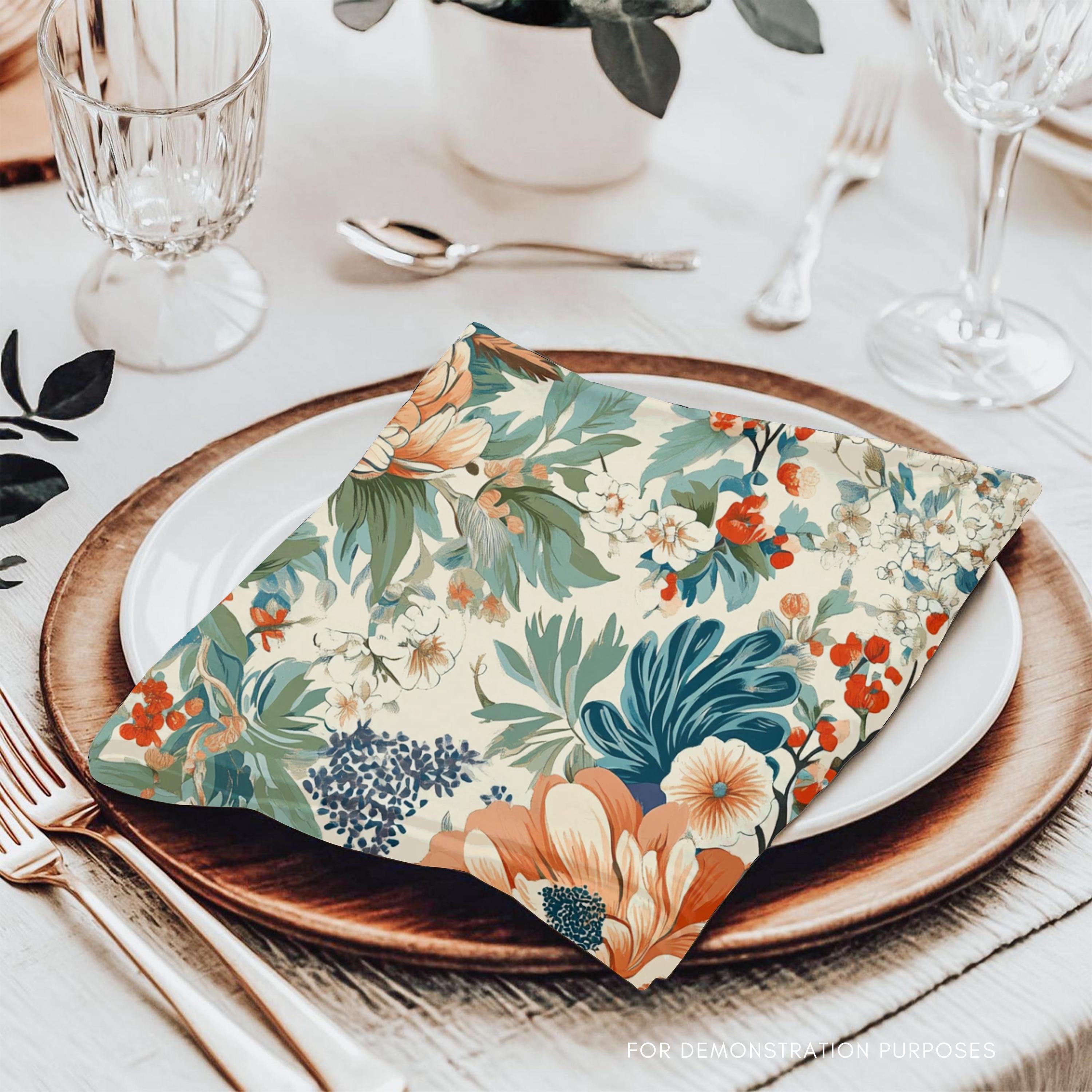 A vibrant tapestry of citrus-toned florals and lush teal foliage dances across a soft ivory ground. Bursting with painterly charm and modern vintage energy, this seamless PNG is perfect for bold fabric prints, statement decor, and eye-catching packaging.