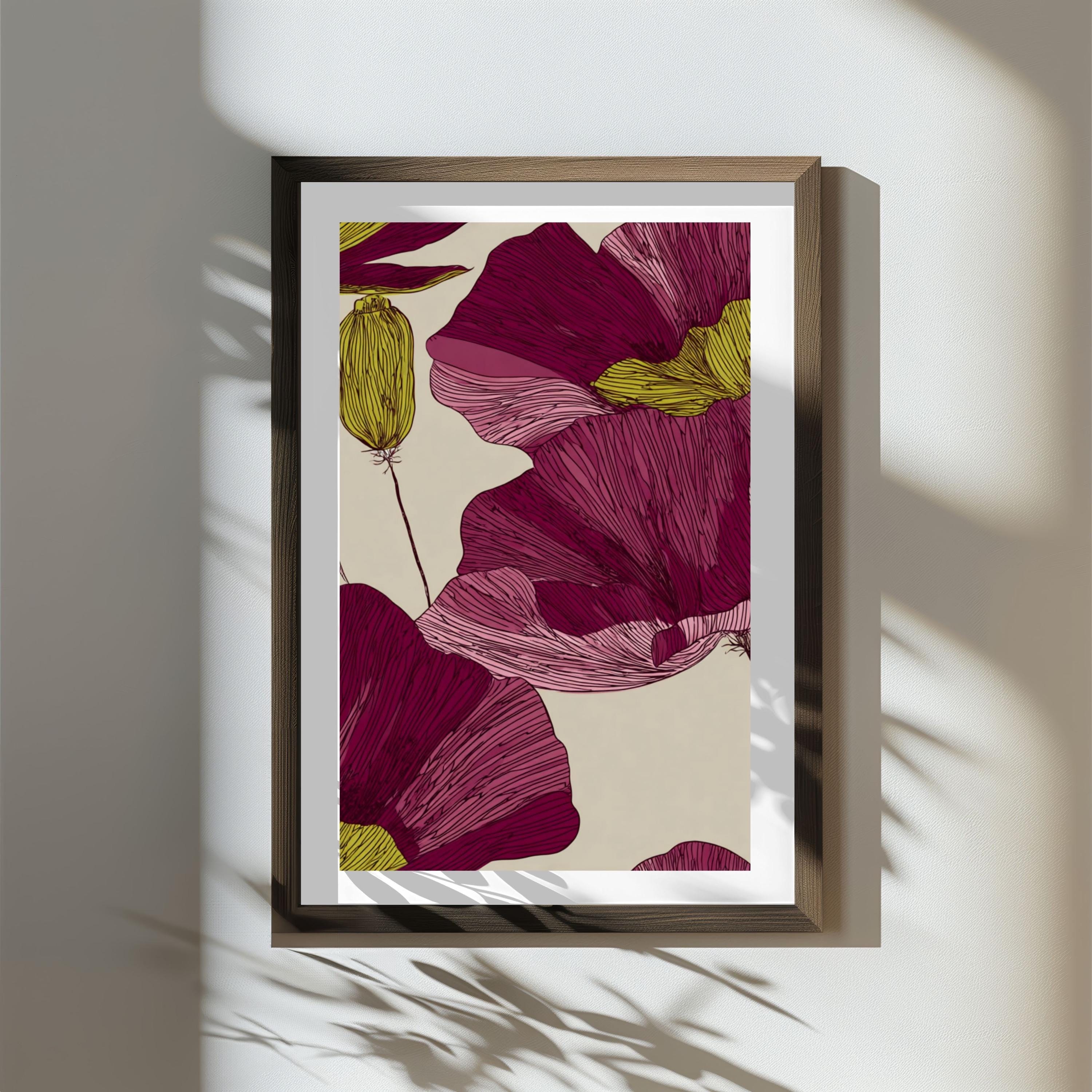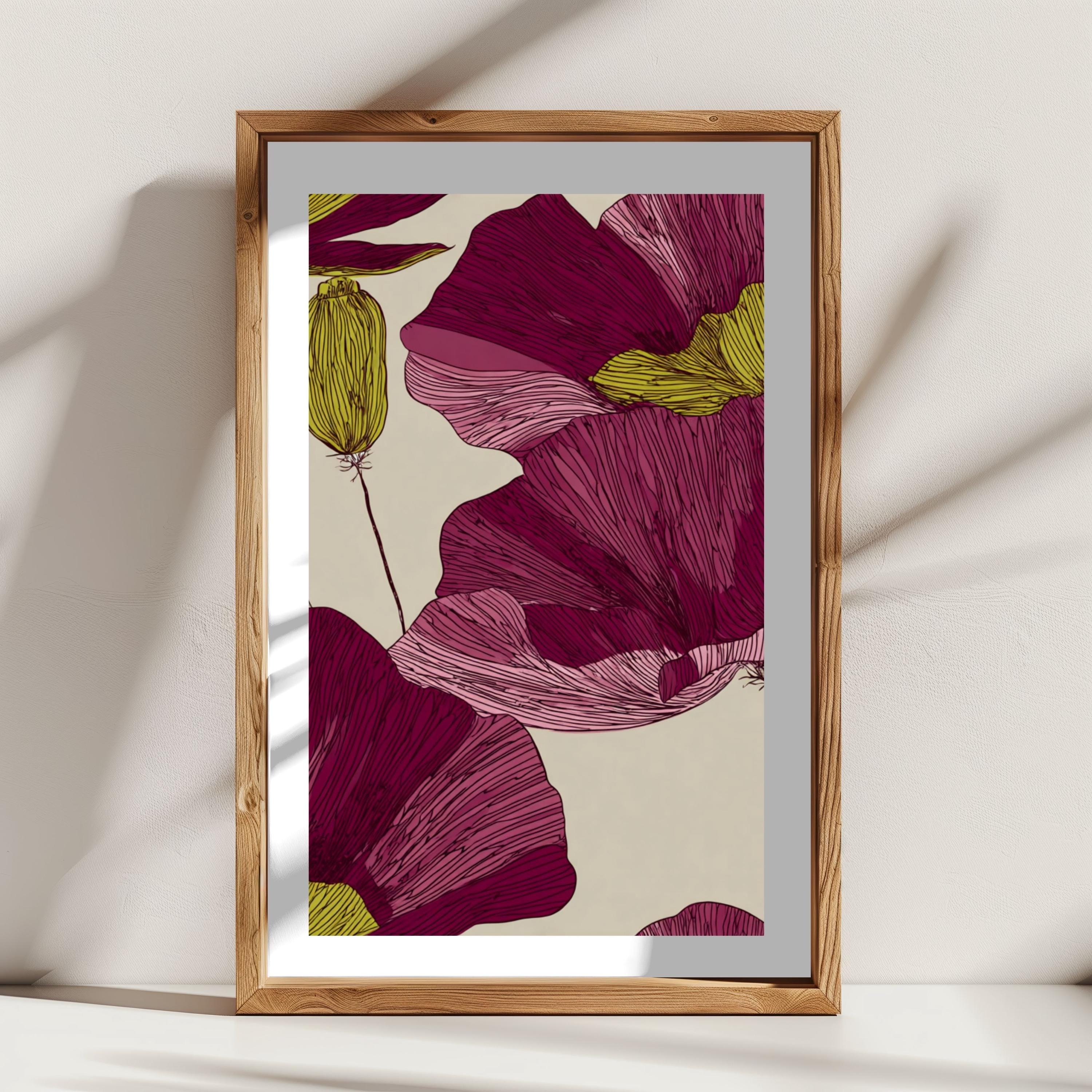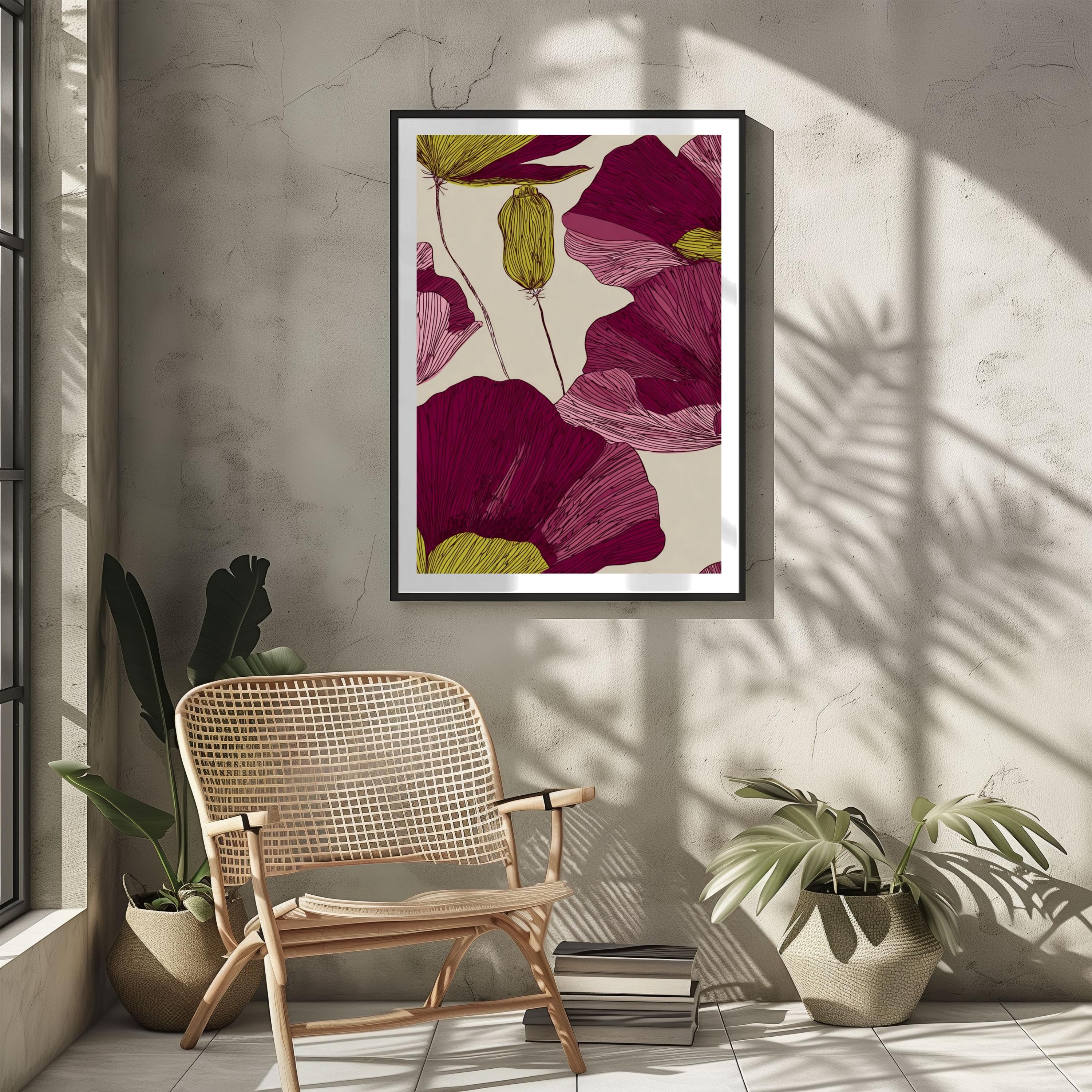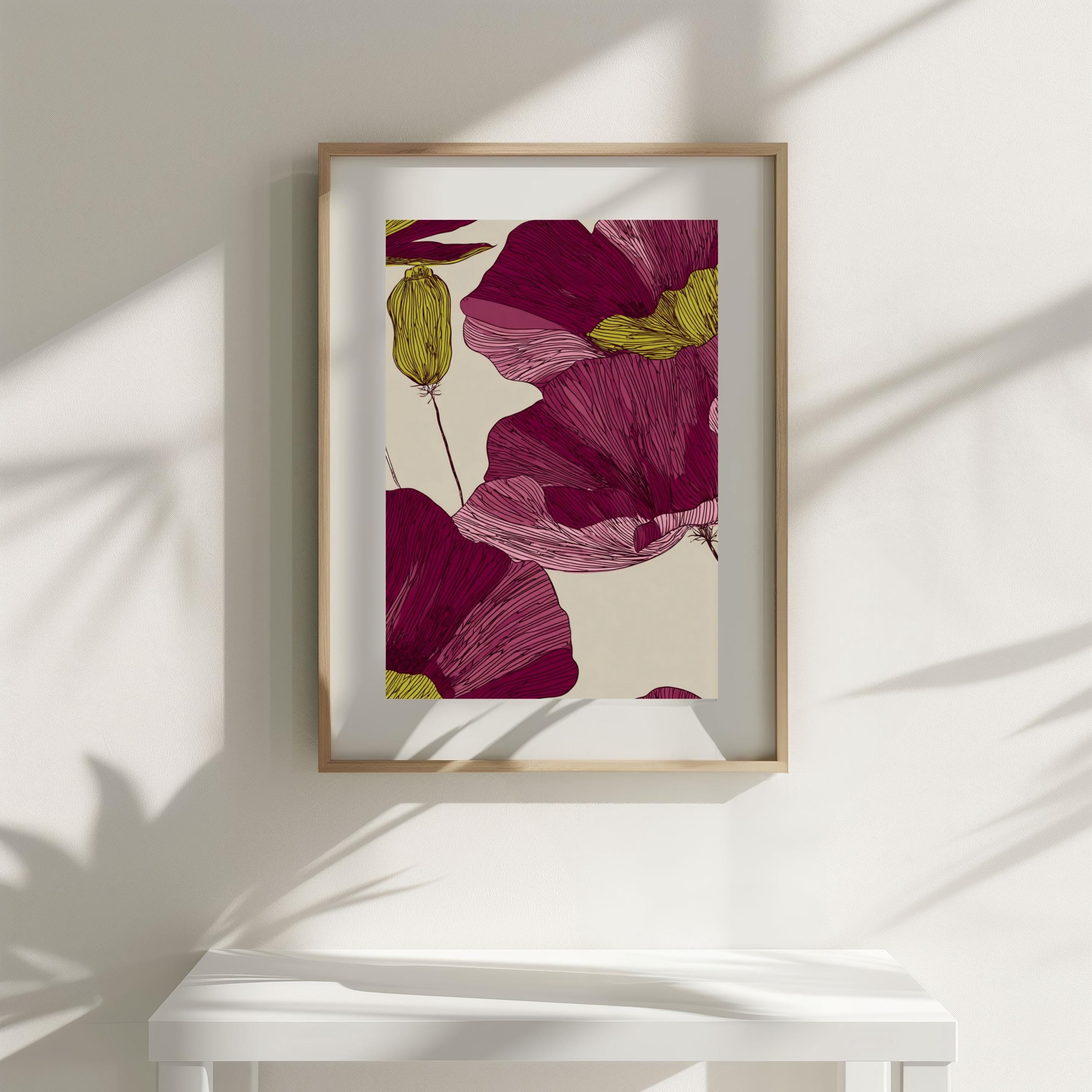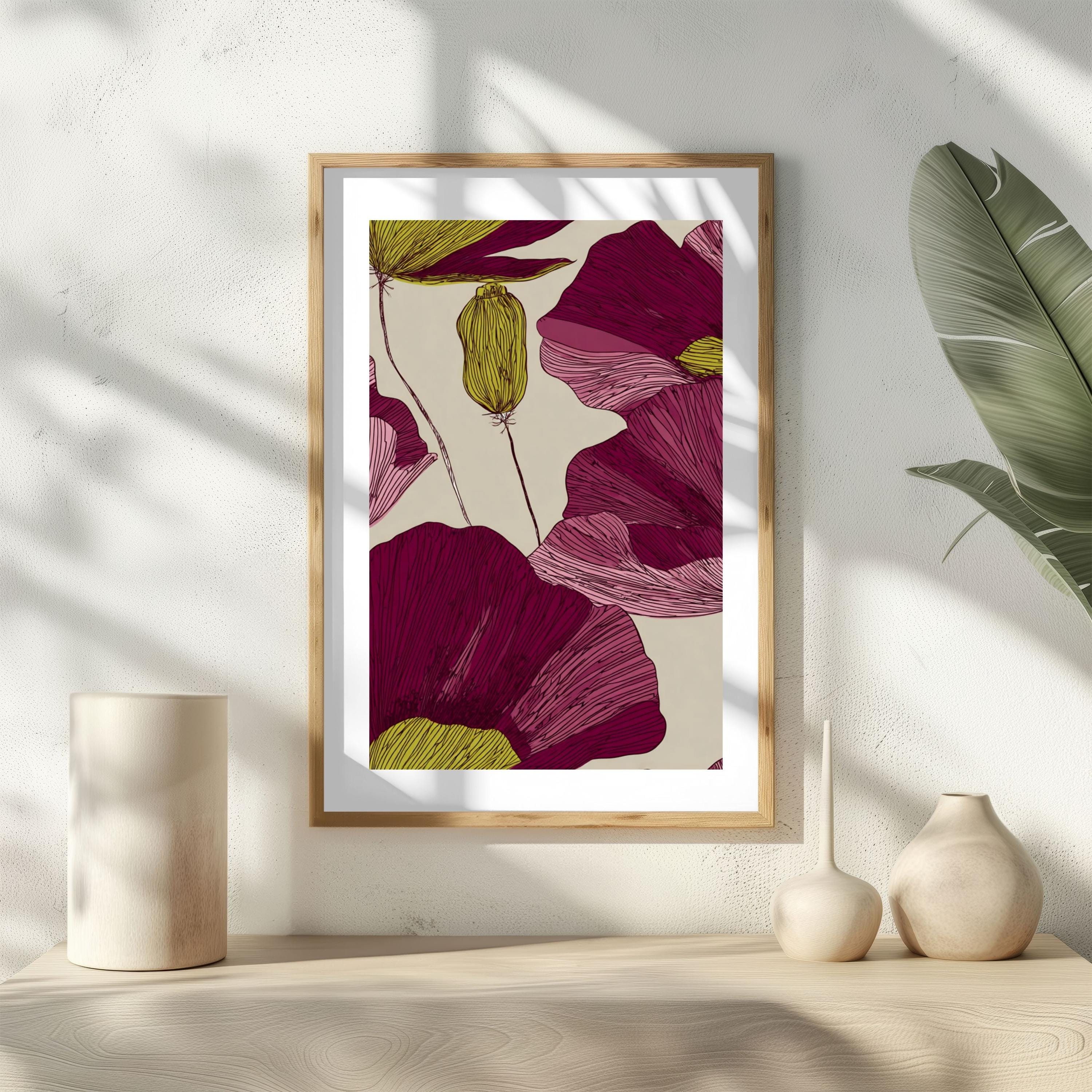 Bring a bold, modern touch to your home with this stunning digital download featuring vibrant magenta, deep purple, and lime-green florals. This unique, hand-drawn line art captures the drama of nature in a sophisticated, contemporary style. Perfect for creating an unforgettable focal point in your living room, bedroom, or home office.