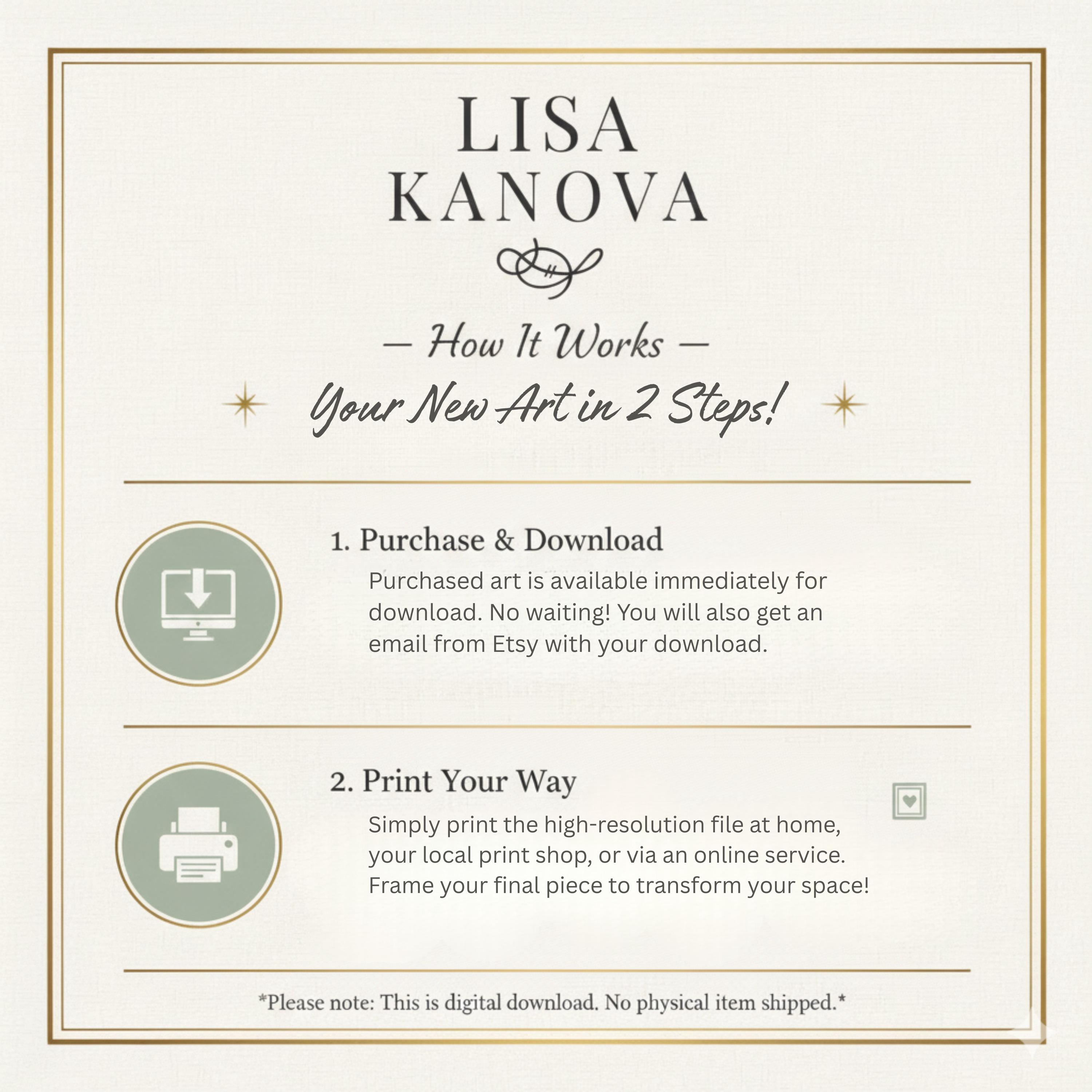 You will instantly receive a high-resolution (300 dpi) JPG file in the **2:3 ratio** that can be printed in the following common sizes: