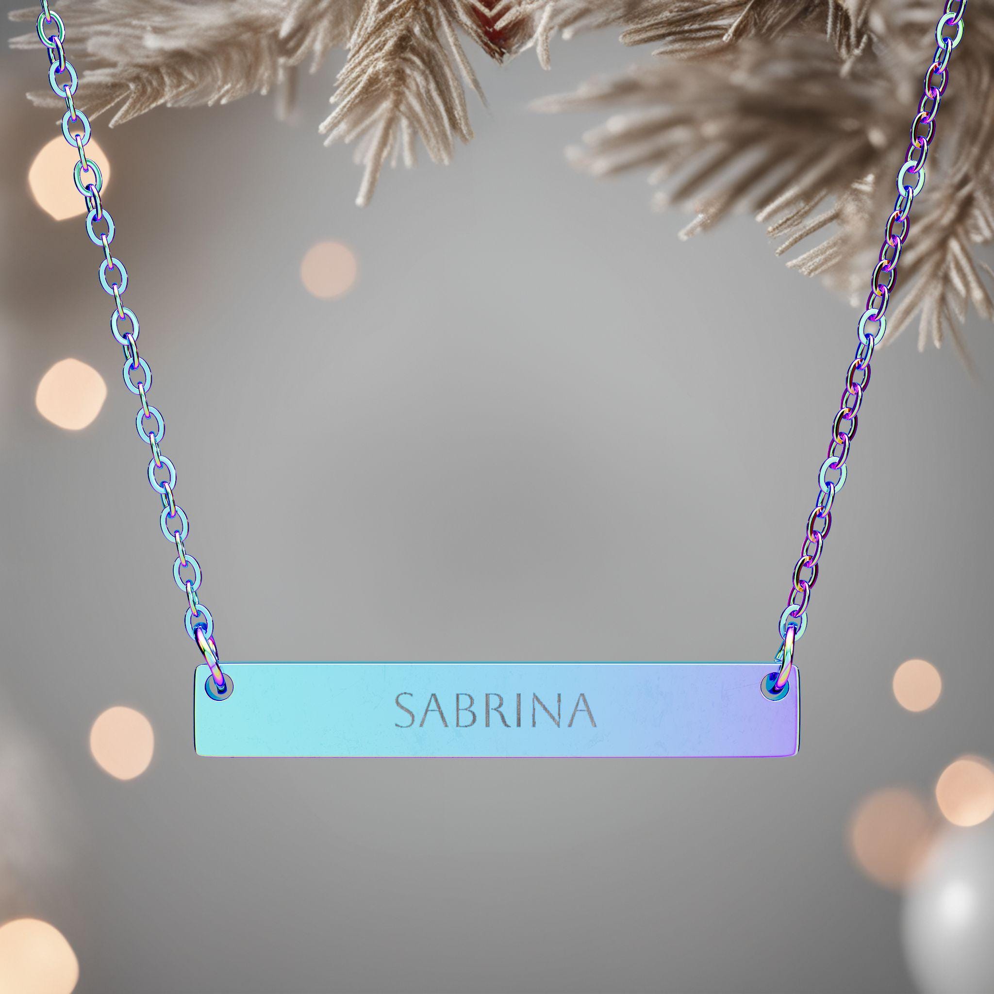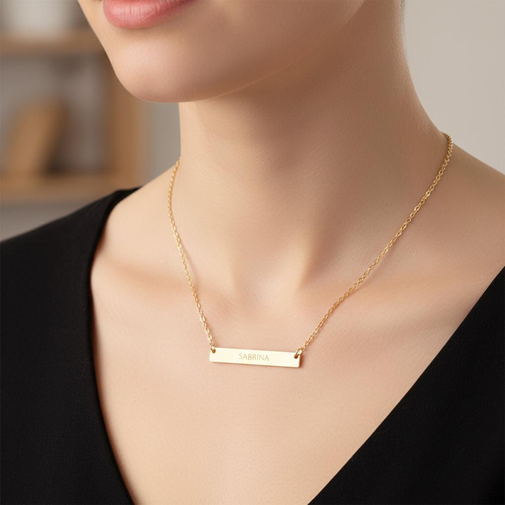 18 inch Necklace: A horizontal bar necklace that makes a great gift, featuring a sleek, permanent etching for a high-end look.