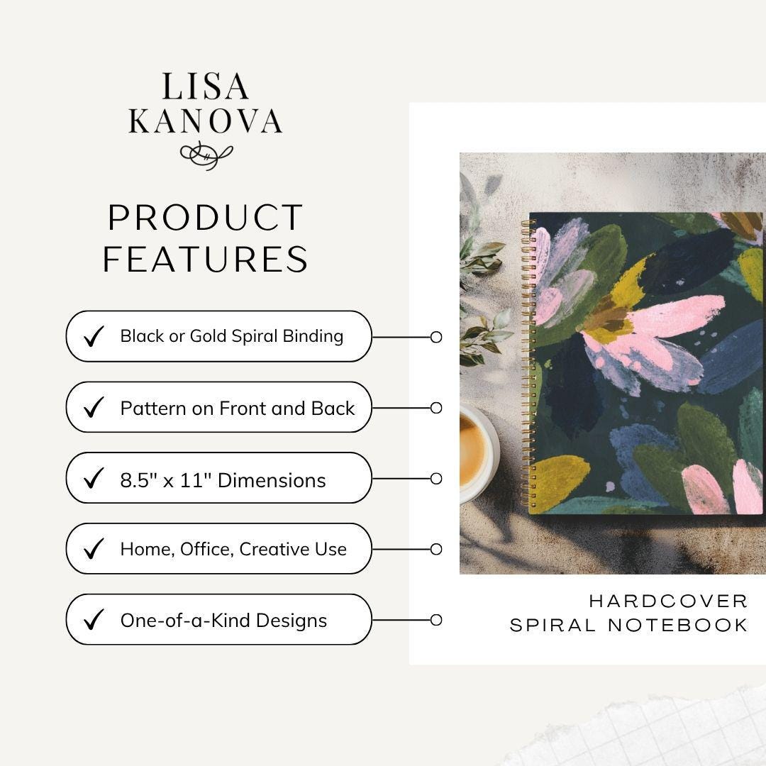 Elevate your planning experience with the Signature Planner Hardcover Spiral in a luxurious 8.5" x 11" size, where sophistication meets functionality. Available in chic Black or radiant Gold, this planner is more than just a tool—it's a statement piece for the modern woman. Adorned with oversized signature floral designs by the talented Lisa Kanova, each page invites you to embrace your creativity and organize your life with flair. The sturdy hardcover and elegant spiral binding ensure durability while allowing for effortless page turning. Whether you’re scheduling meetings, jotting down dreams, or mapping out your goals, this planner is designed to inspire and empower. Perfect for the discerning woman who appreciates both style and substance, the Signature Planner redefines the art of planning. Discover a blend of functionality and fashion that keeps you motivated and organized all year long. Experience the joy of elegant planning with a touch of luxury that speaks to your unique sense of style.