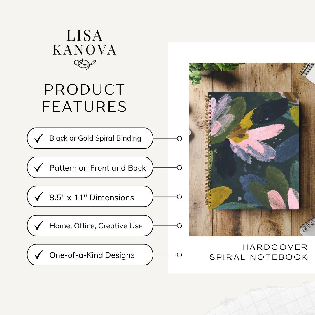 Notebook Hardcover Spiral in Black or Gold by Lisa Kanova 8.5 x 11