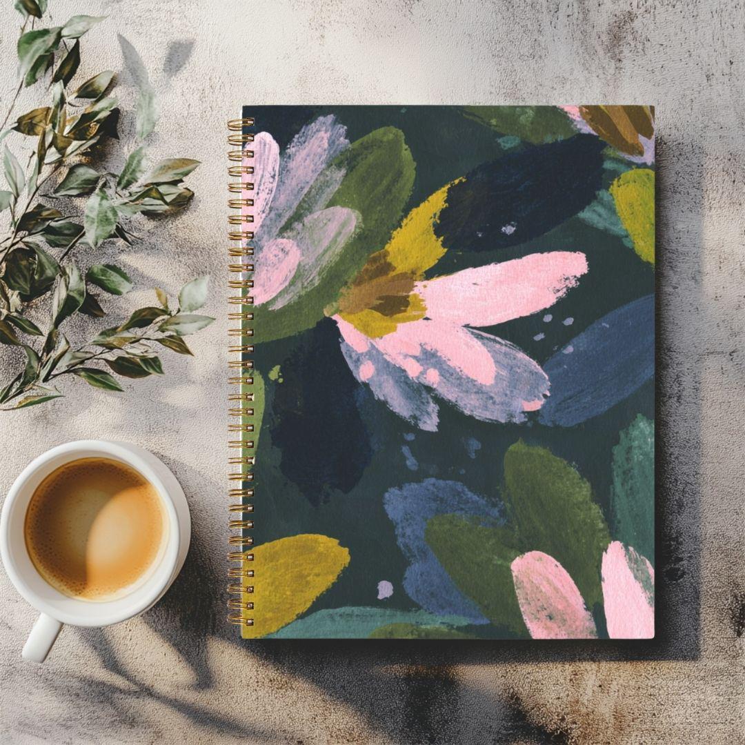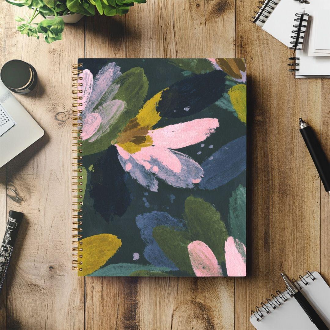 Experience elegance and functionality with our Notebook Hardcover Spiral 8.5 x 11. This beautifully crafted notebook is designed for the modern woman and teen who values her ideas and creativity. With its generous size, it's perfect for jotting down notes, sketching out thoughts, or journaling your journey. Choose from four versatile page options—dotted for structures and designs, blank for free-spirited sketches, college ruled for neat and organized notes, or wide ruled for those quick bursts of inspiration. The Notebook comes in chic Black and stunning Gold, adorned with oversized signature floral designs by Lisa Kanova that add a touch of sophistication to your everyday routine. Slip it into your bag and take your writing wherever life leads you, and enjoy the perfect blend of style and practicality with each turn of the page. This is more than just a notebook; it's a canvas for your thoughts, dreams, and plans.