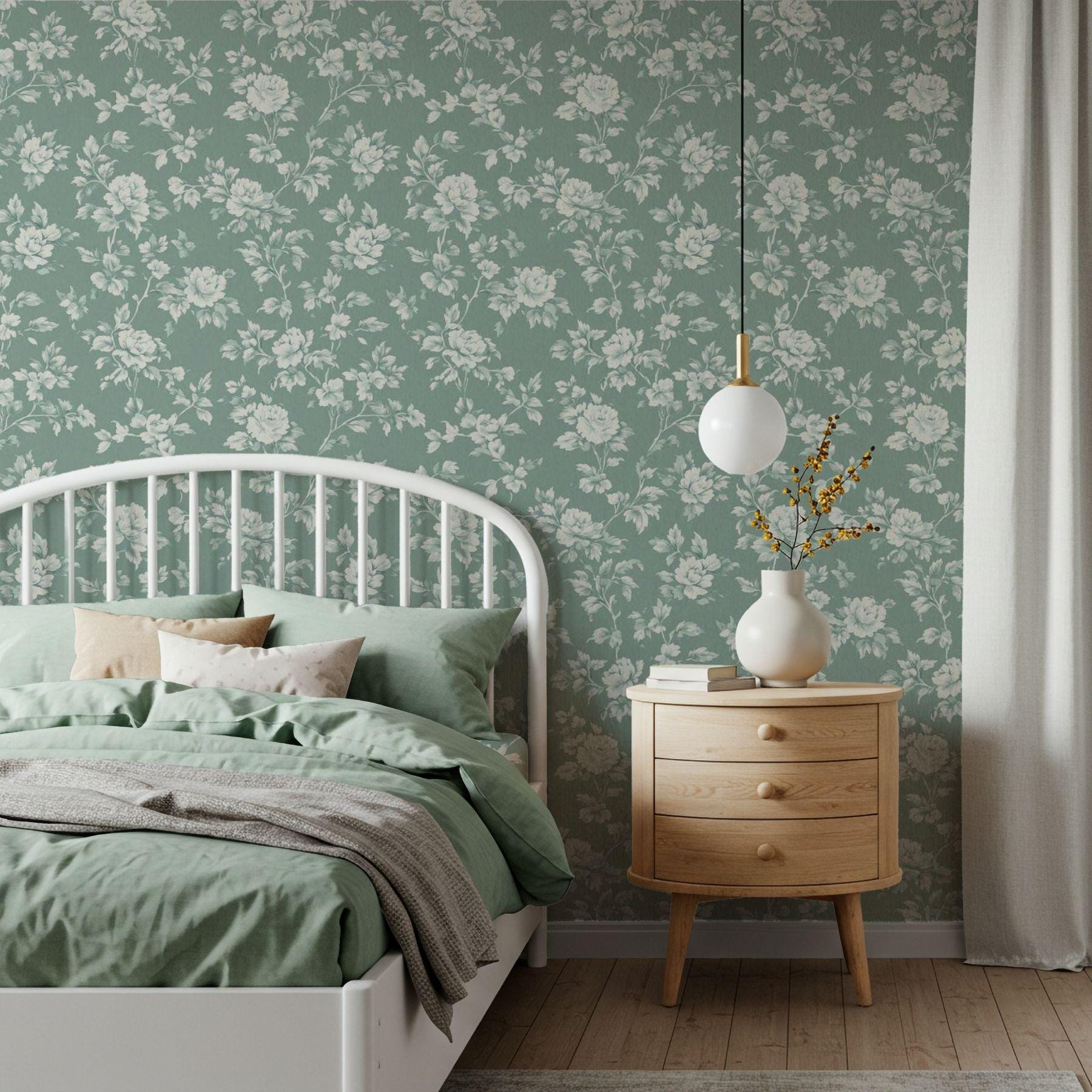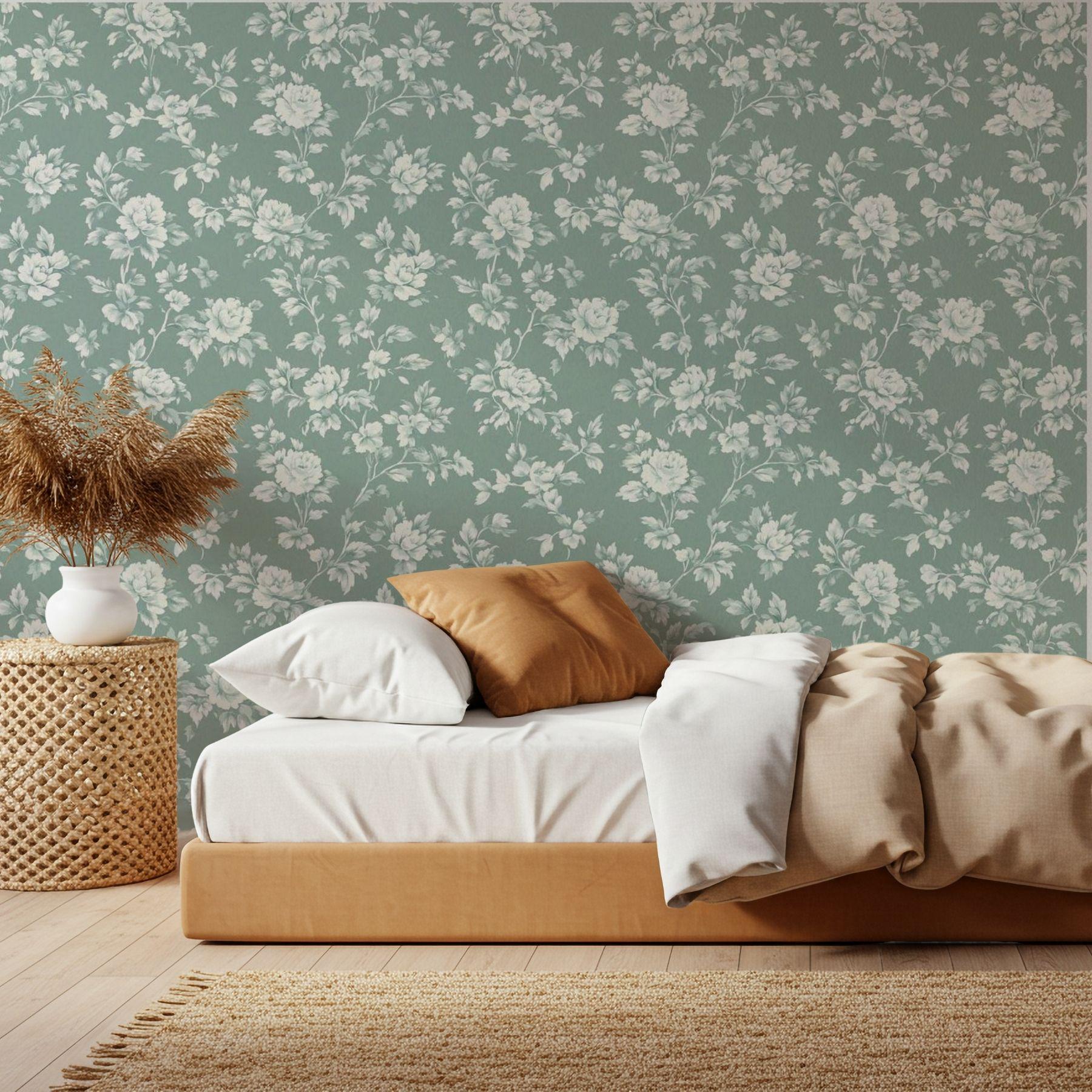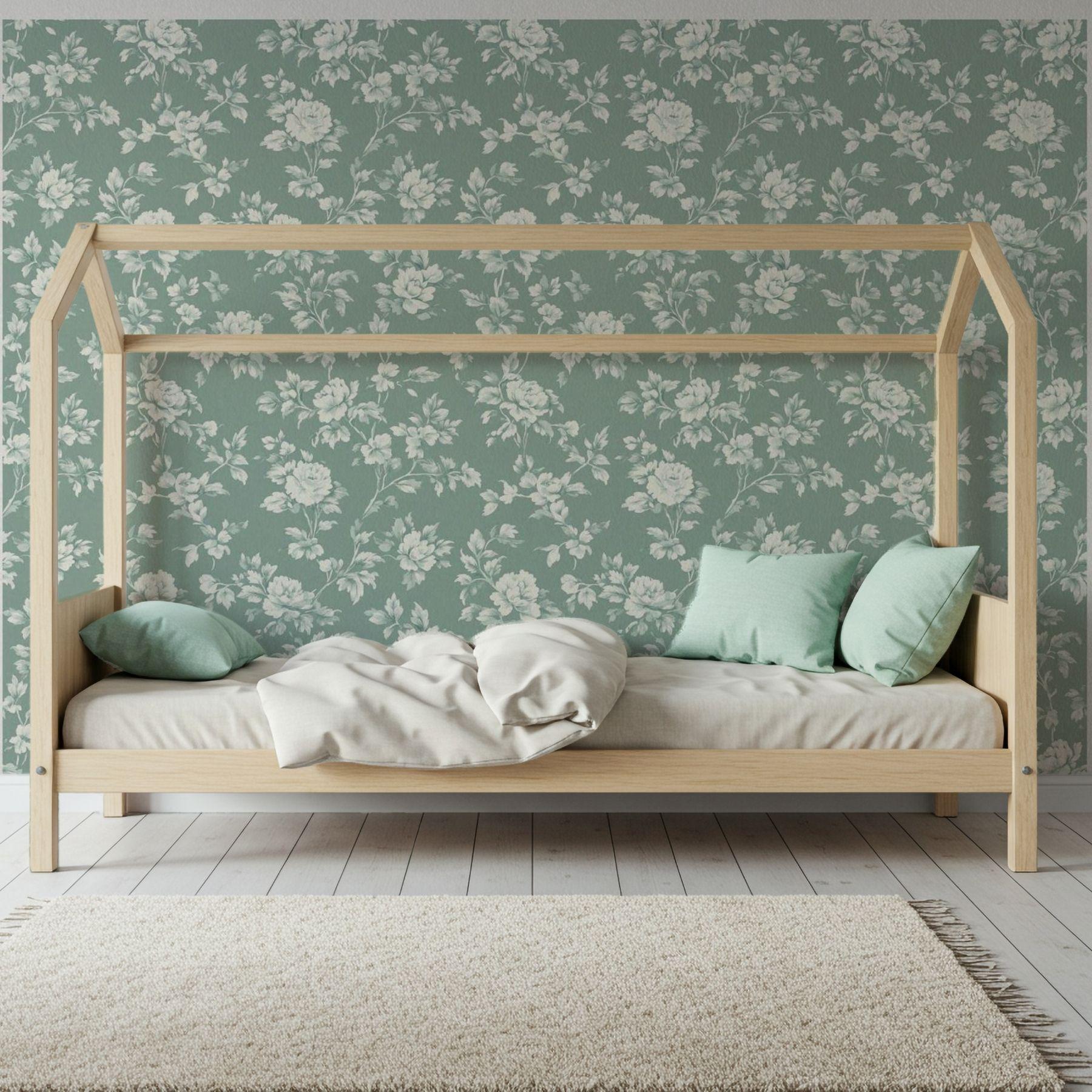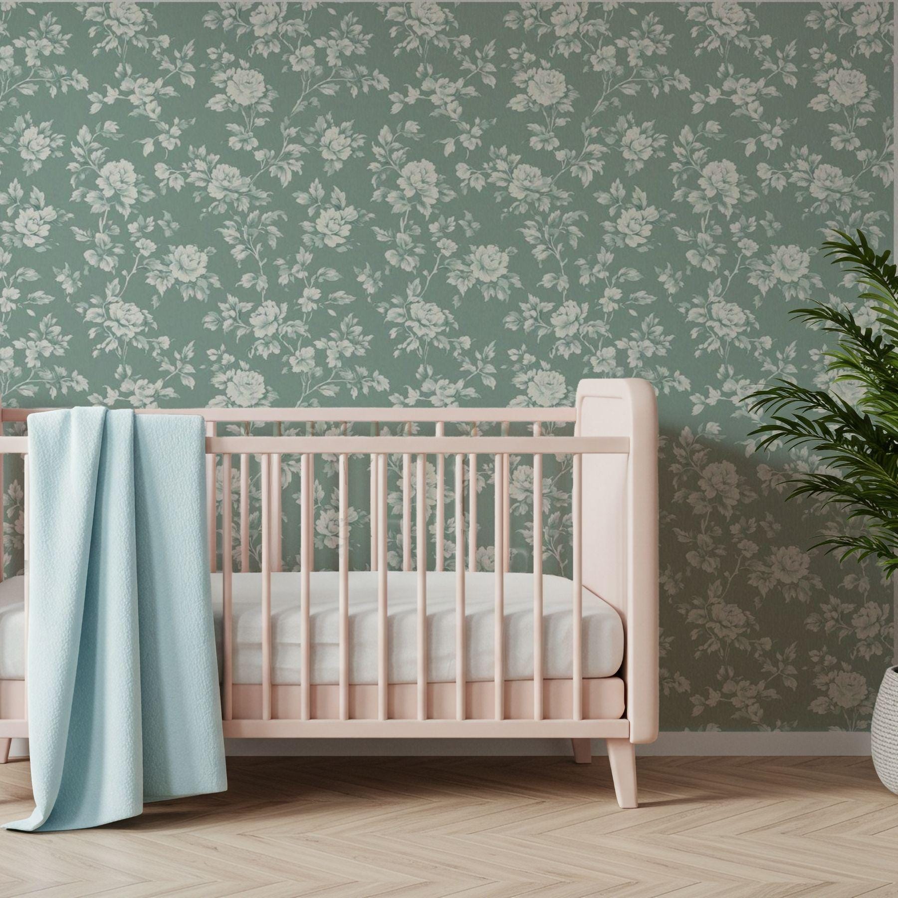 Delicate ivory blooms unfold across a deep vintage teal backdrop, creating a look that’s both classic and serene. This floral wallpaper brings an elevated charm to nurseries and play spaces — refined yet inviting, with a timeless beauty that grows right along with them.