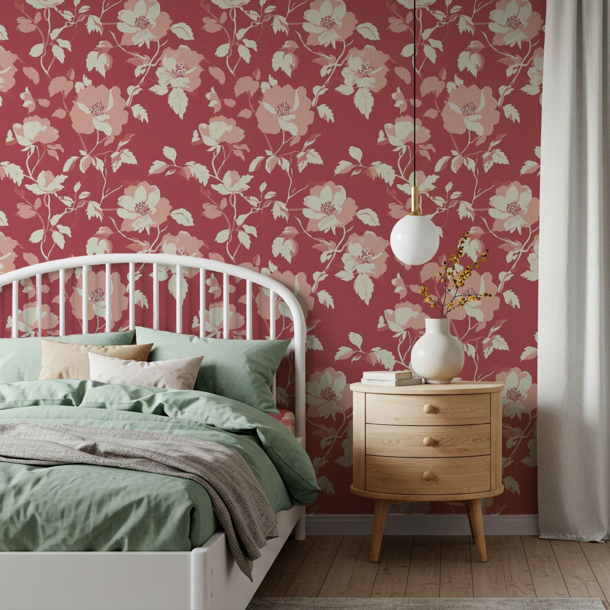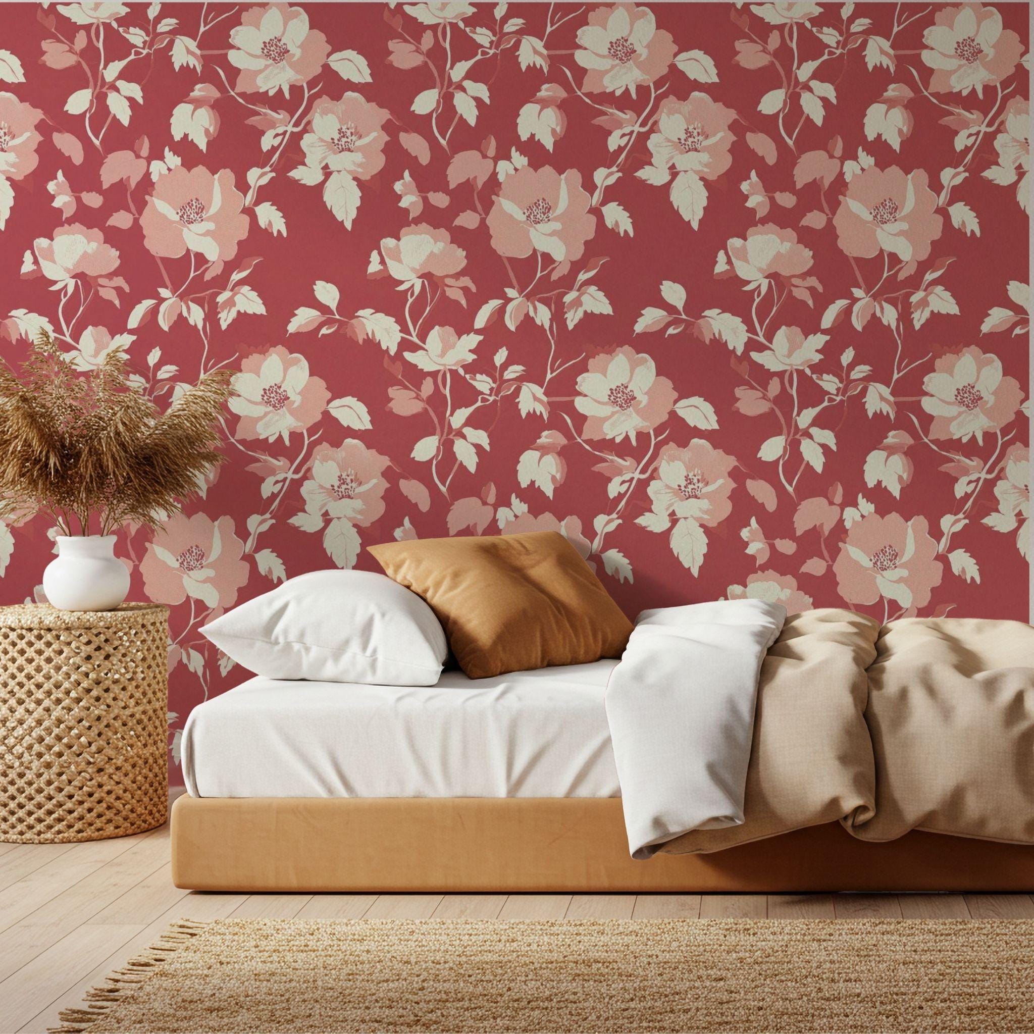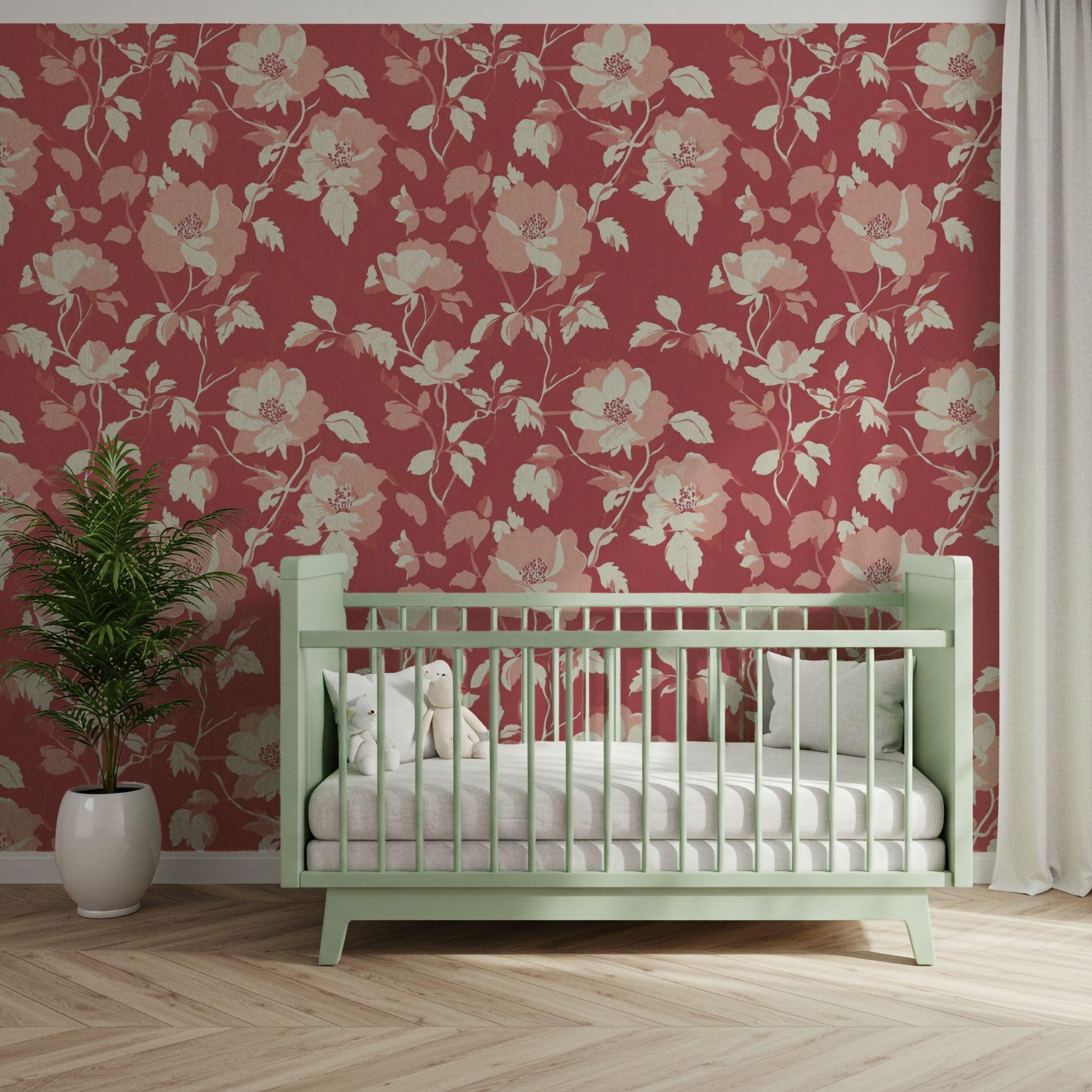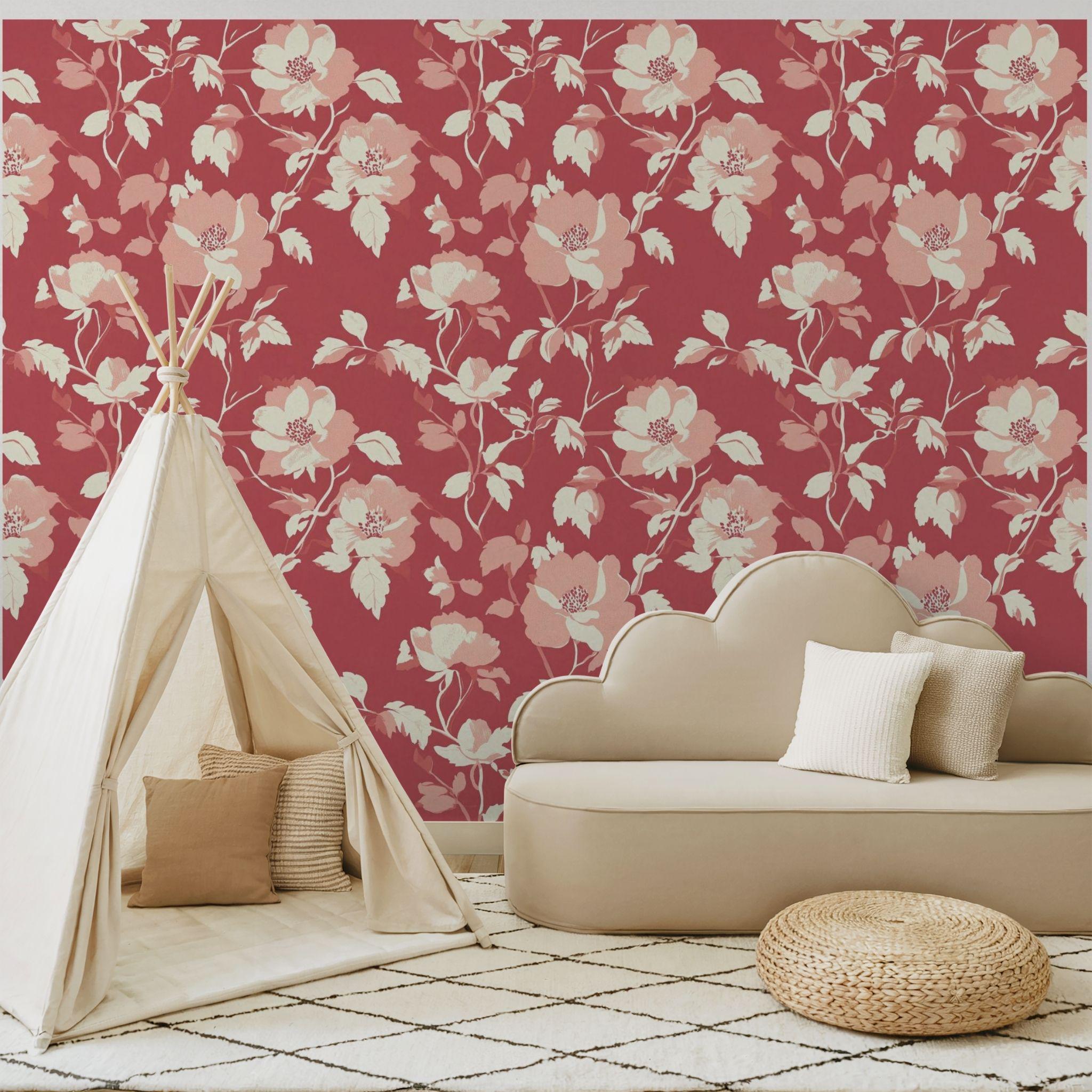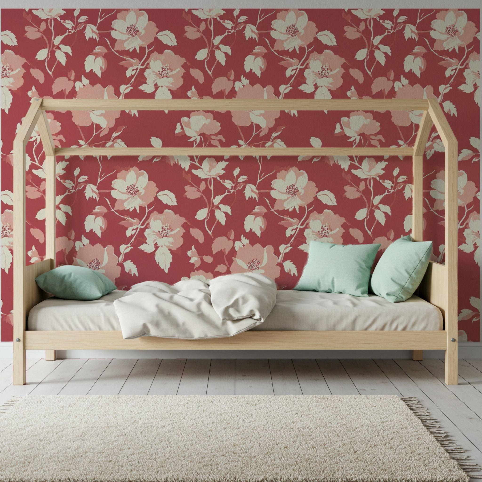 Romantic and striking, this vintage floral print brings warmth and personality to any space. Creamy blooms unfold against a deep rose background, creating a look that’s both classic and full of heart. Perfect for adding a touch of timeless charm to kids’ rooms, bedrooms, or cozy corners that call for something unforgettable.