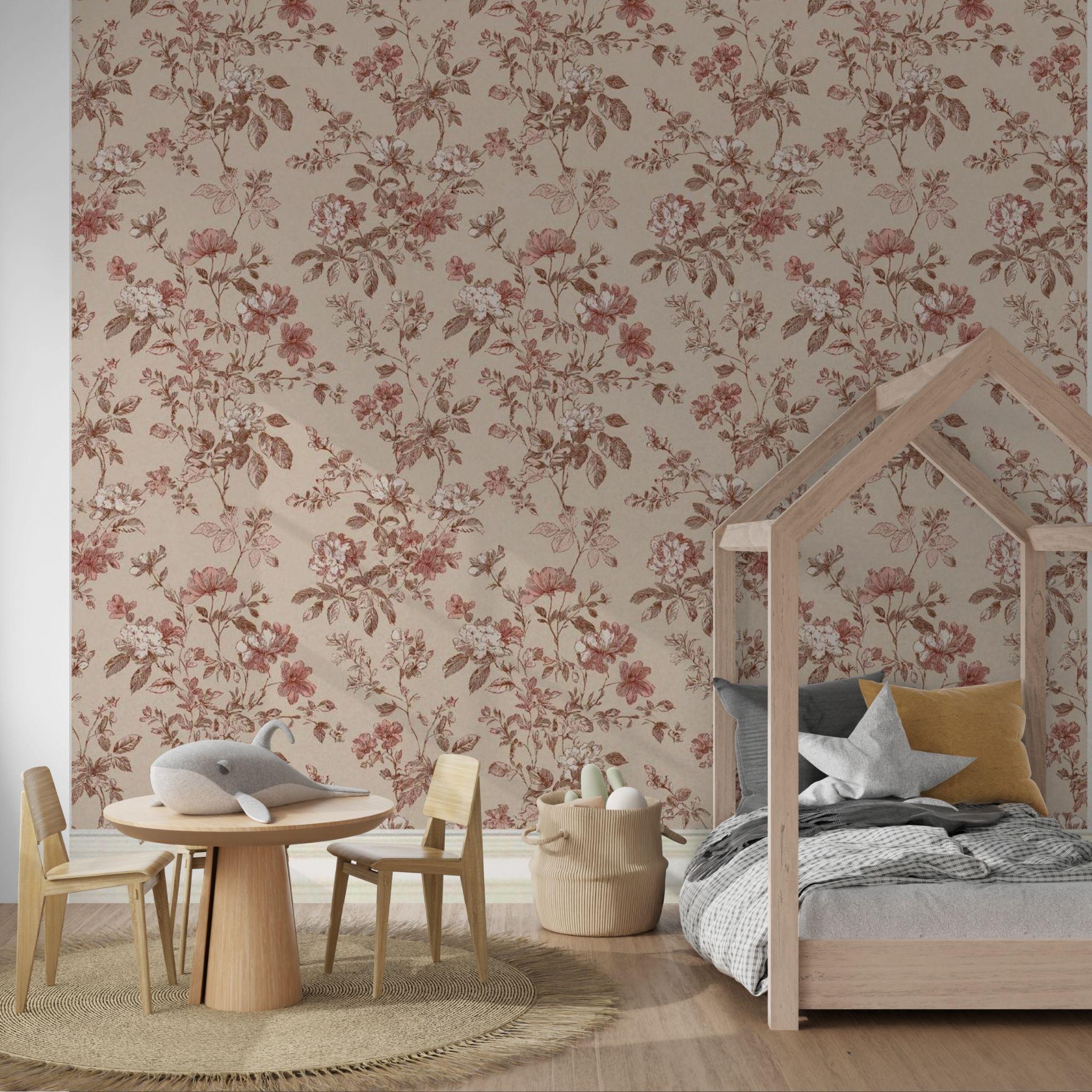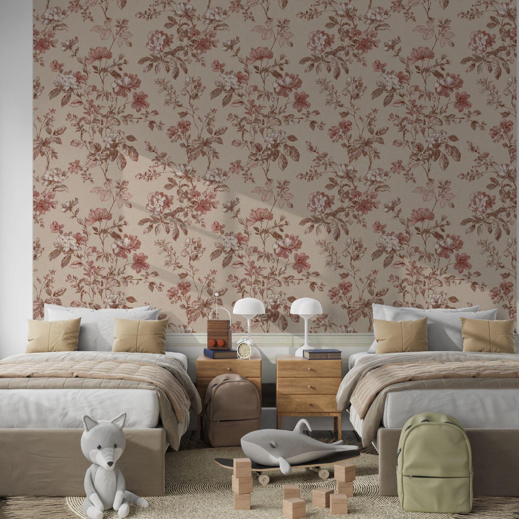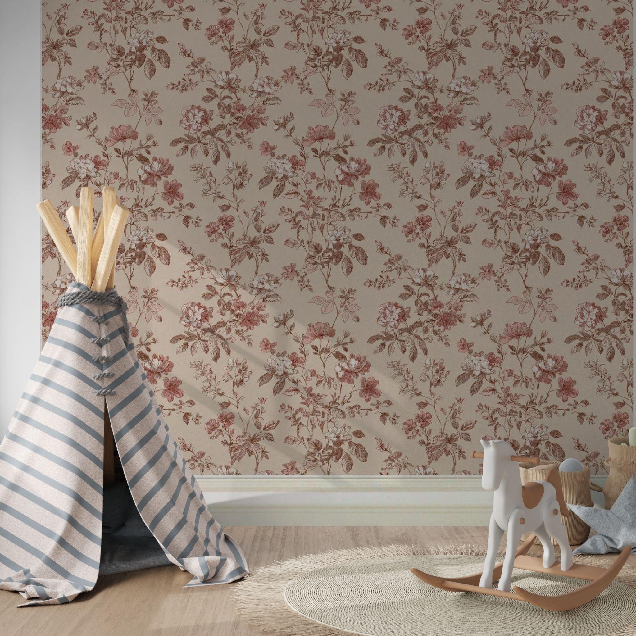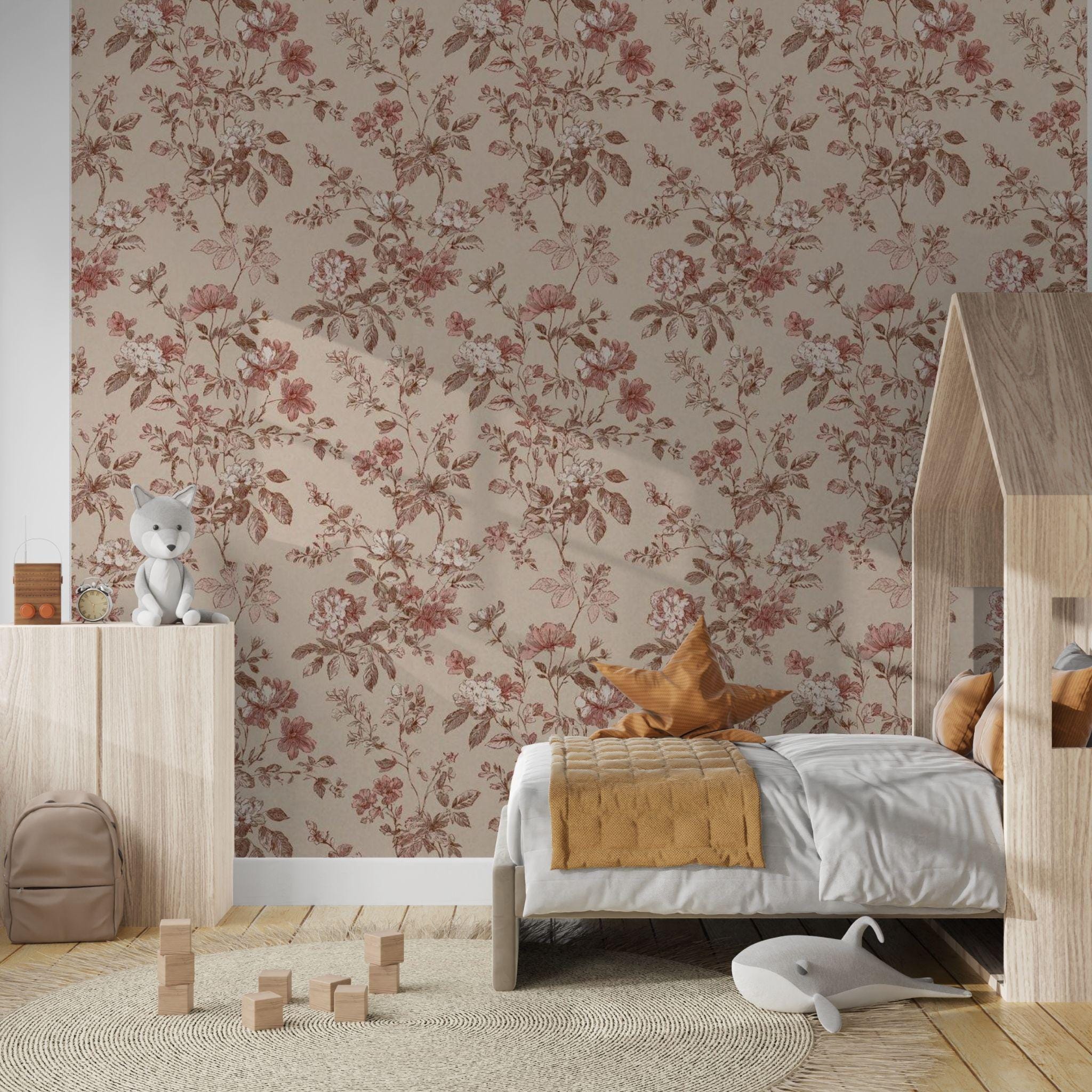 Bring timeless charm to your little one’s space with this vintage blush floral wallpaper. Featuring delicately sketched blooms in warm rose tones on a soft beige backdrop, this design captures the essence of quiet elegance and classic comfort. Perfect for nurseries, bedrooms, or play spaces, it blends a sense of heritage beauty with modern warmth—creating a peaceful, storybook atmosphere that feels both nostalgic and new.
