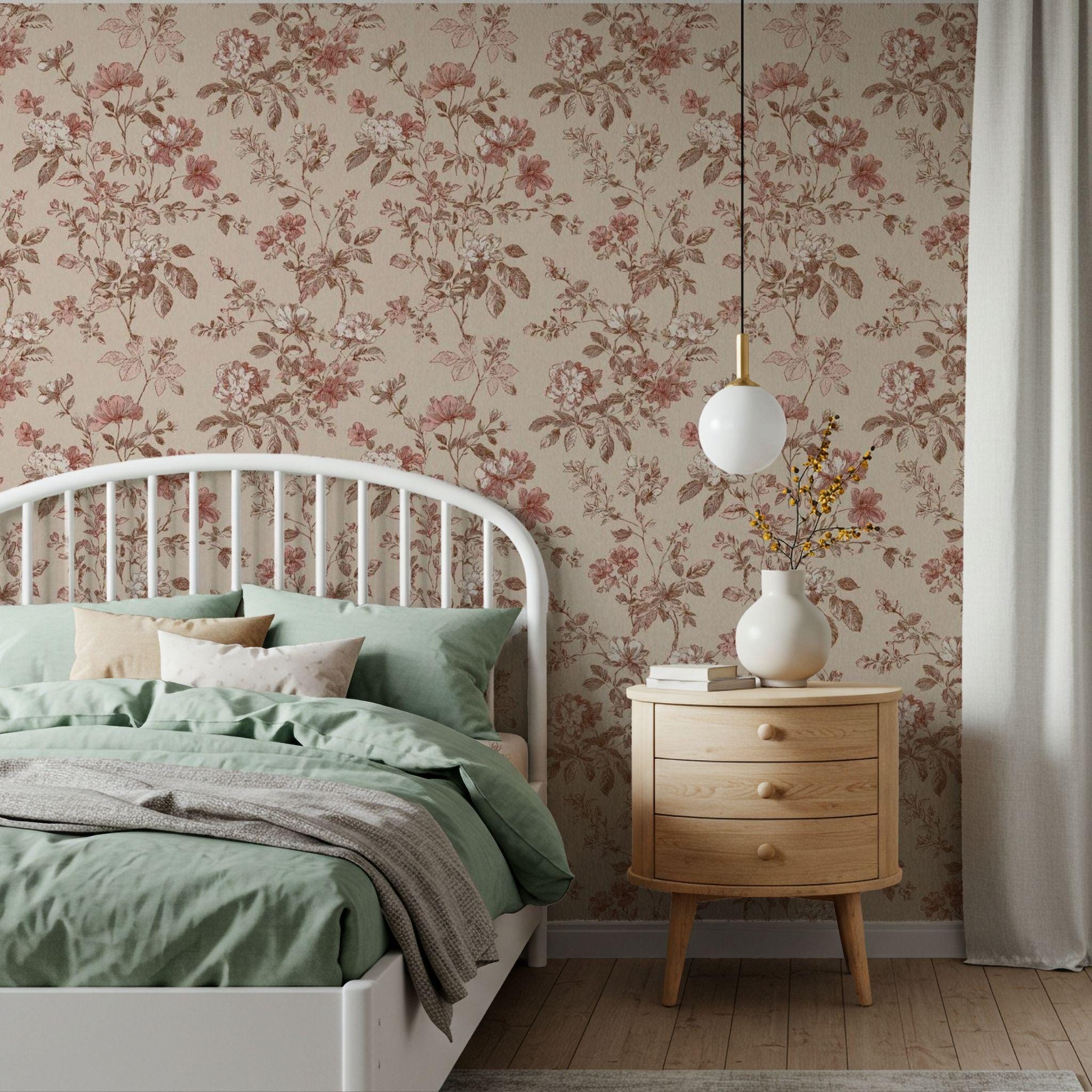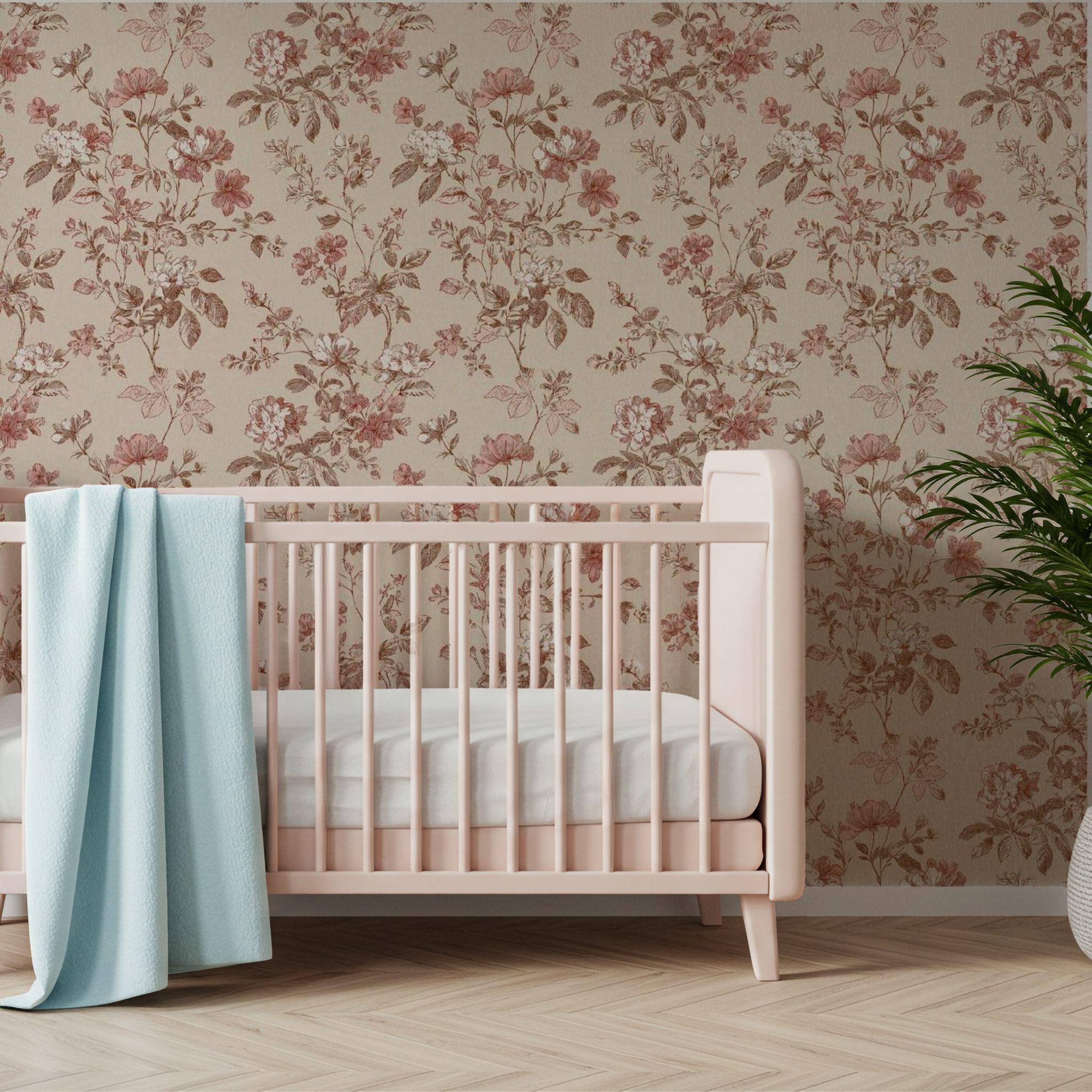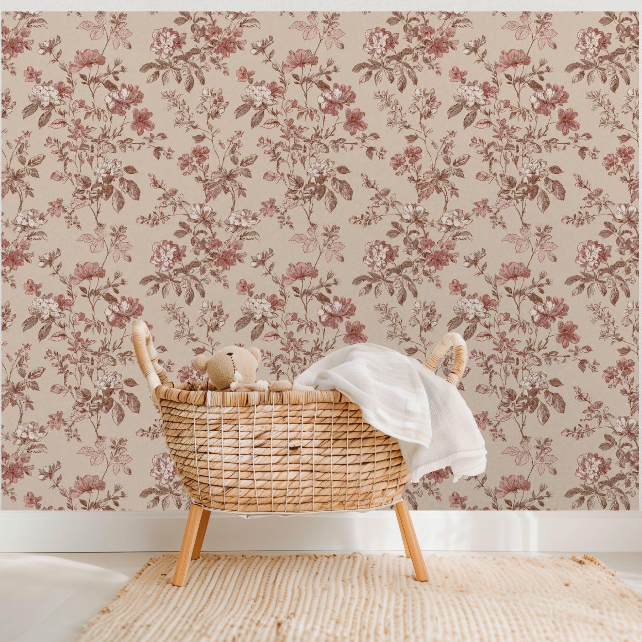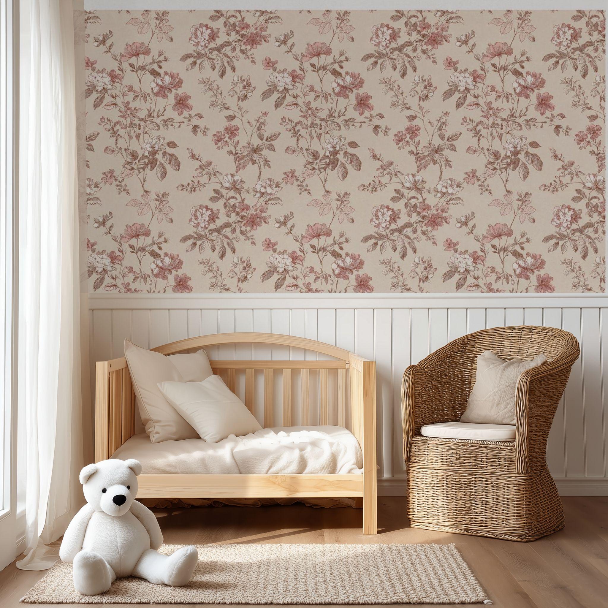 Bring timeless charm to your little one’s space with this vintage blush floral wallpaper. Featuring delicately sketched blooms in warm rose tones on a soft beige backdrop, this design captures the essence of quiet elegance and classic comfort. Perfect for nurseries, bedrooms, or play spaces, it blends a sense of heritage beauty with modern warmth—creating a peaceful, storybook atmosphere that feels both nostalgic and new.