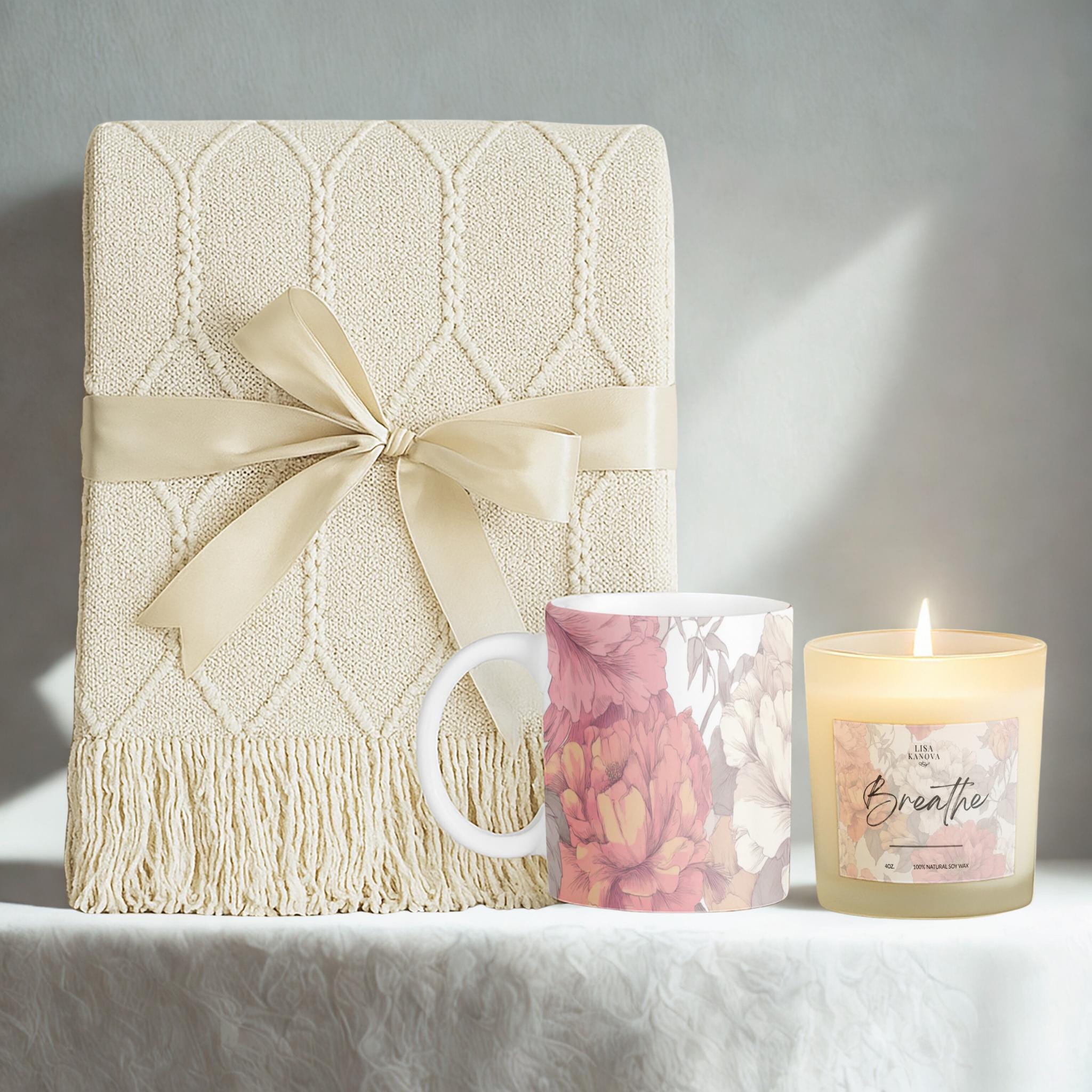 Give the gift of warmth with this beautifully curated three-piece comfort set. The soft tassel blanket, frosted soy candle, and classic ceramic mug come together to create a calming, cozy atmosphere — ideal for relaxing evenings, morning rituals, or special gifting occasions. Whether you’re celebrating a birthday, saying thank you, or sending comfort, this set delivers style, function, and a sense of peaceful ease.