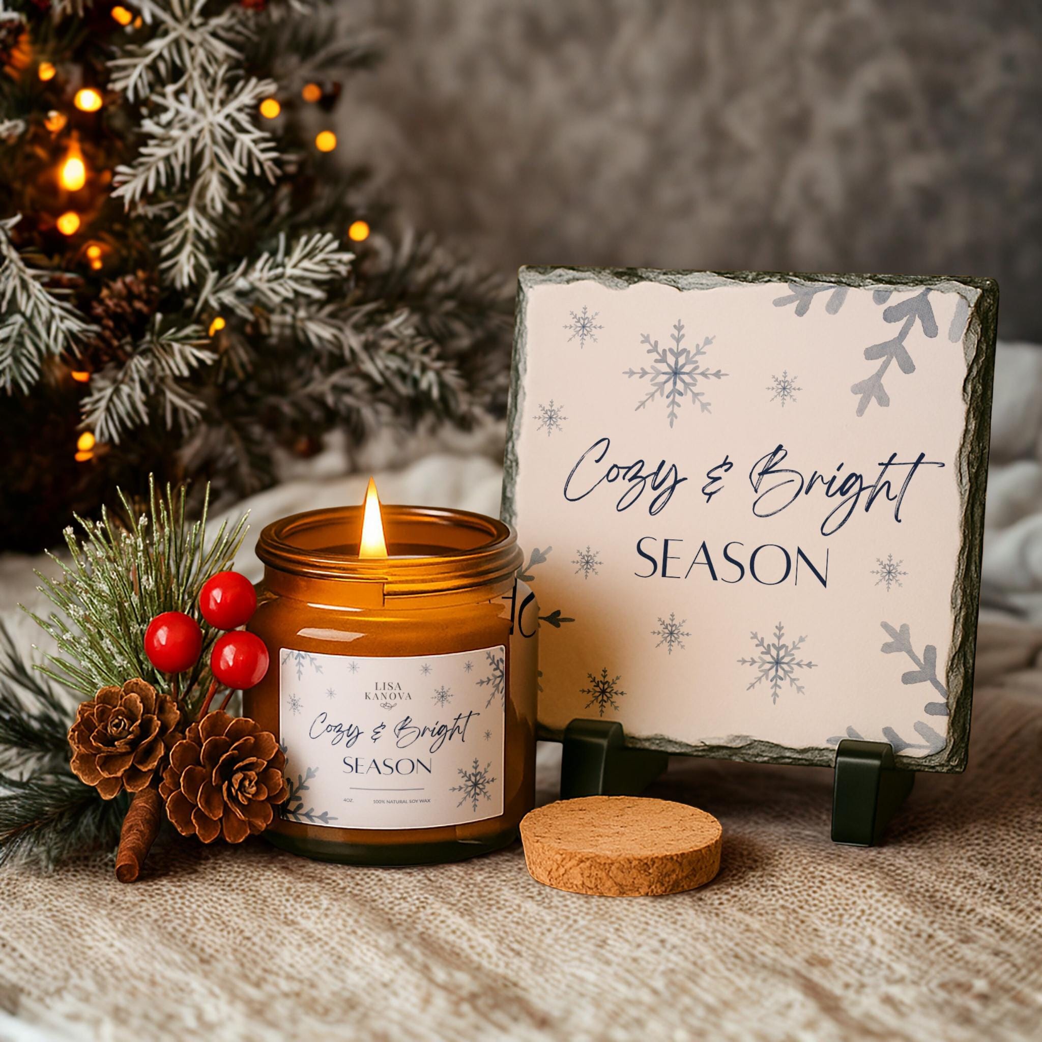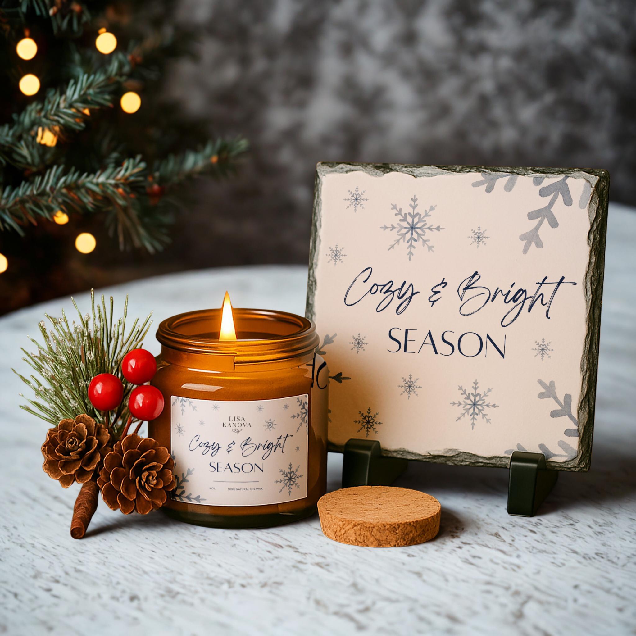 Create a moment of magic with this elegant holiday gift set featuring a handcrafted soy candle, a custom slate stone keepsake, and a festive seasonal accent. Thoughtful, timeless, and beautifully coordinated, this set makes an unforgettable gift for anyone who deserves a little extra warmth this season.