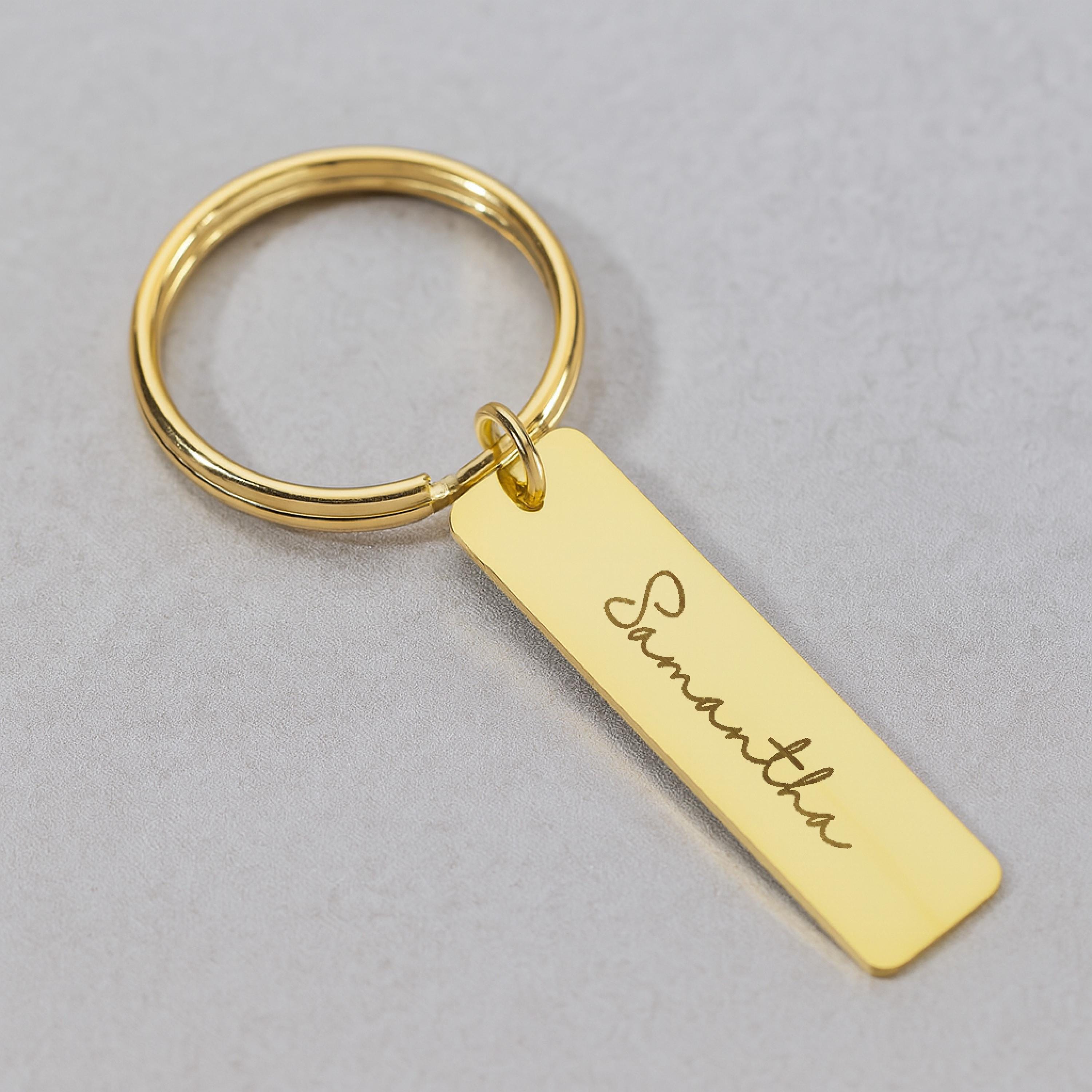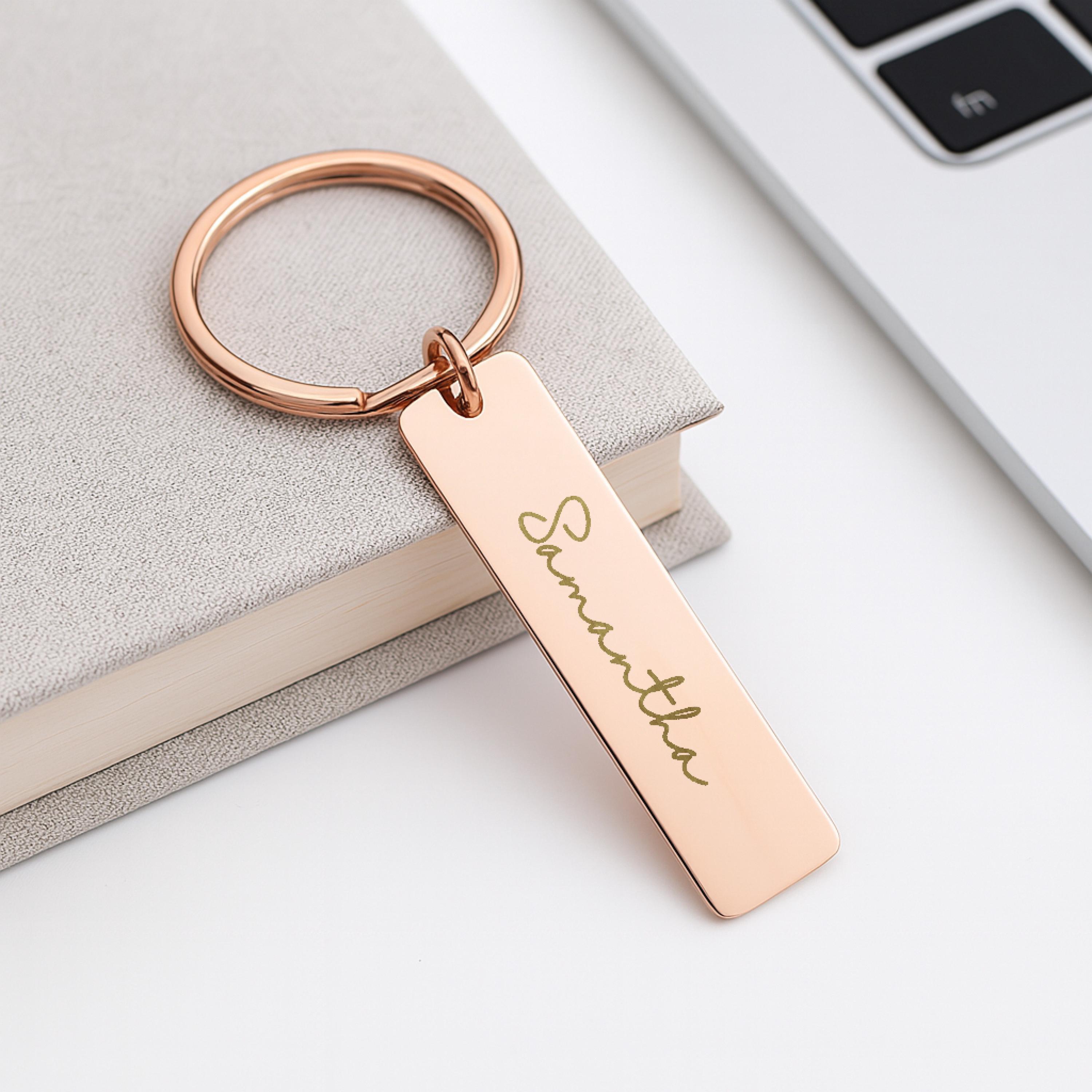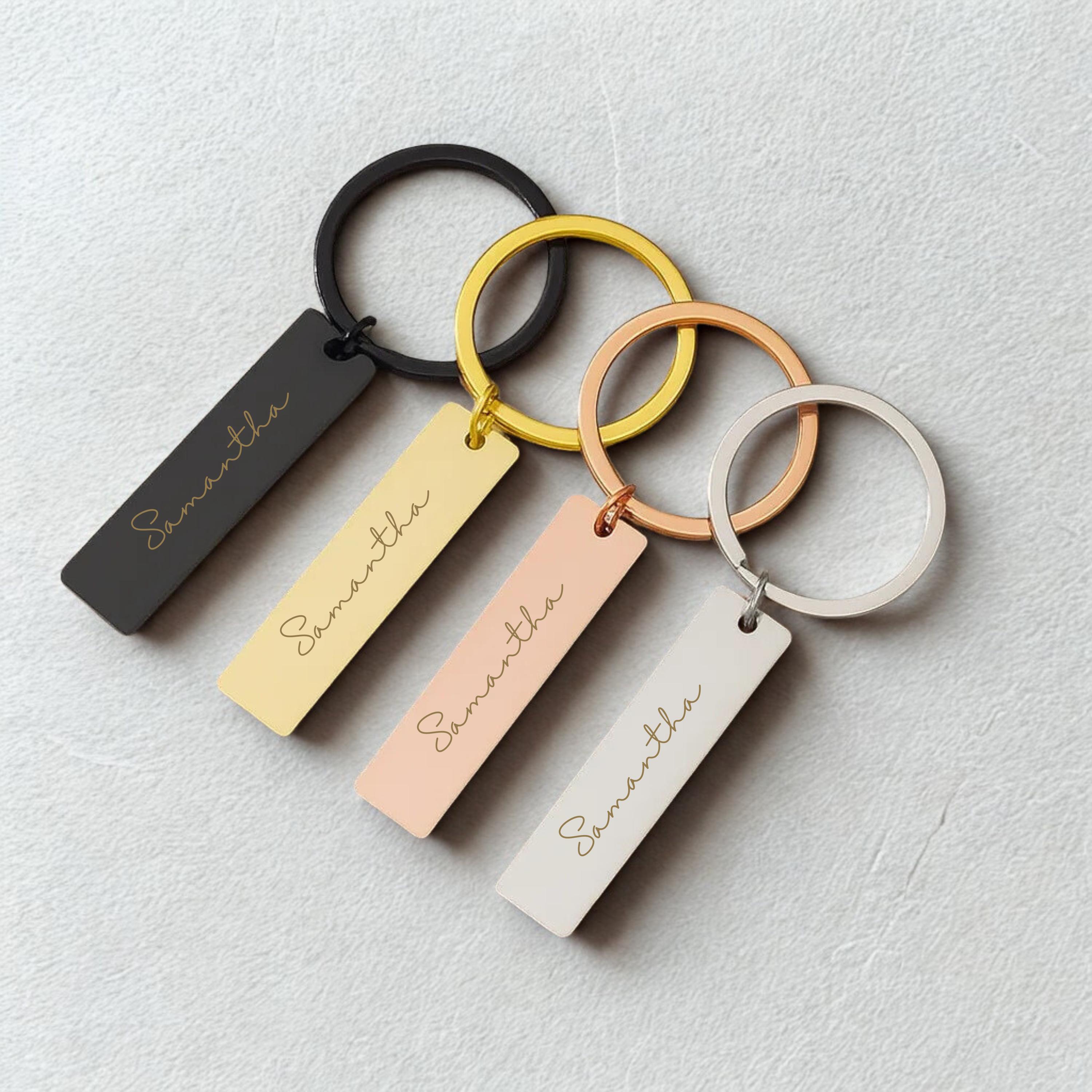 Sleek, modern, and effortlessly giftable, this rectangular metal keychain is designed for those who appreciate clean, minimalist style. Crafted from high-quality polished metal, its slim silhouette is both lightweight and durable—perfect for everyday use. The 1.6" x 0.35" engraving area provides the ideal canvas for a name, date, coordinates, or a meaningful word, all engraved with precision using one elegant font style for a cohesive, refined look.