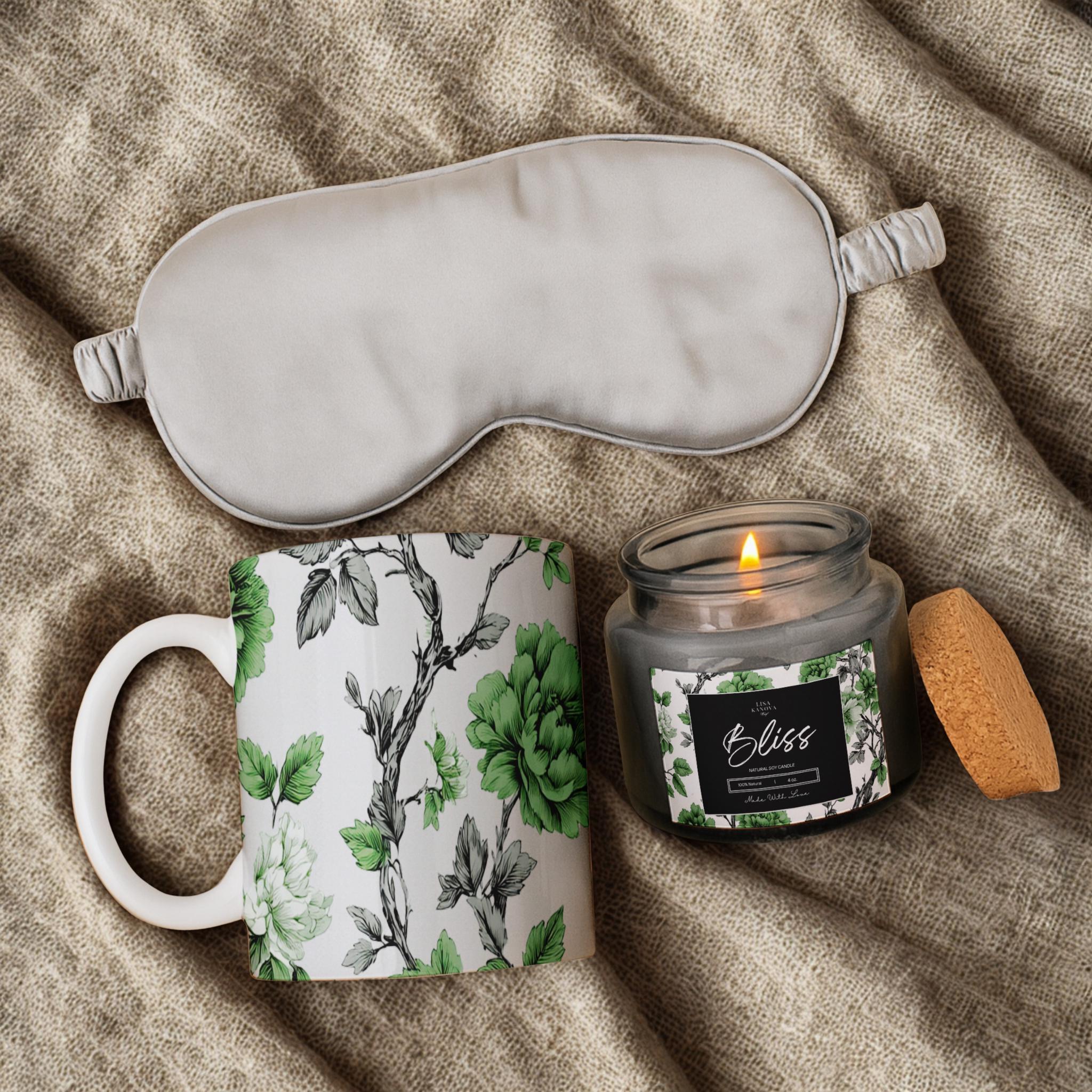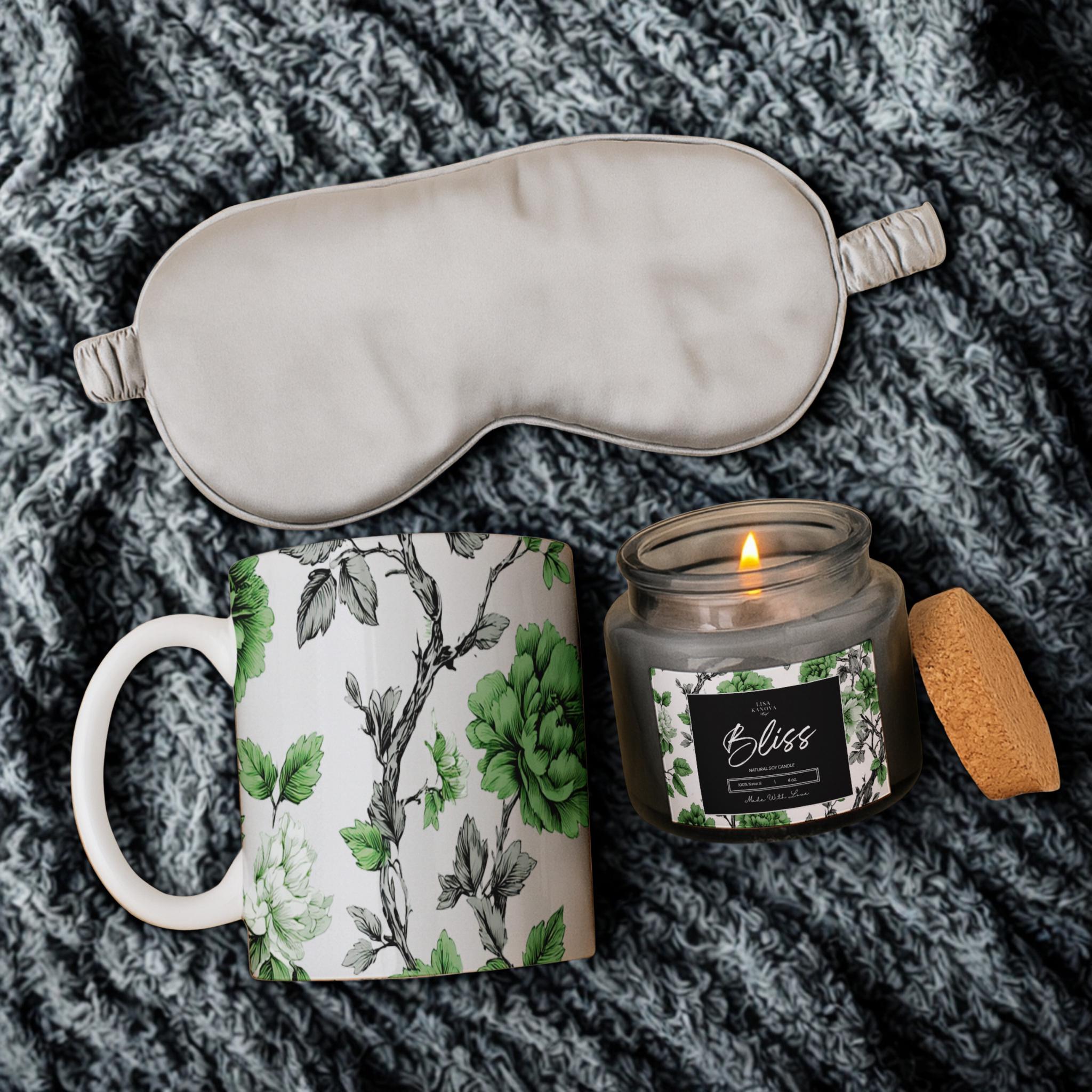 Self-Care Gift Box – Gray Silk Sleep Mask, Soy Candle & Ceramic Mug Set