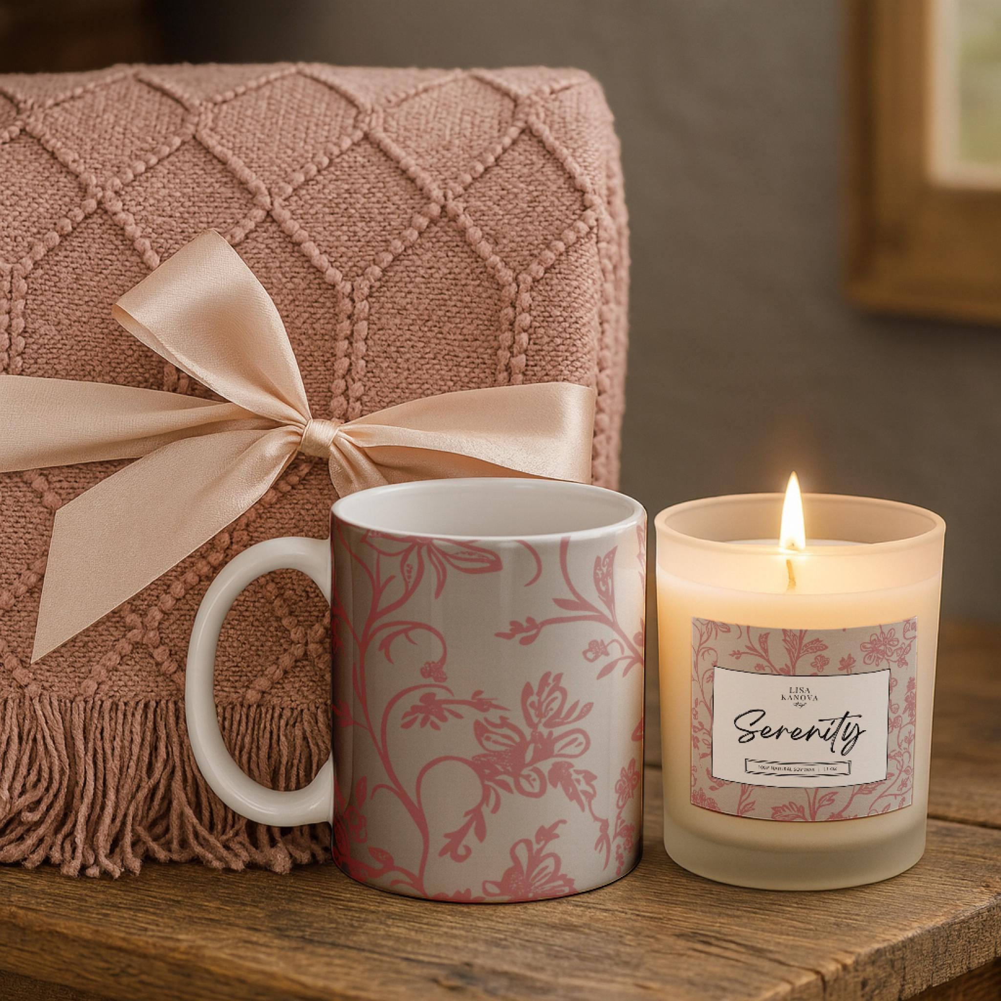 Serenity Candle with Mug & Blanket Spa Gift Set
