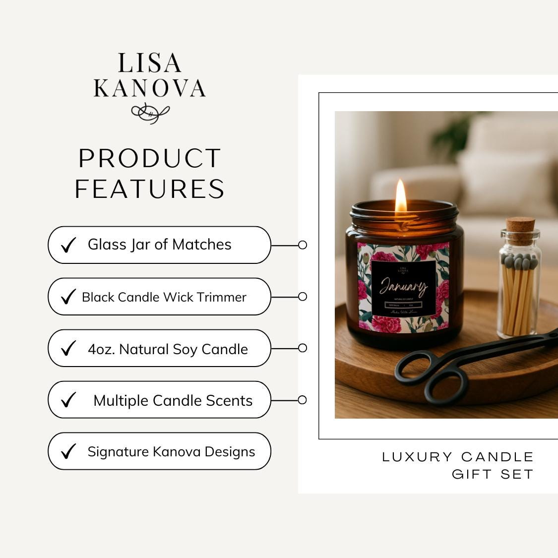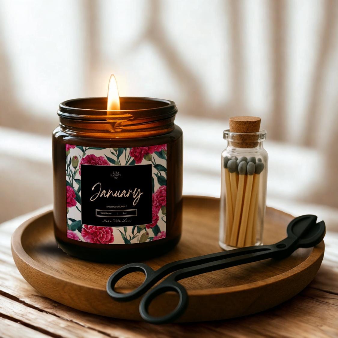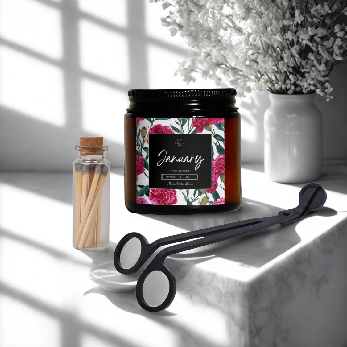 Luxury Candle 3 Piece Gift Set Birth Flower Edition by Lisa Kanova - January Carnation