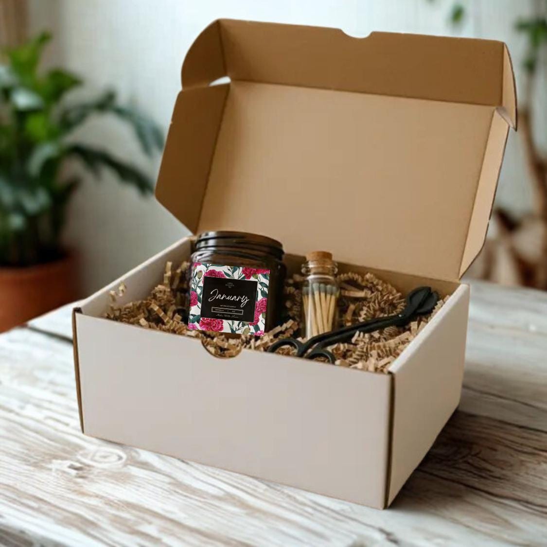 This elegant 3-piece gift set includes 1 x 4oz scented candle, 1 Black Candle Trimmer, and 1 jar of matches — a thoughtfully curated collection for any candle lover. The eco-friendly soy candle offers a clean, consistent burn with a customizable label for a personal or branded touch. The wick trimmer helps maintain optimal burning conditions, while the included matches make lighting simple and stylish. Perfect for gifting, client appreciation, or adding a personalized flair to your product line, this set combines quality, function, and a refined presentation.