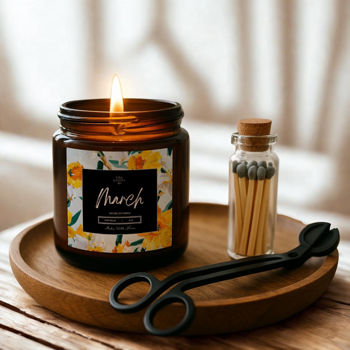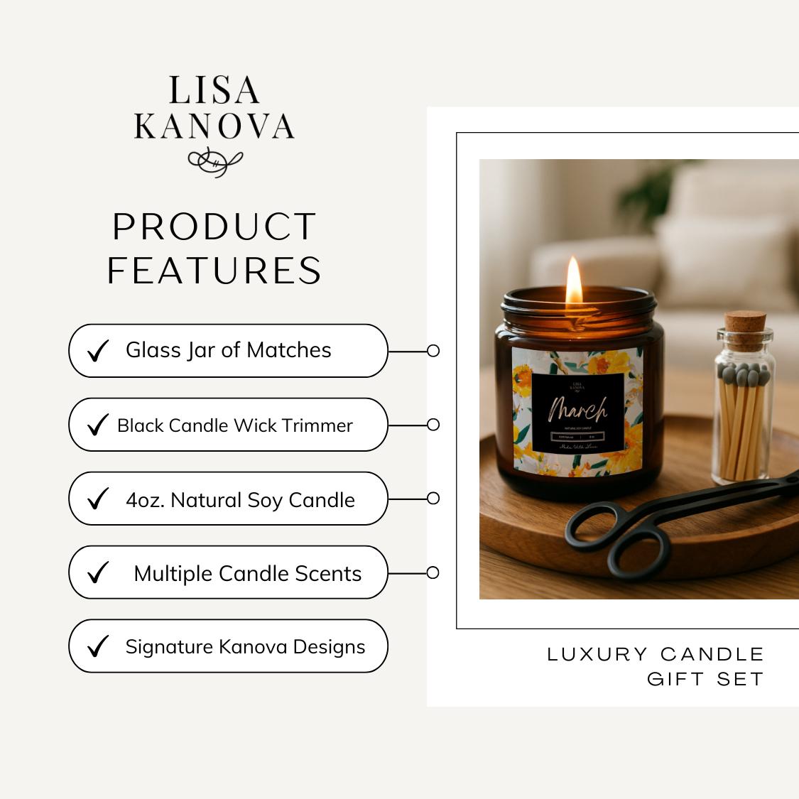 Luxury Candle 3 Piece Gift Set Birth Flower Edition by Lisa Kanova - March Daffodil
