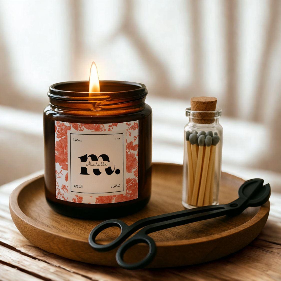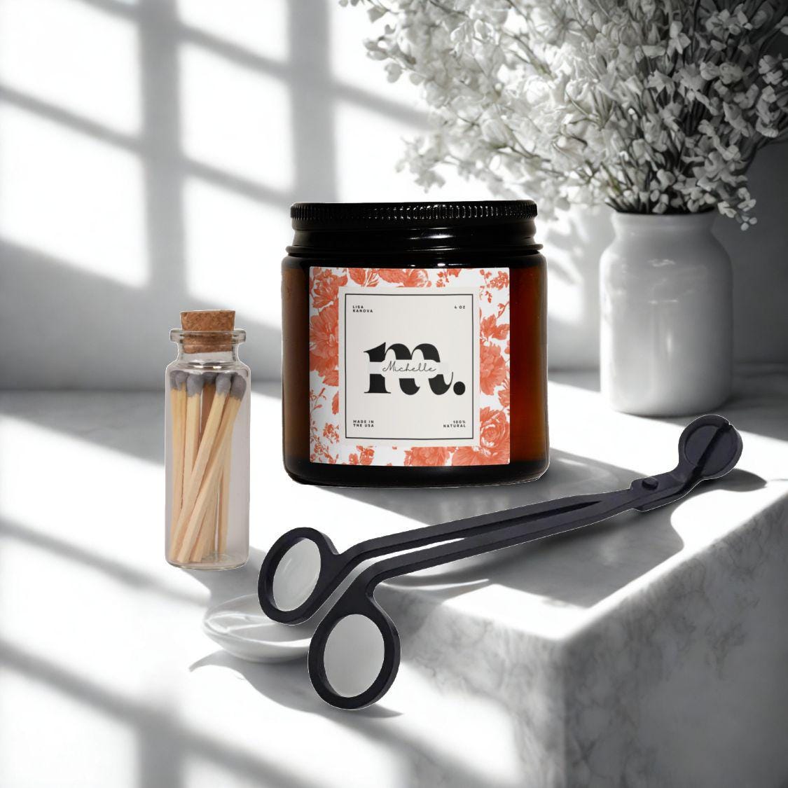Personalized Soy Candle Gift Set: Matches & Wick Trimmer