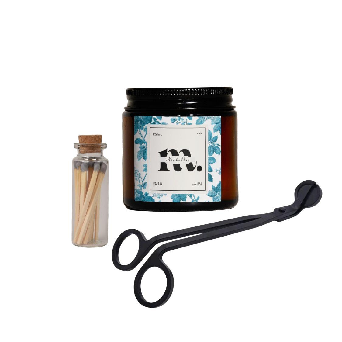 This refined 3-piece gift set includes one 4oz luxury soy candle, a black wick trimmer, and a jar of matches—a complete, beautifully curated experience for any candle lover.