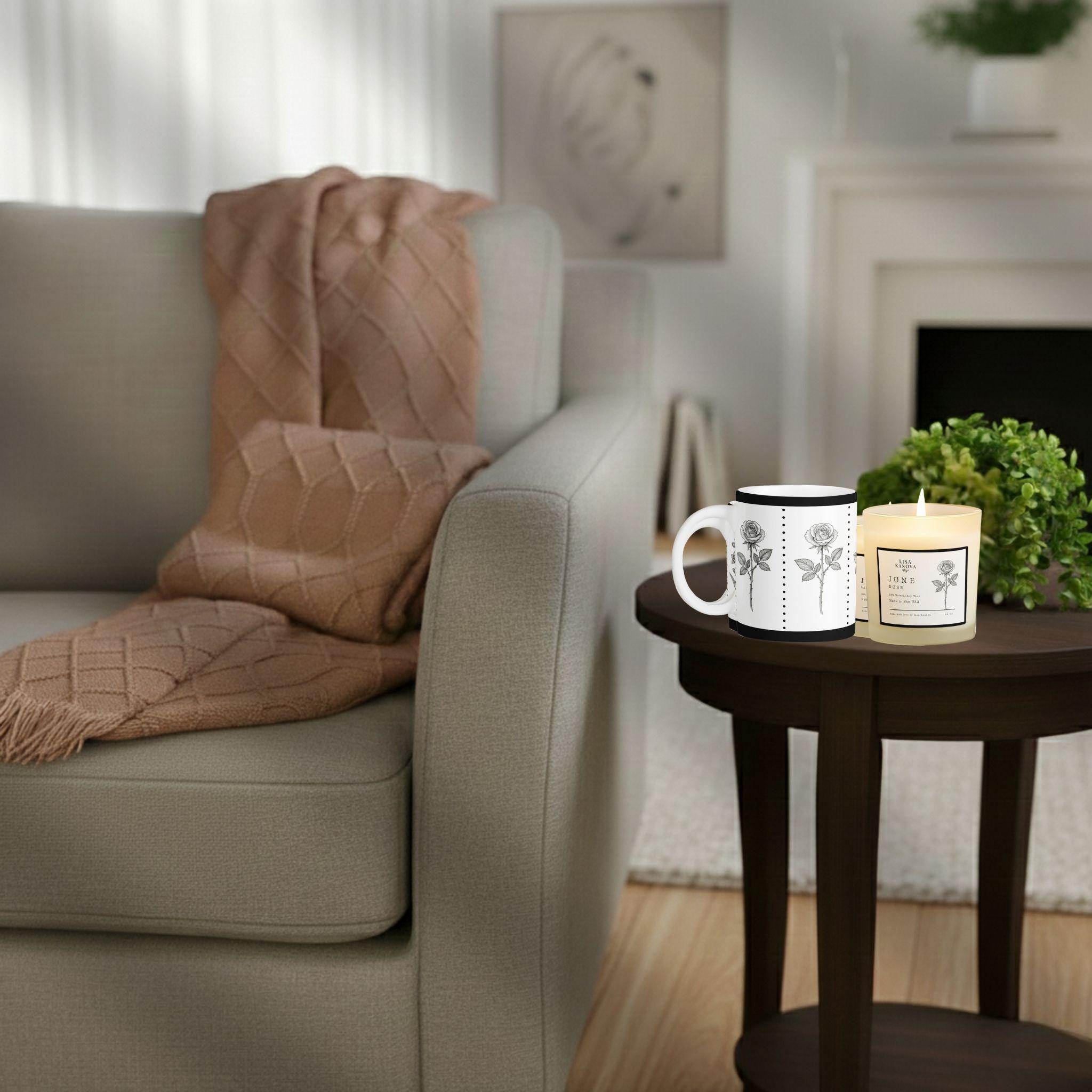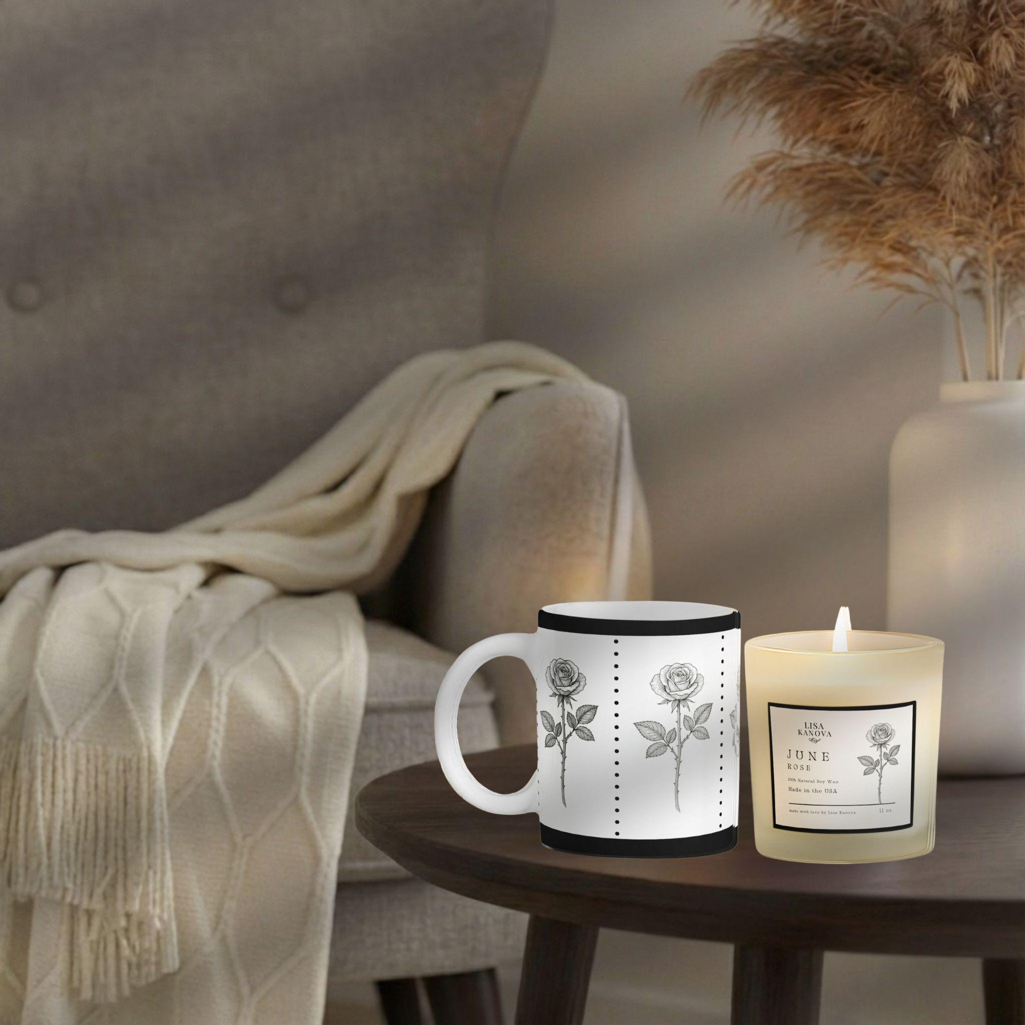 Bring a touch of curated beauty to any moment with this trendy and chic birth flower botanical motif. Designed to feel timeless, elegant, and unmistakably special, this three-piece collection transforms everyday comfort into a refined ritual. Each set includes a soft tassel throw, a fine-art floral mug, and a scented soy candle — a blend of classic charm and modern style.