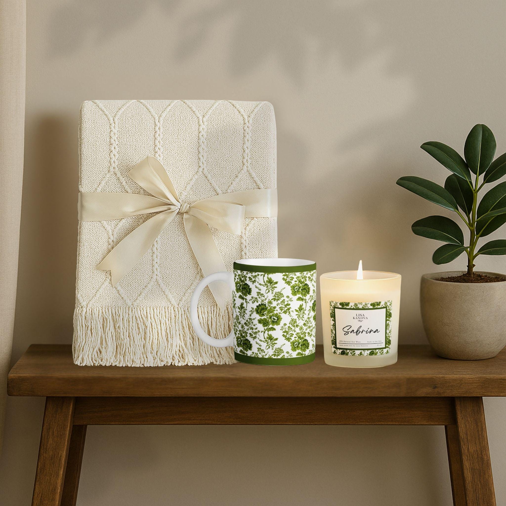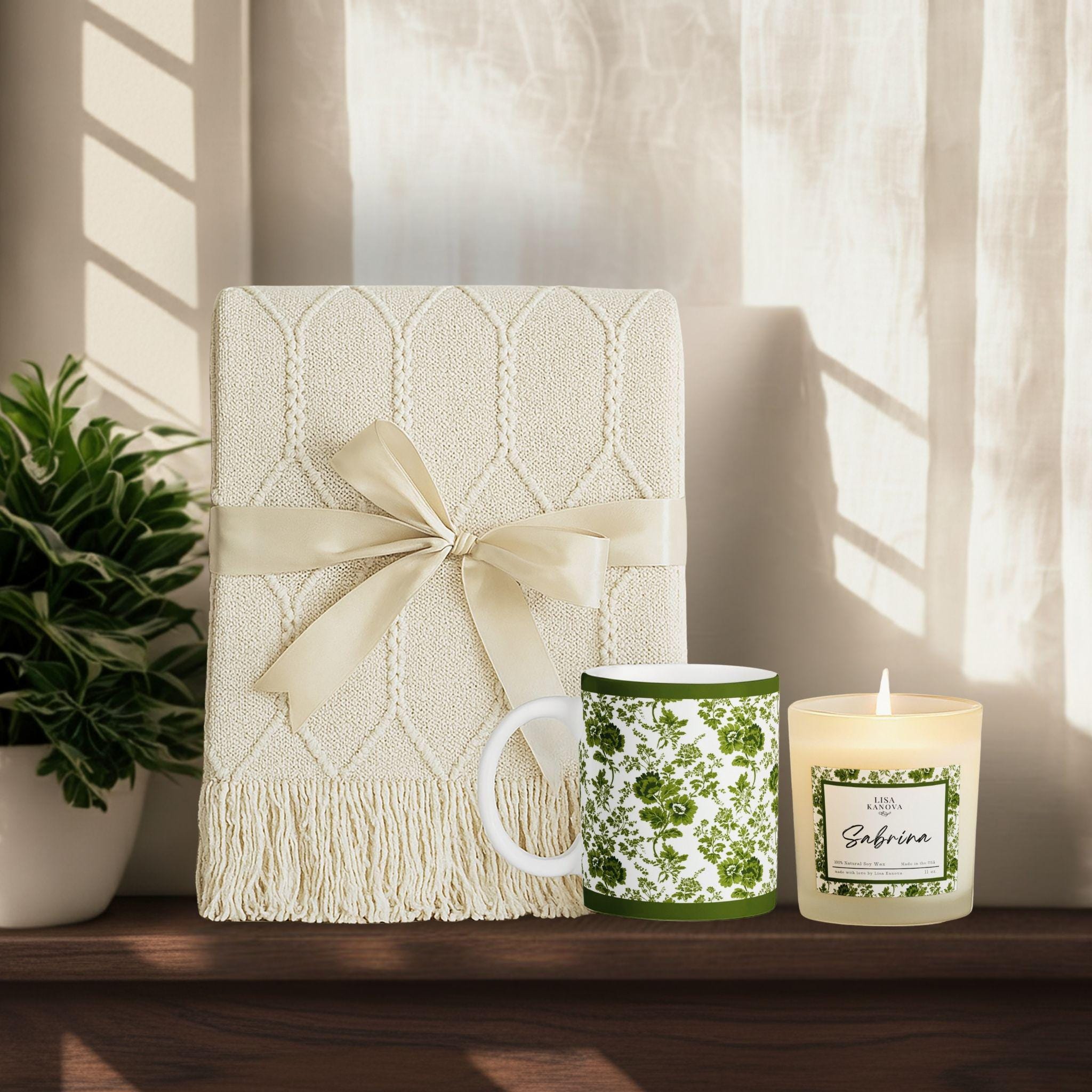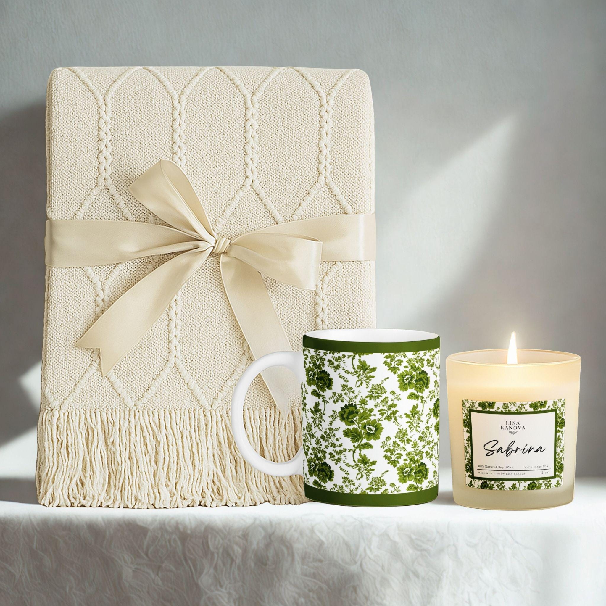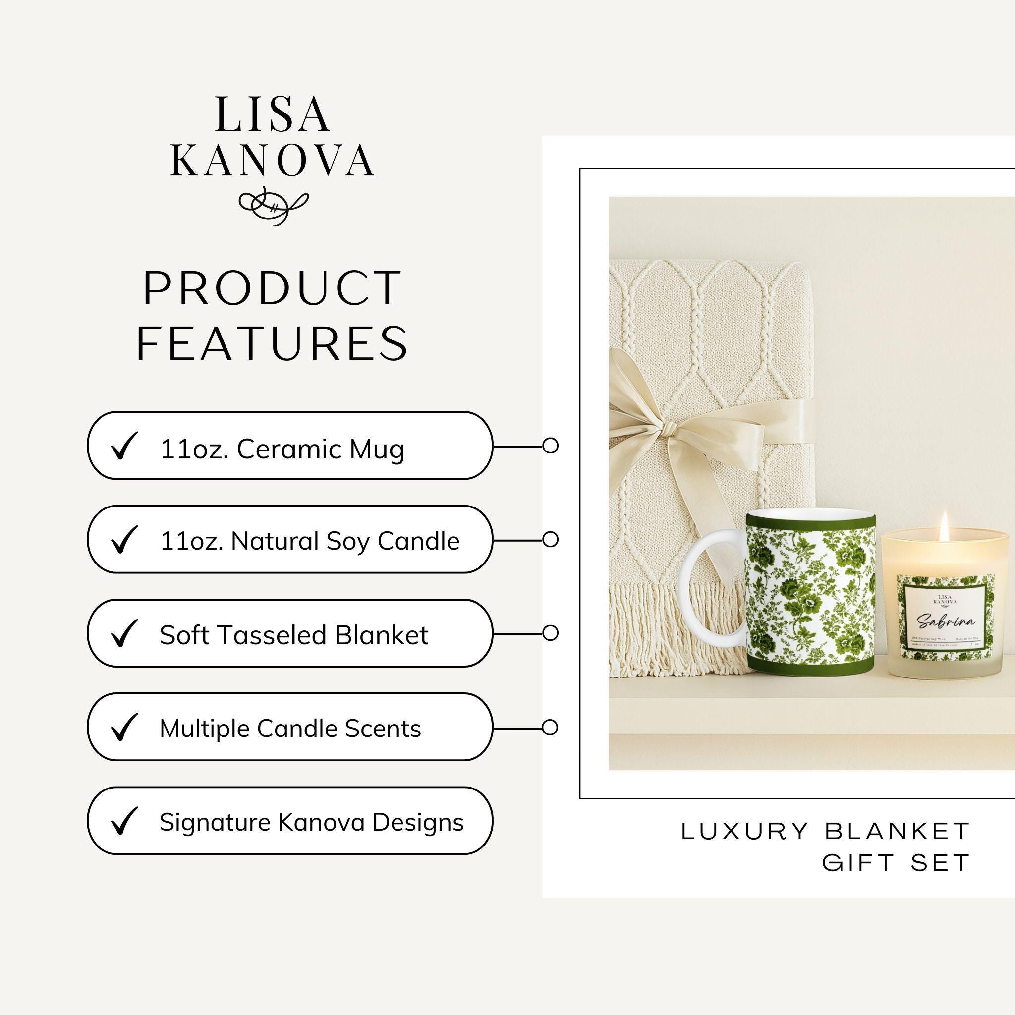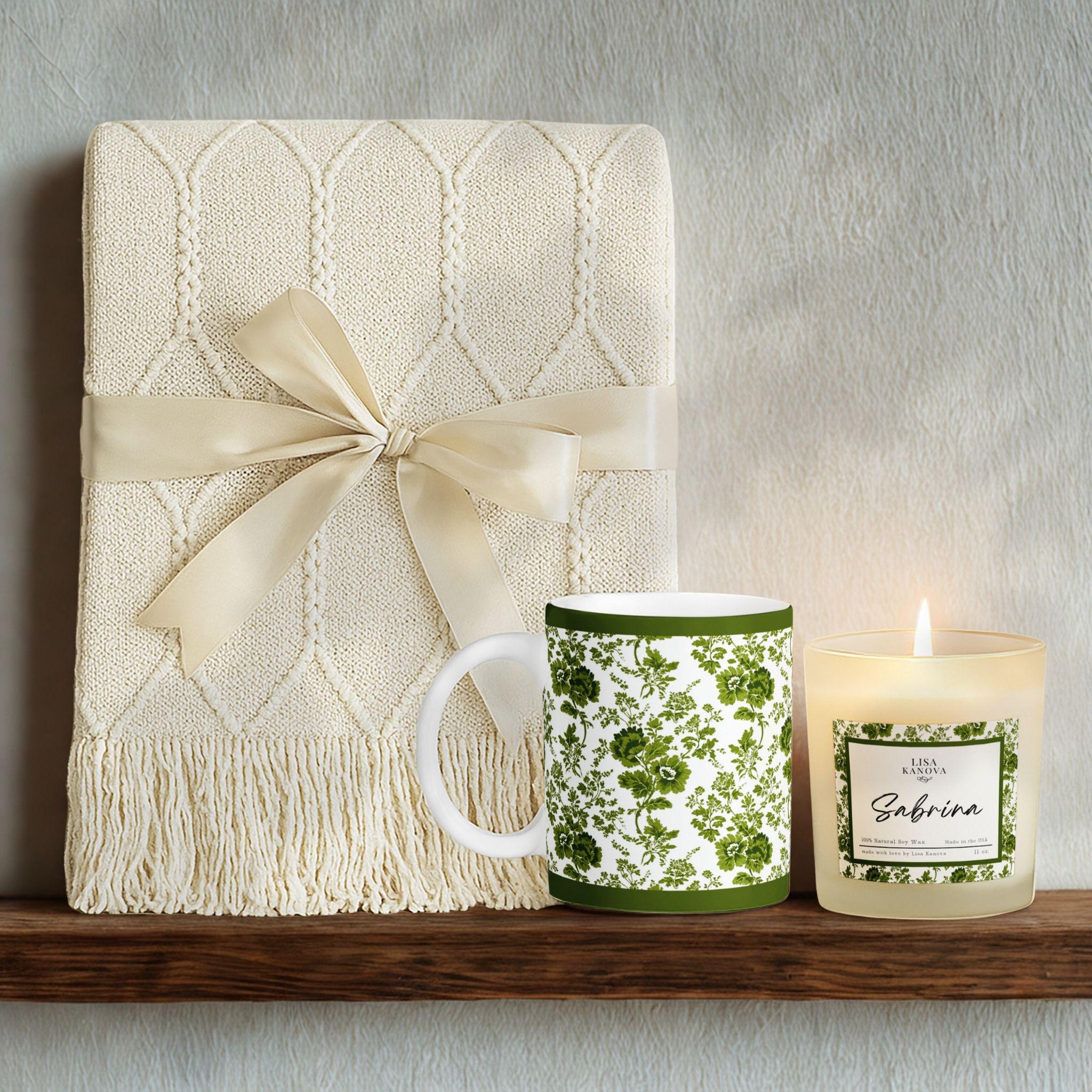 Luxury Blanket, Mug & Candle Gift Set • Exclusive Kanova Toile Collection • Personalized Gift Box
