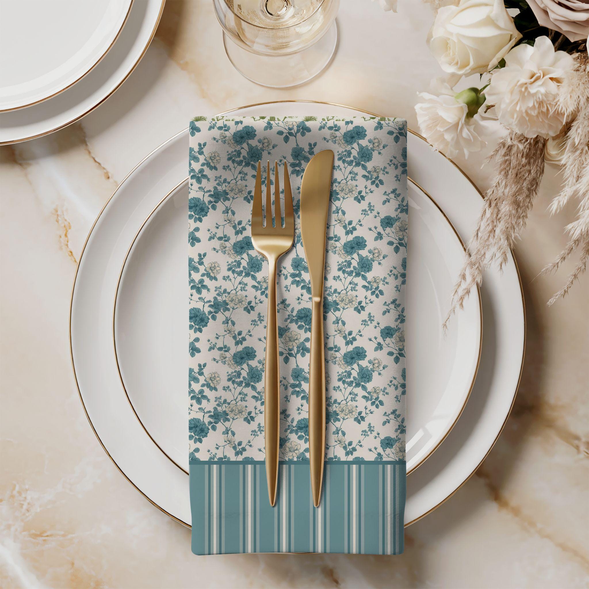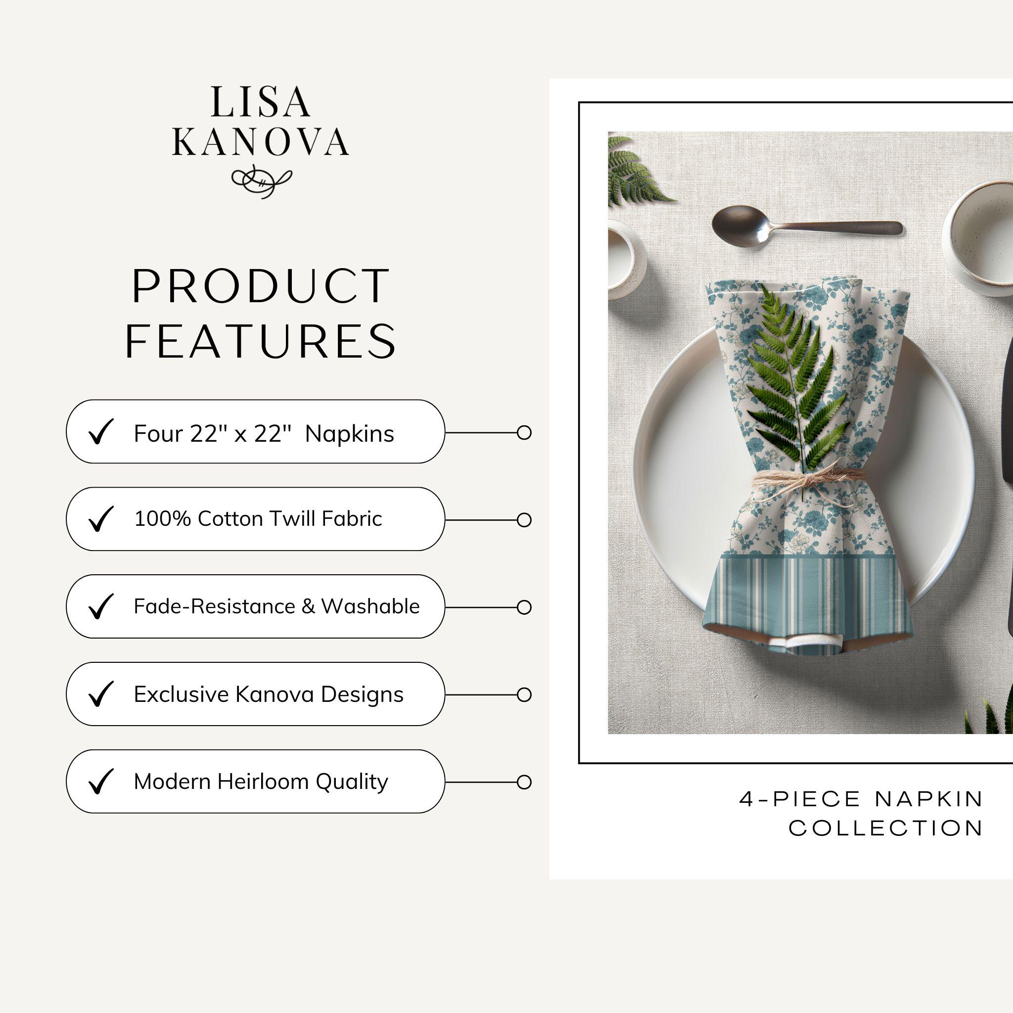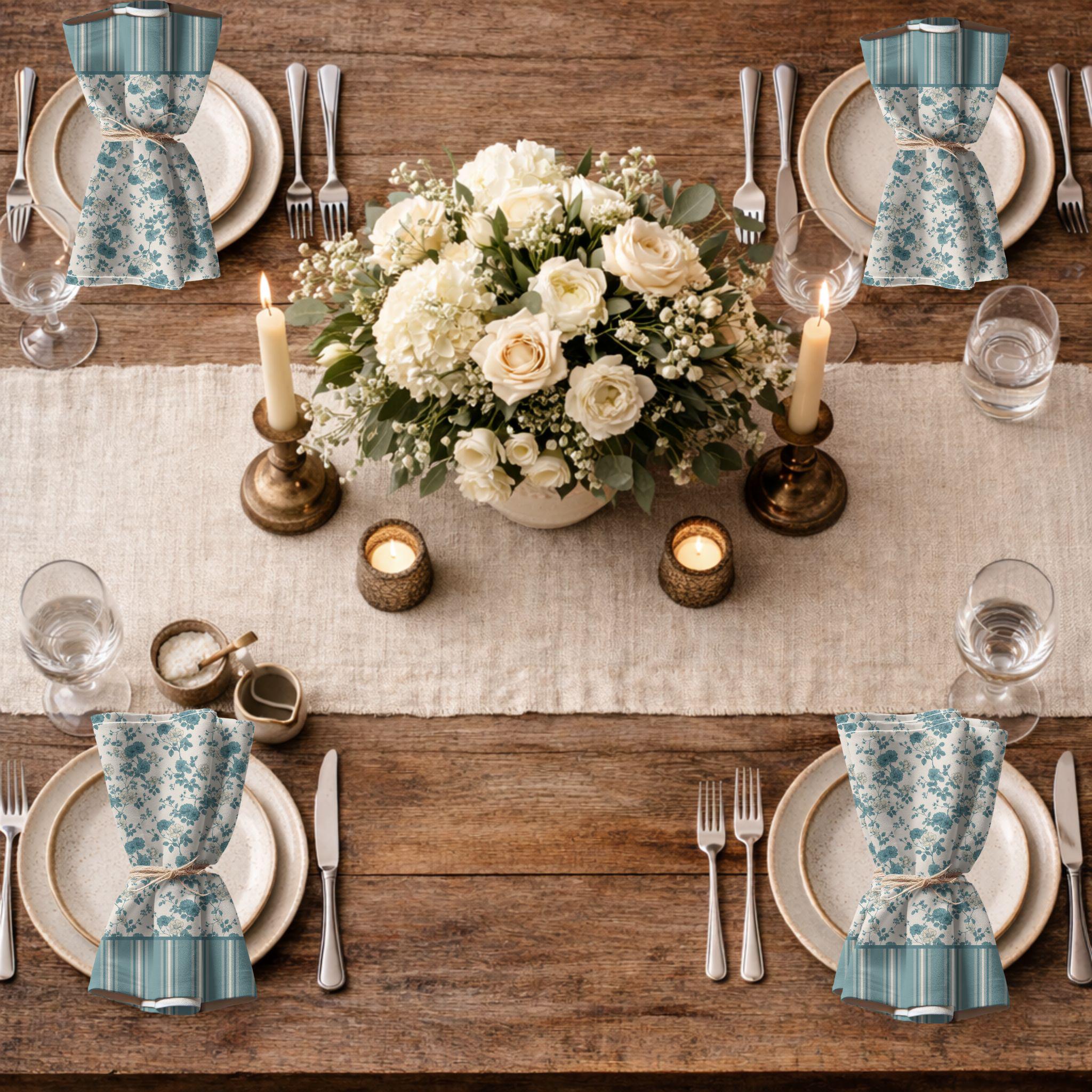 Each set includes four coordinating cloth dinner napkins. For larger tables or gatherings, simply add multiple sets to achieve a complete, elevated look.