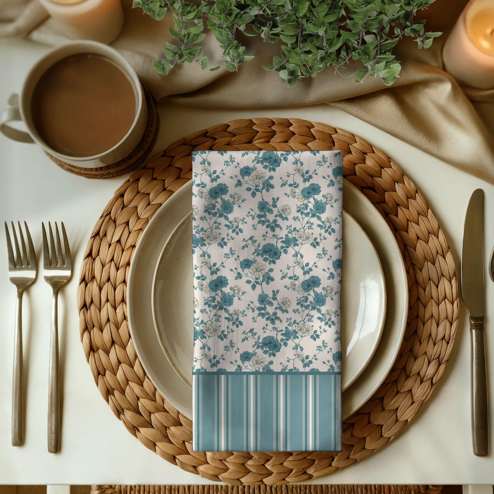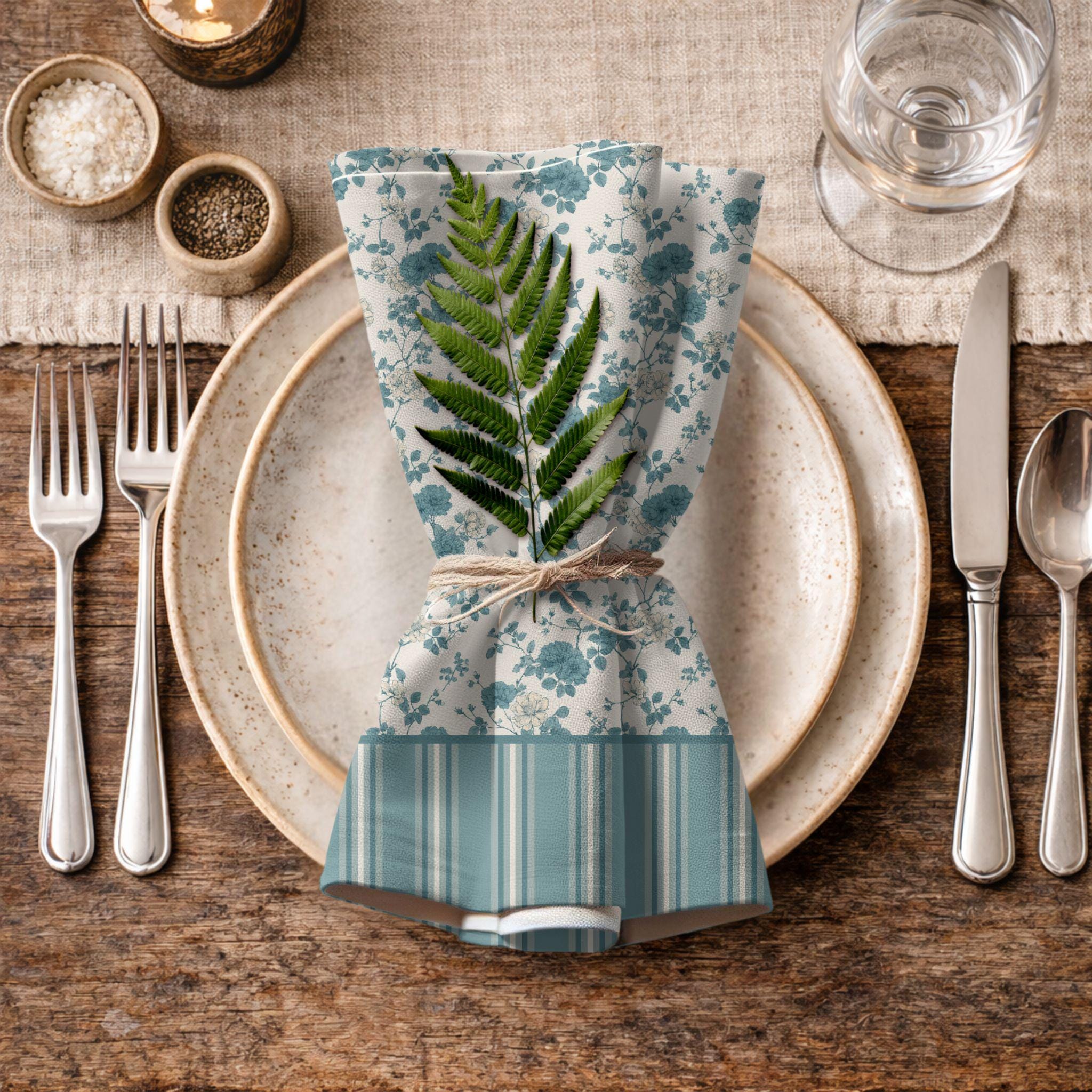 Crafted from soft yet durable cotton twill, these reusable cloth napkins are made for real life—perfect for everyday dining while still feeling special enough for entertaining. The design layers beautifully with neutral linens, stoneware, ceramic plates, and natural textures, making it easy to build a cohesive table setting over time.