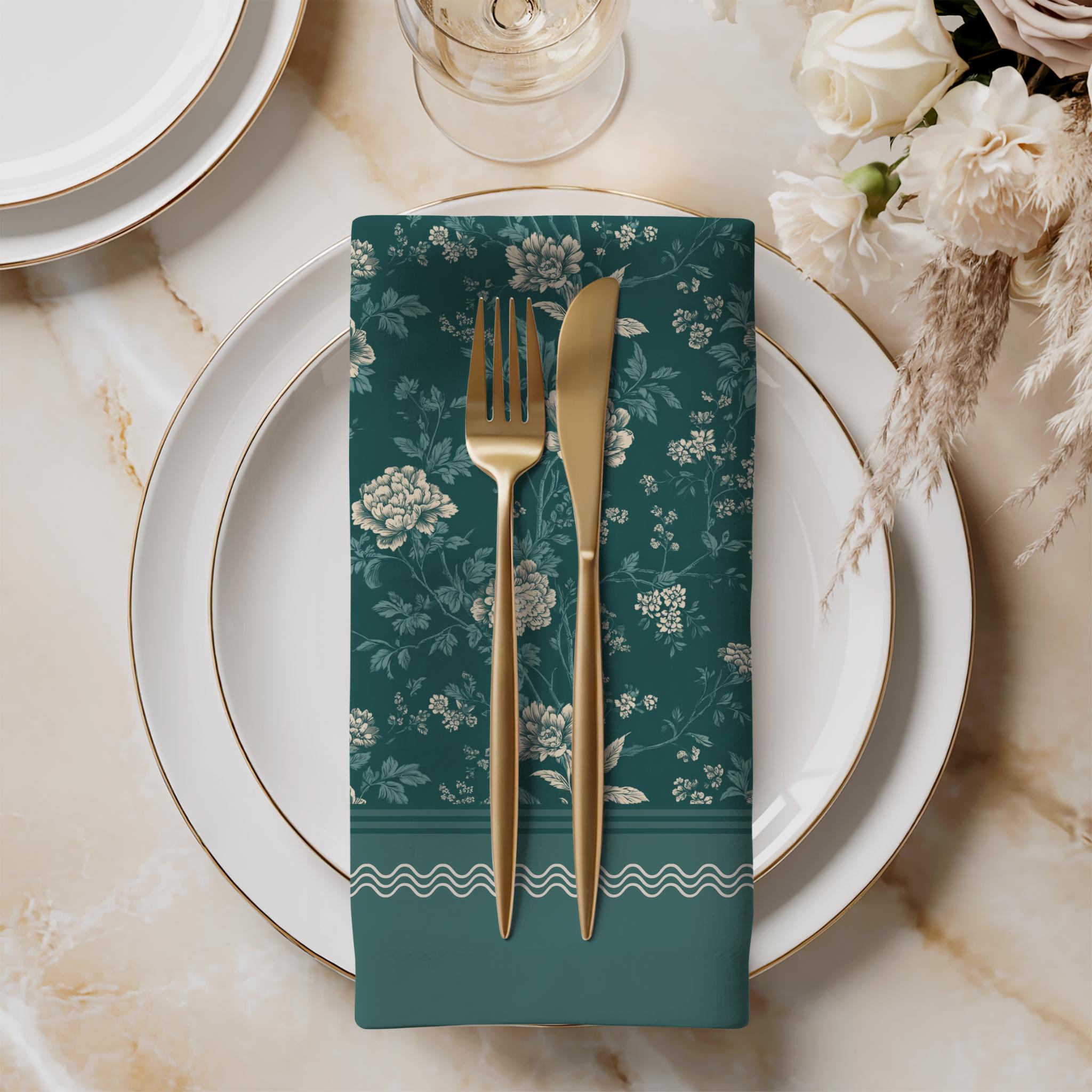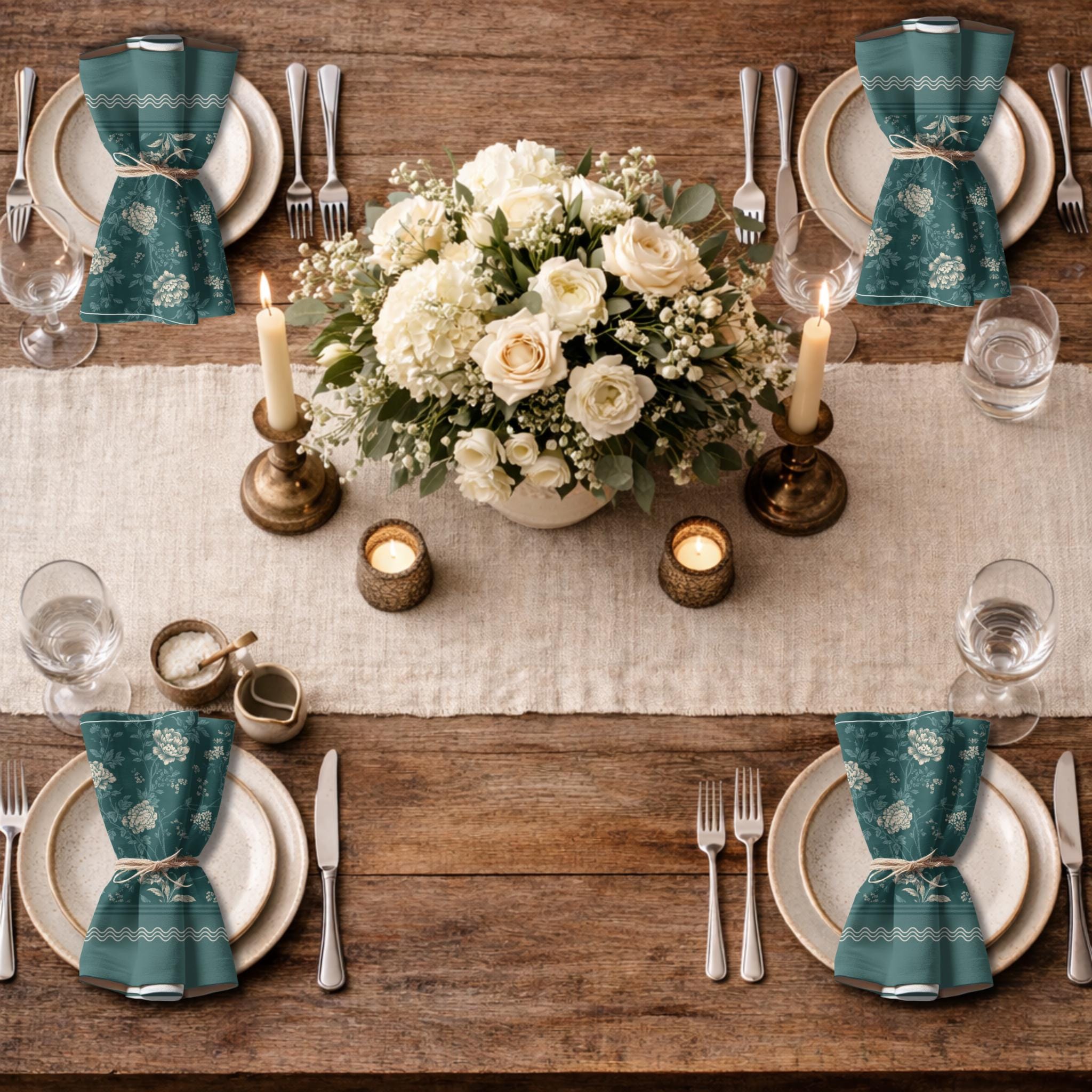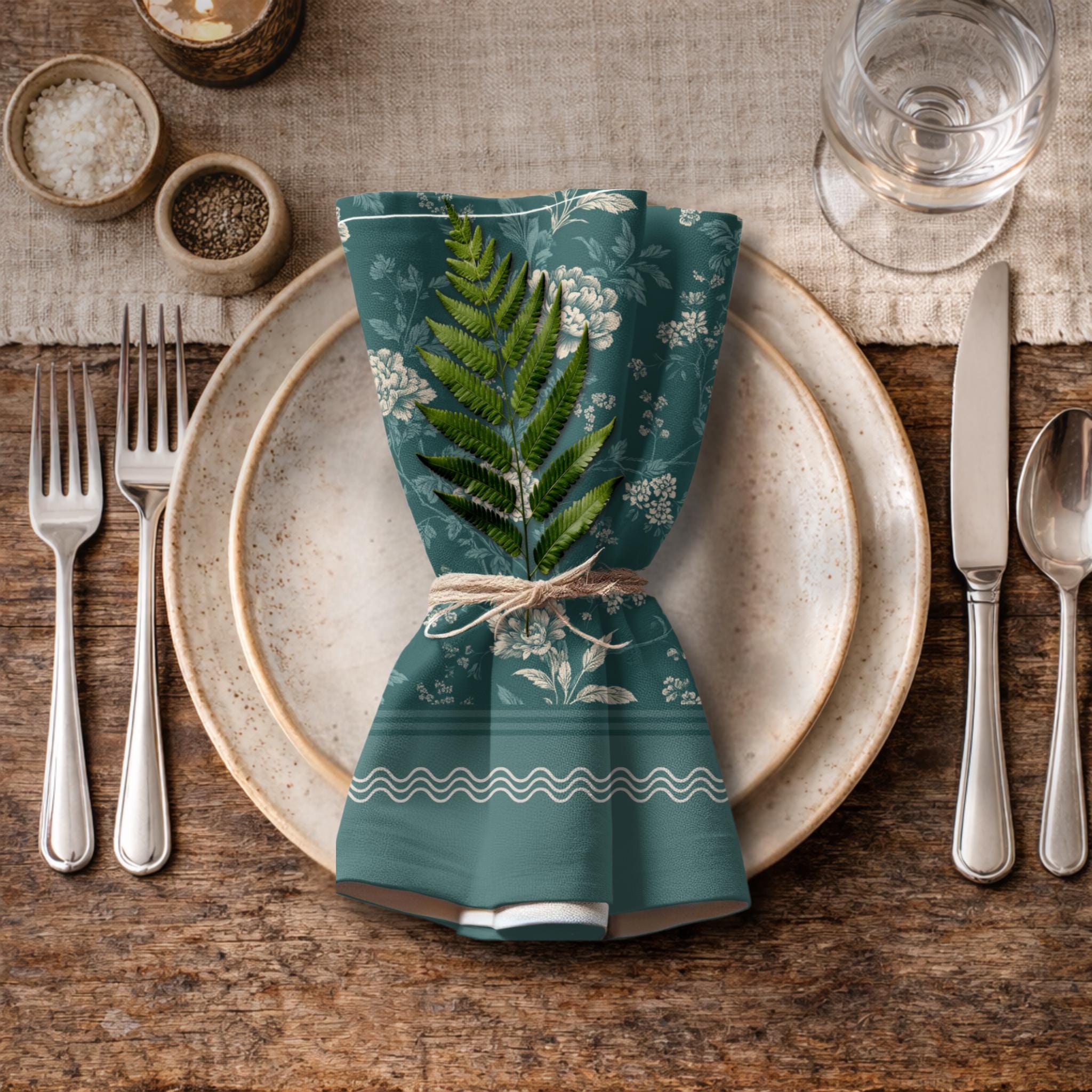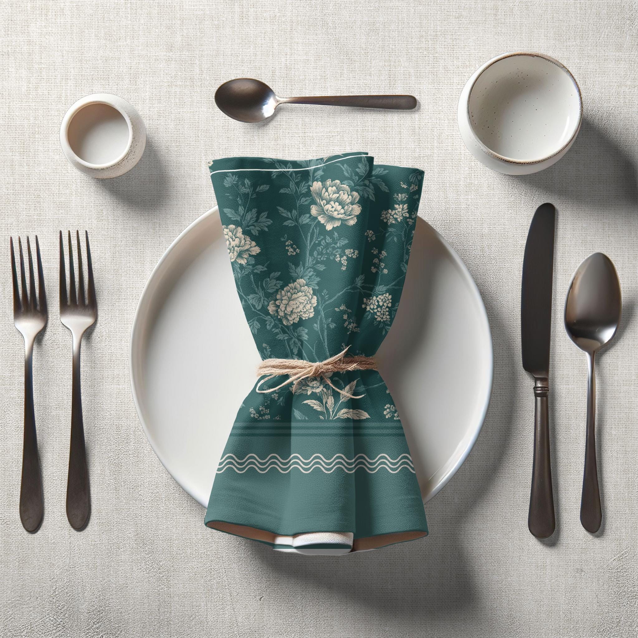 Designer Set of 4 - 100% Cotton Twill 22" x 22" Modern Heirloom Napkins in Teal Garden