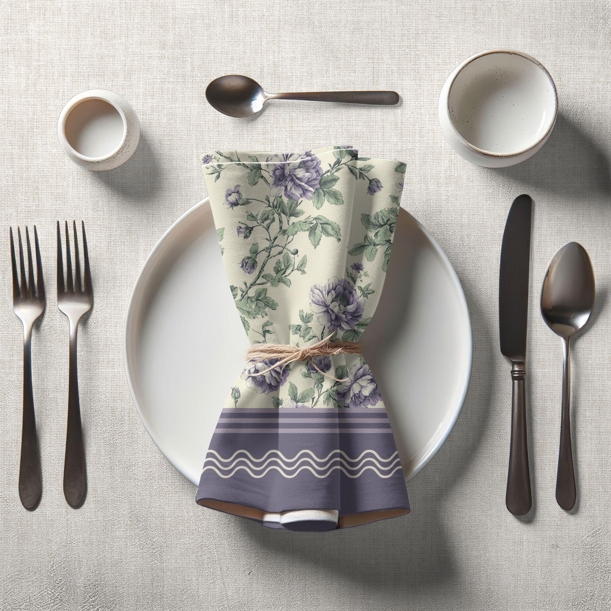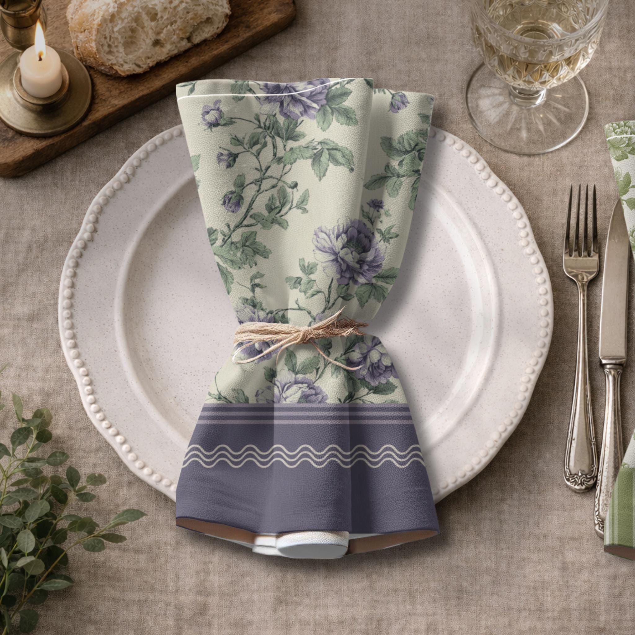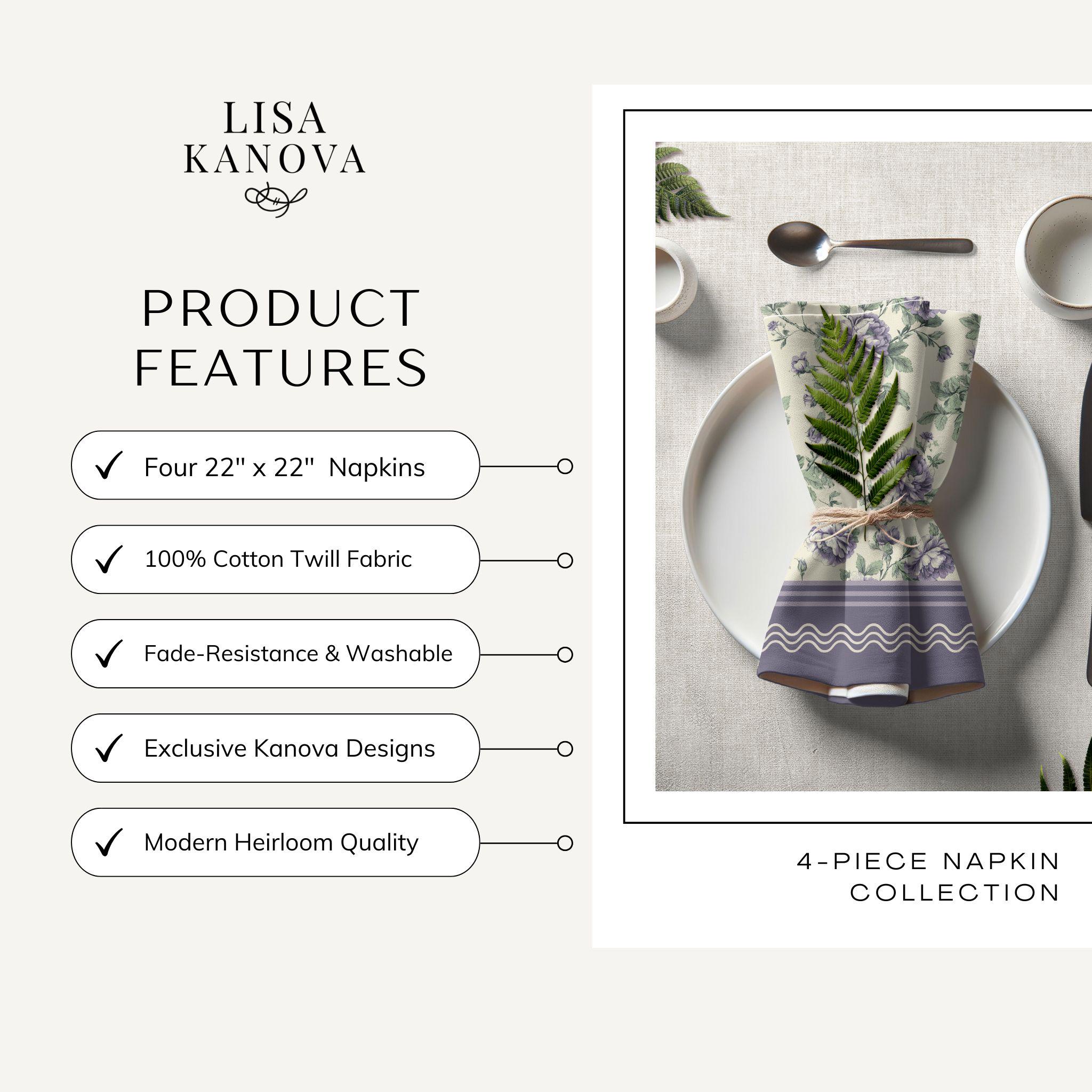 Designer Set of 4 - 100% Cotton Twill 22" x 22" Modern Heirloom Napkins in Afternoon Garden