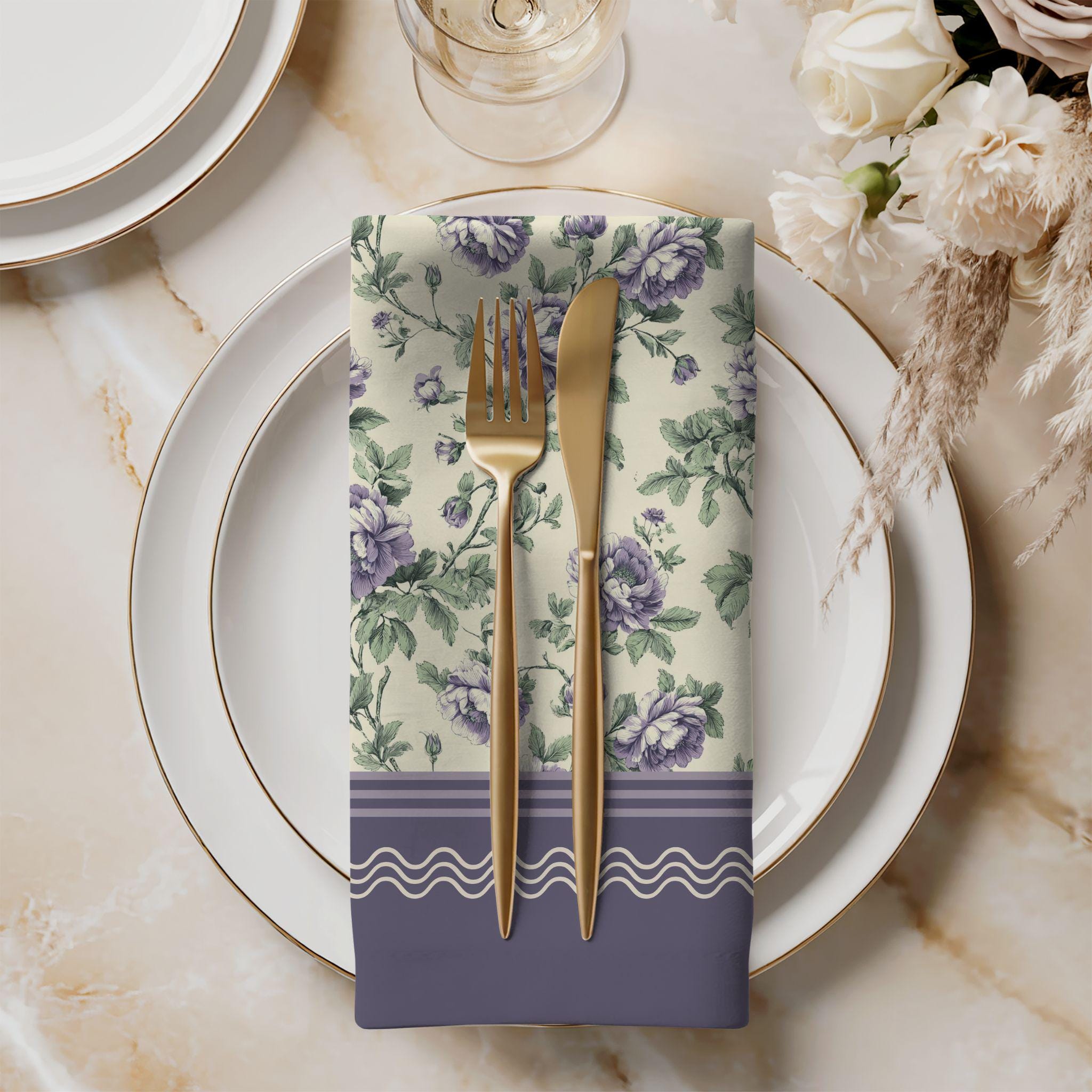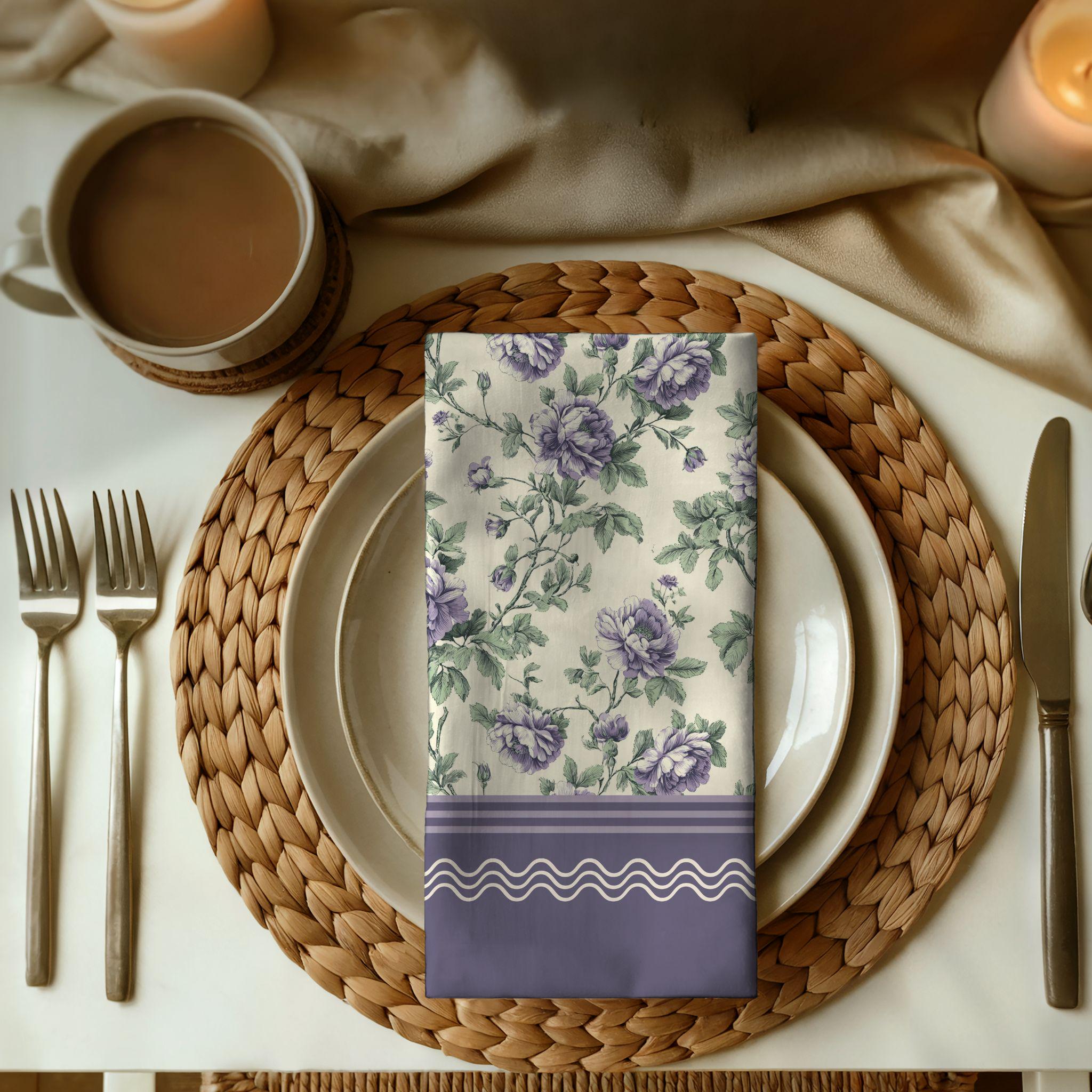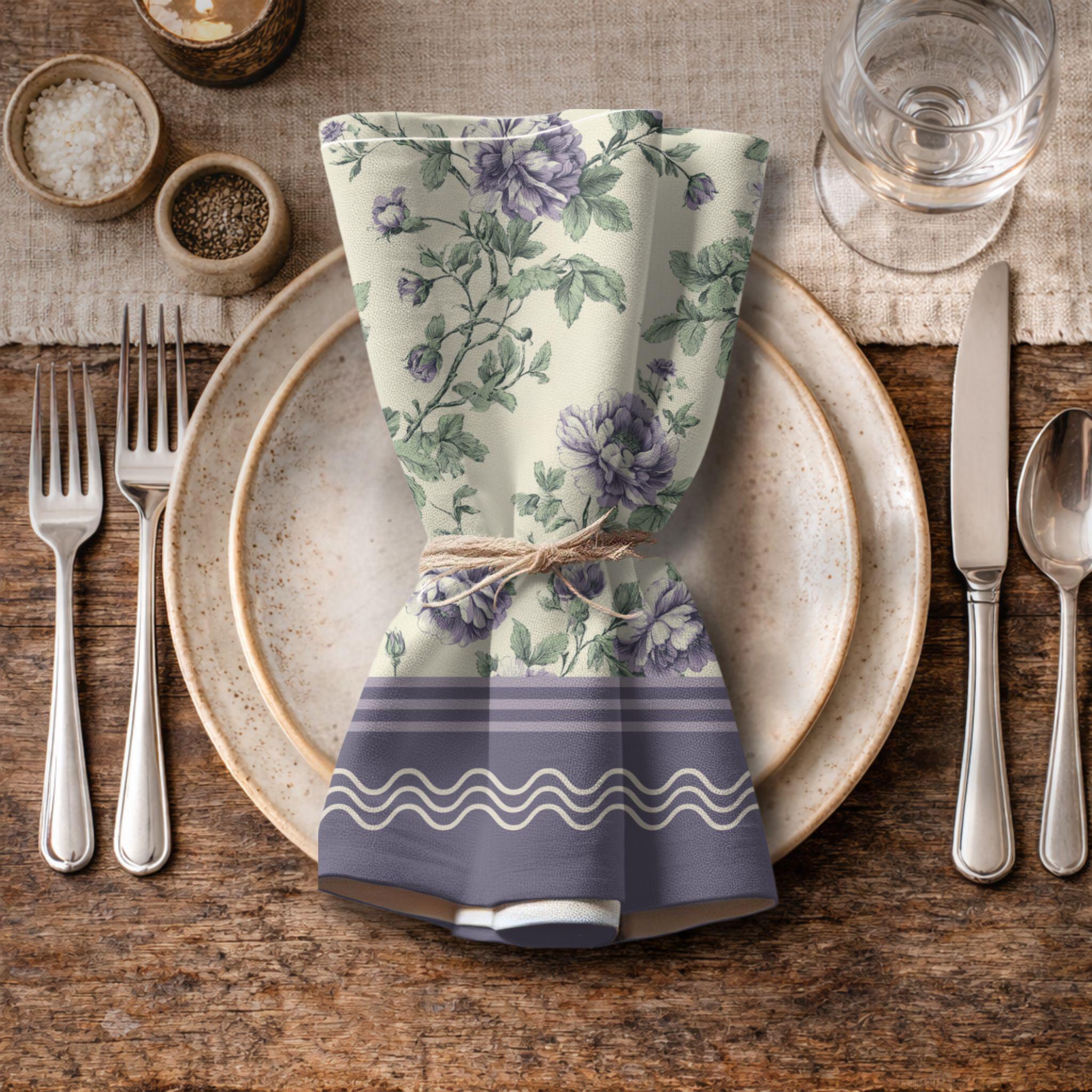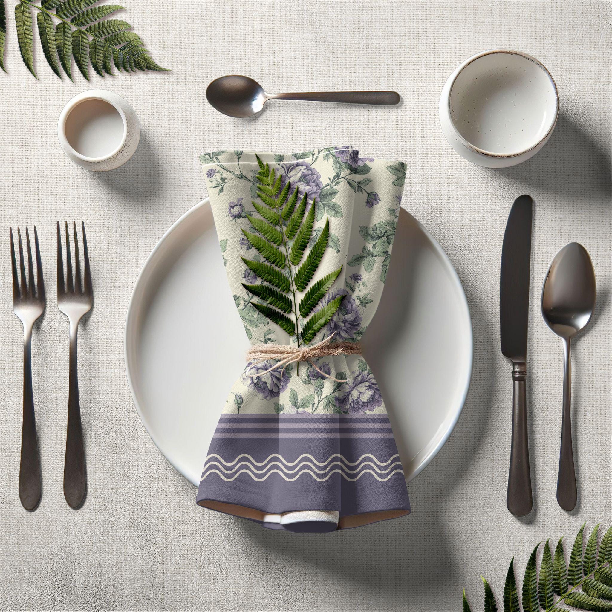Designer Set of 4 - 100% Cotton Twill 22" x 22" Modern Heirloom Napkins in Afternoon Garden