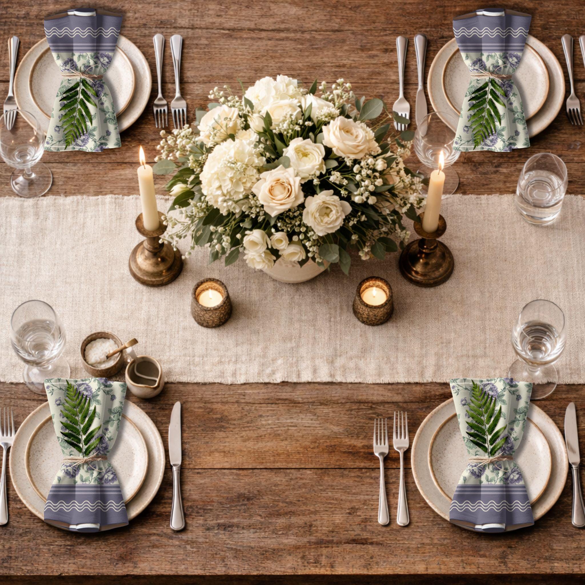 Each set includes four coordinating cloth dinner napkins. For larger tables or gatherings, simply add multiple sets to achieve a complete, elevated look.