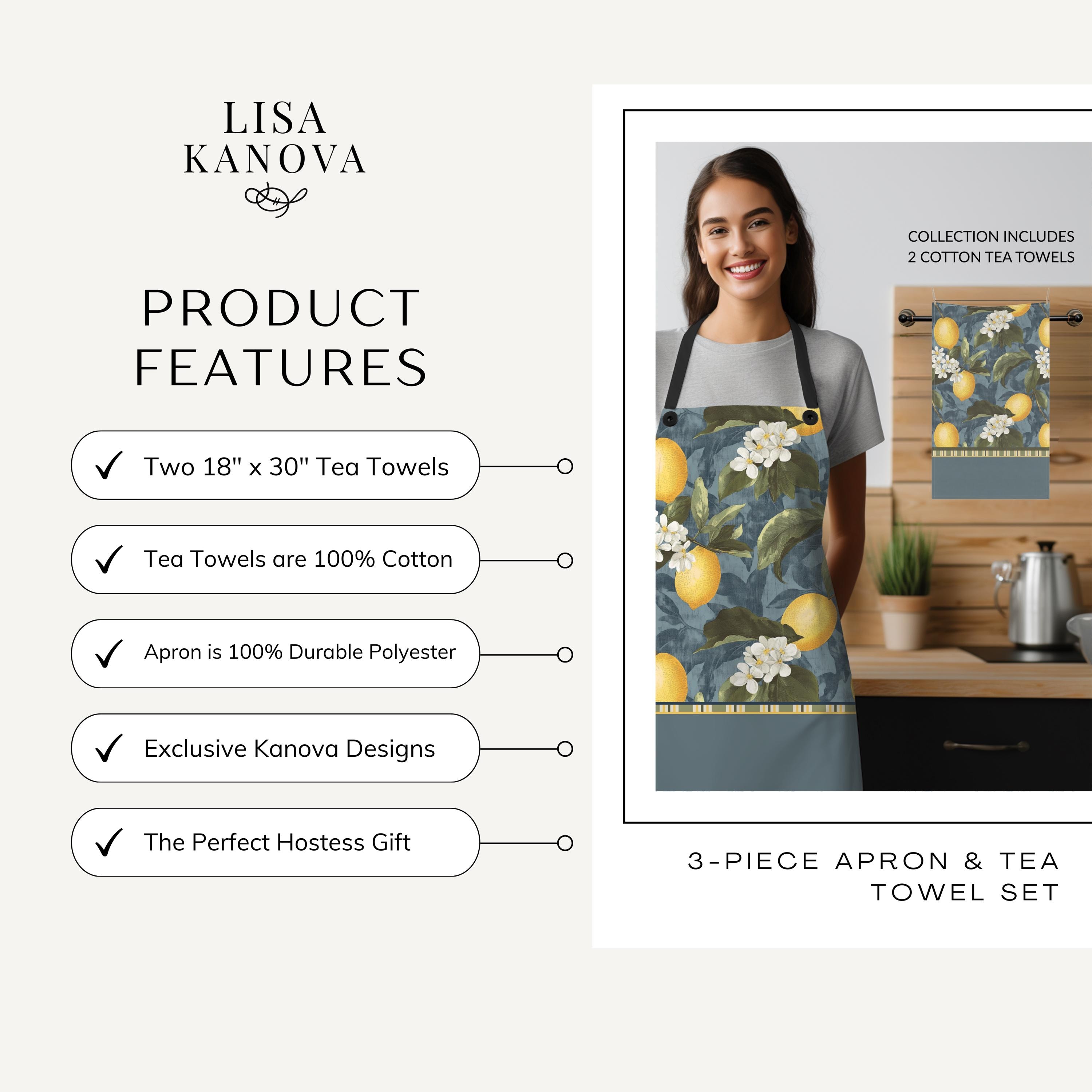 Bring effortless charm to your kitchen with this thoughtfully coordinated apron and tea towel set. Designed to feel both timeless and fresh, this set blends painterly botanicals with a tailored border detail for a look that’s equal parts functional and beautiful. Whether you’re cooking, baking, or hosting, it adds a quiet layer of luxury to everyday moments.