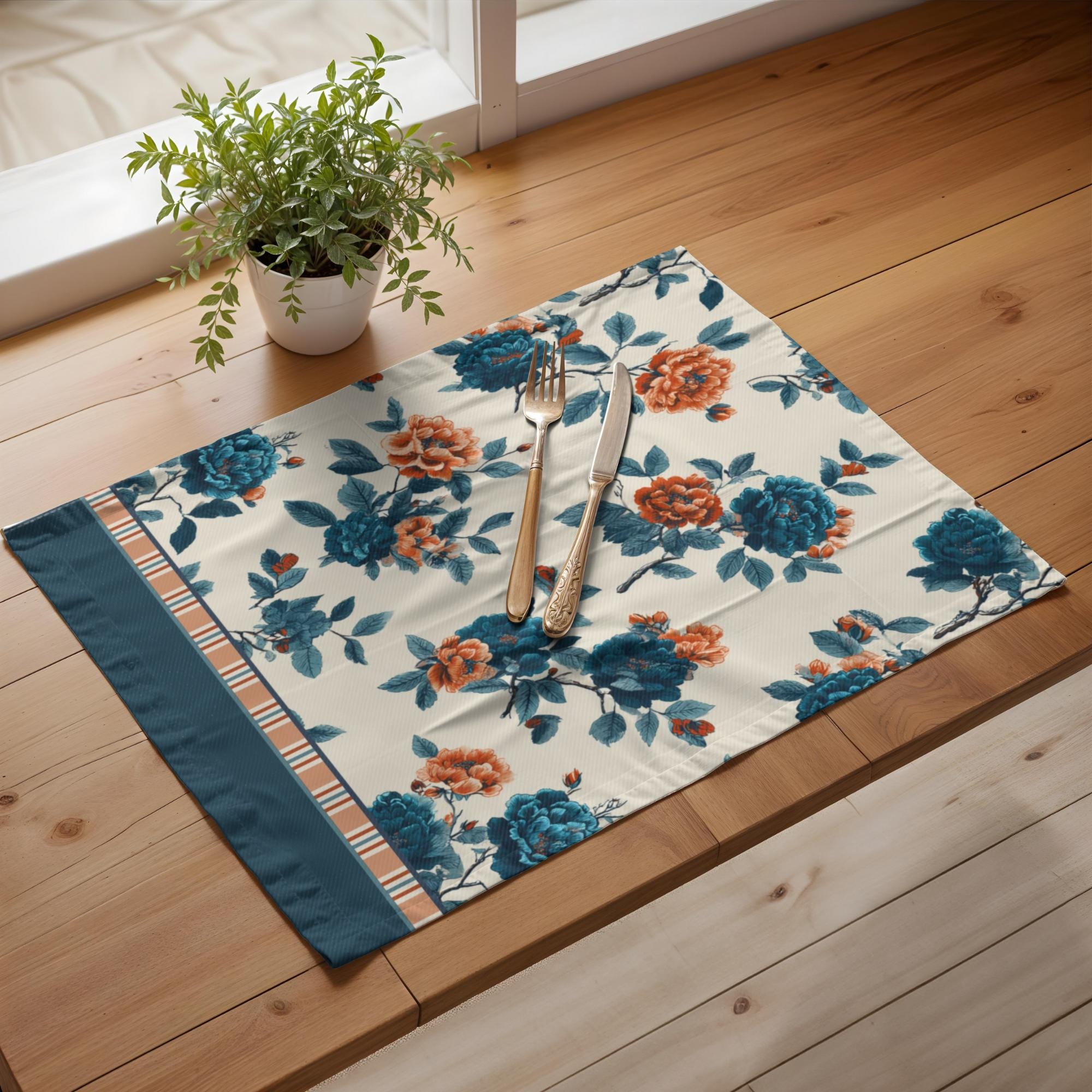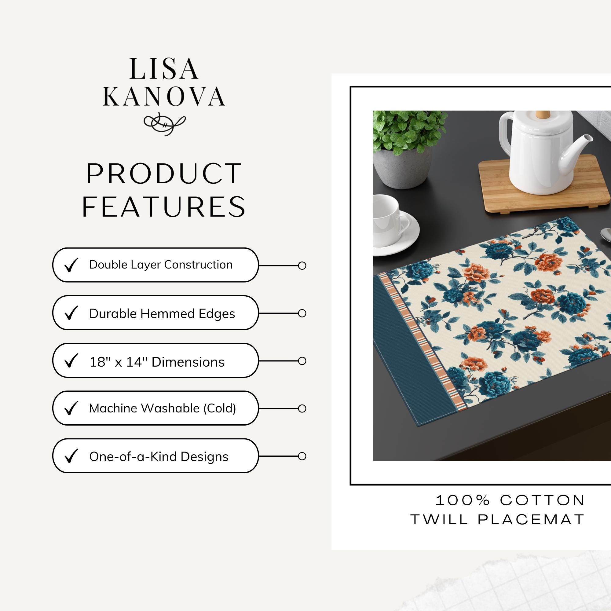 Exclusive Designer Pattern Placemat | 100% Cotton Twill in Evening Garden