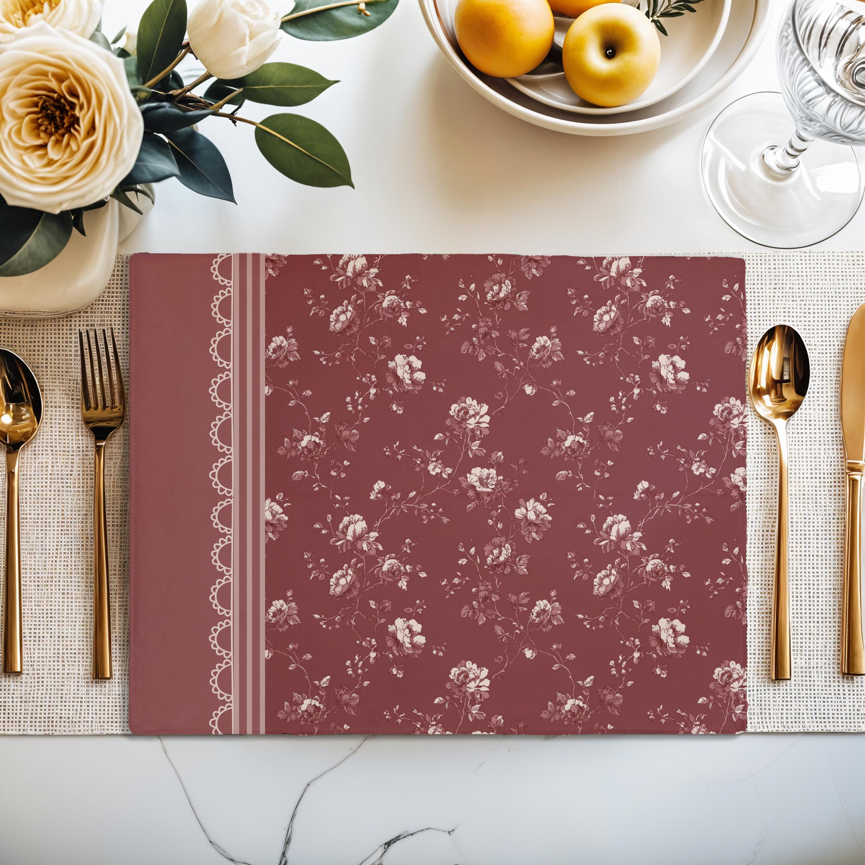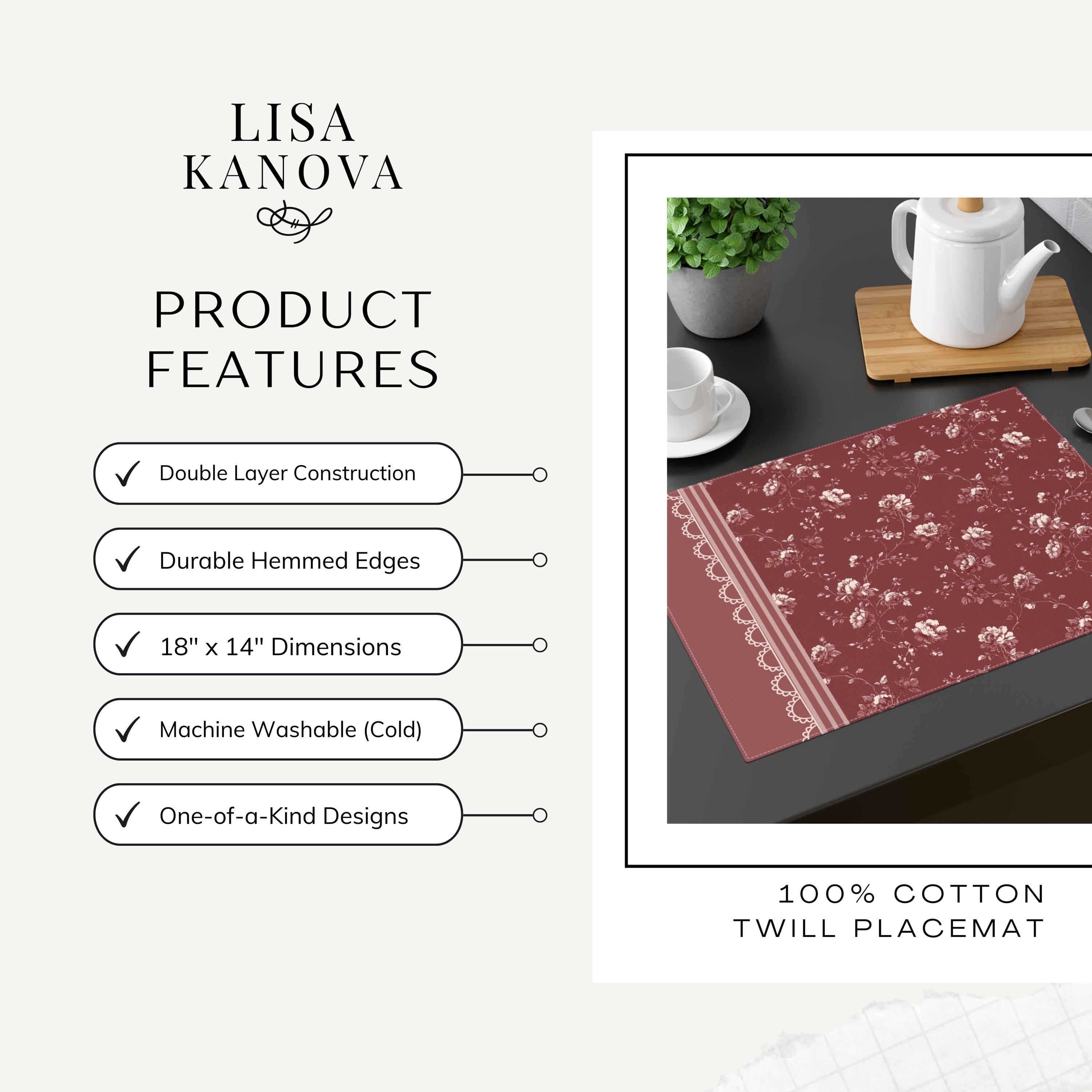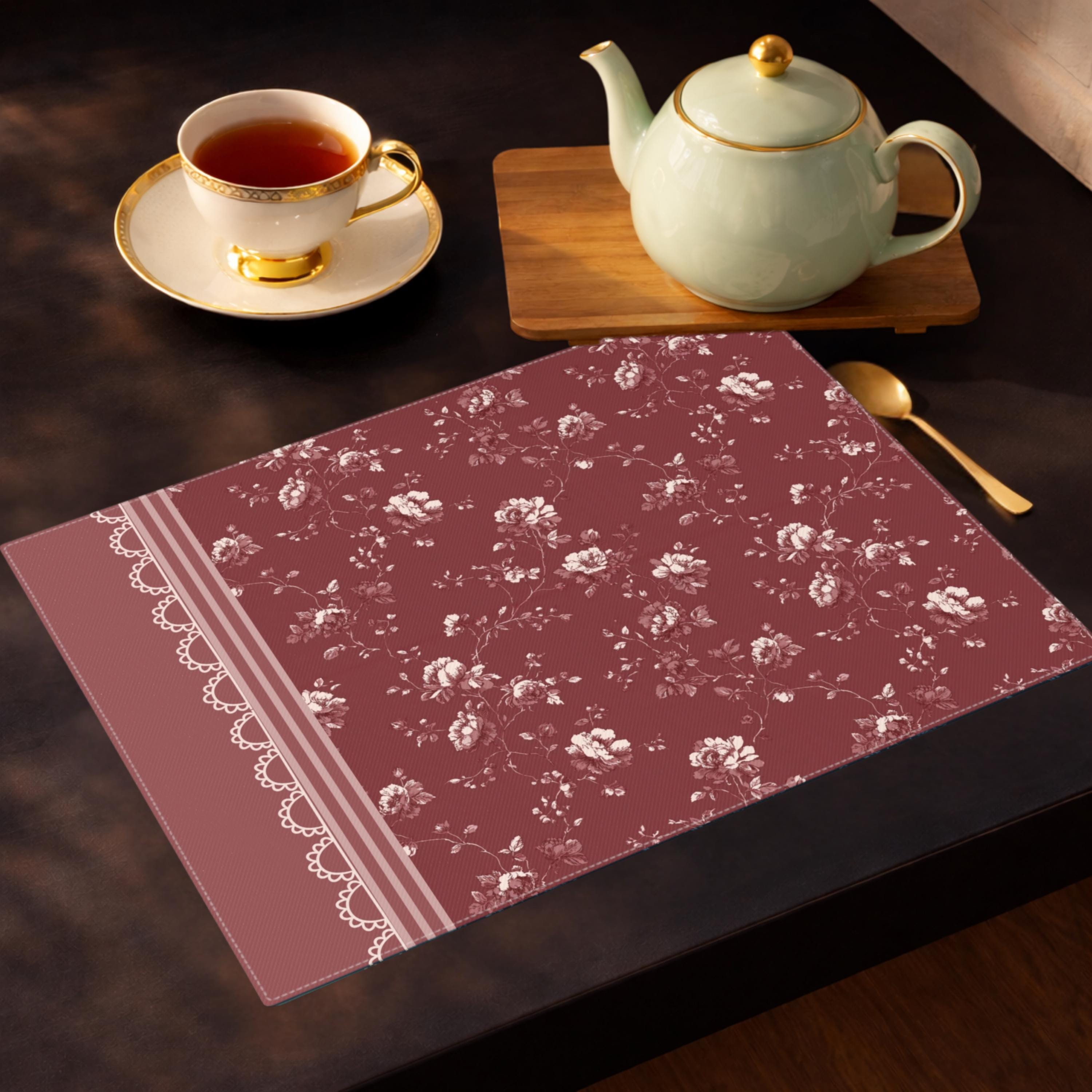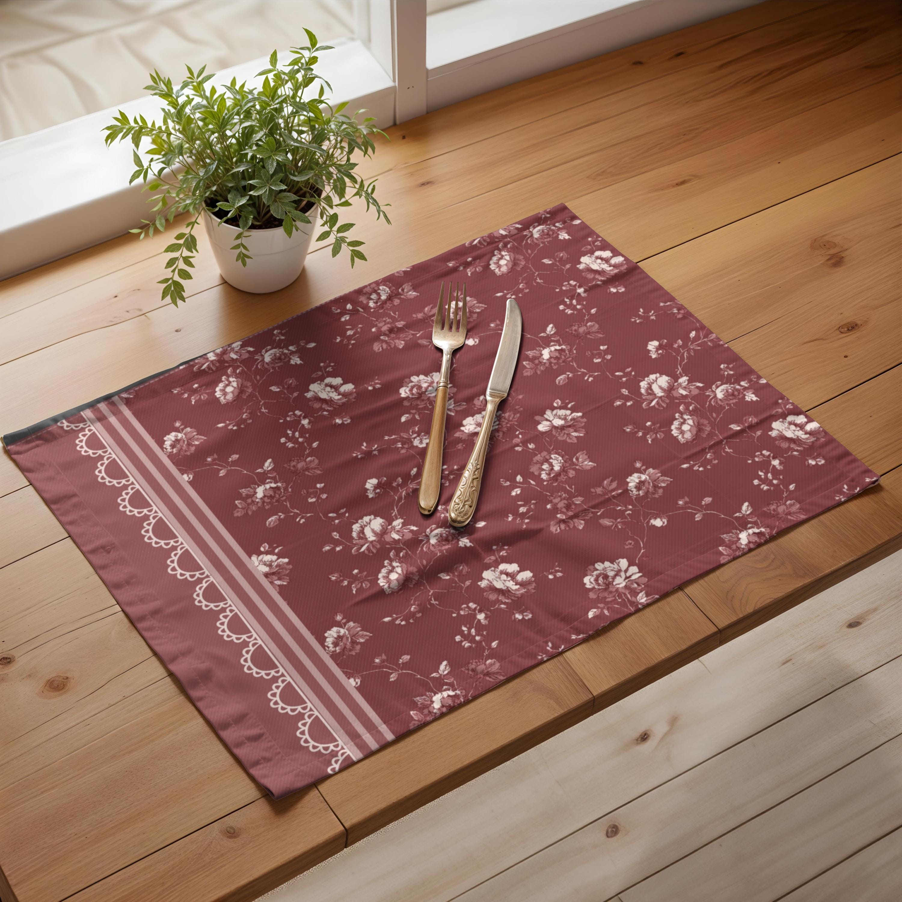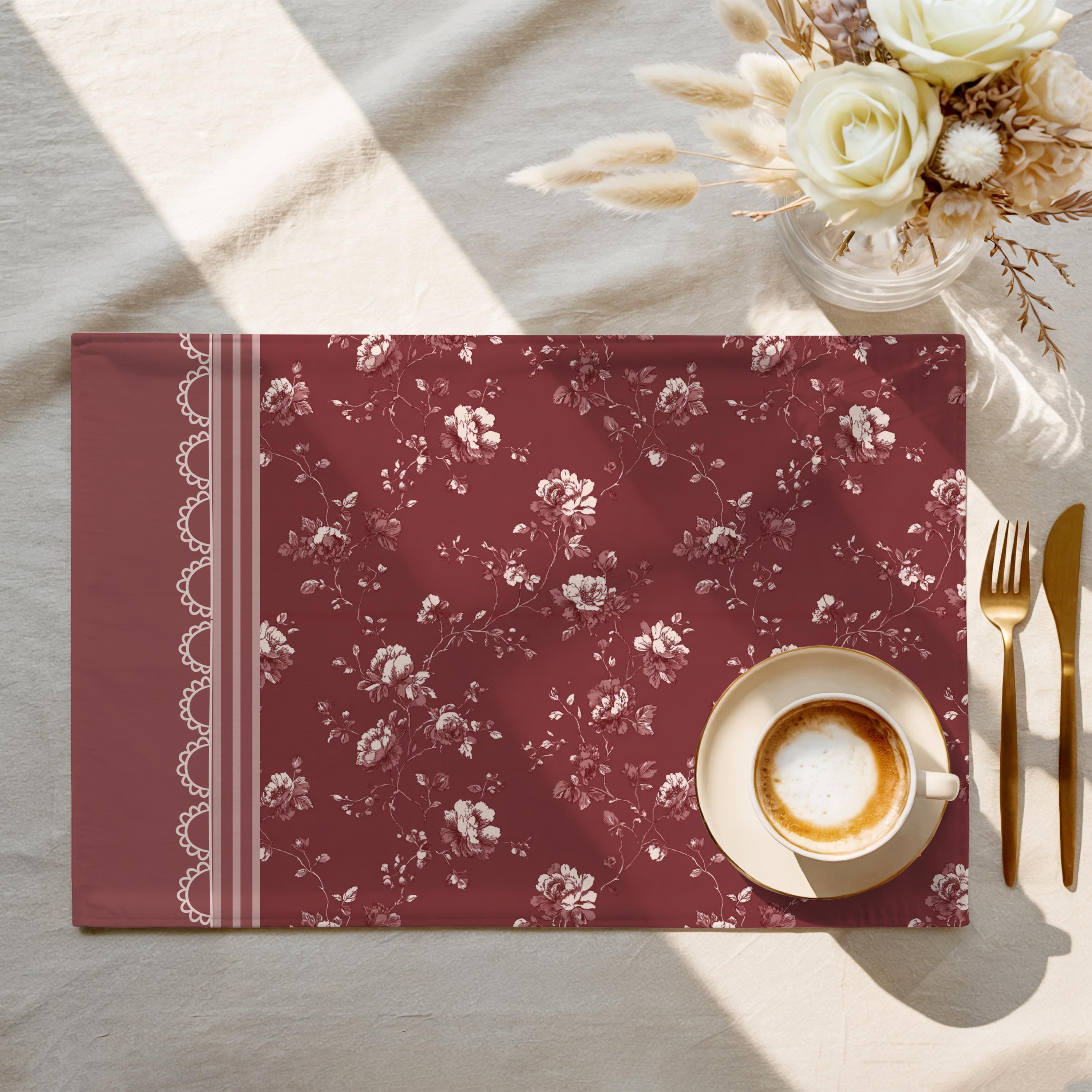 Exclusive Designer Pattern Placemat | 100% Cotton Twill in Courtyard Merlot Garden