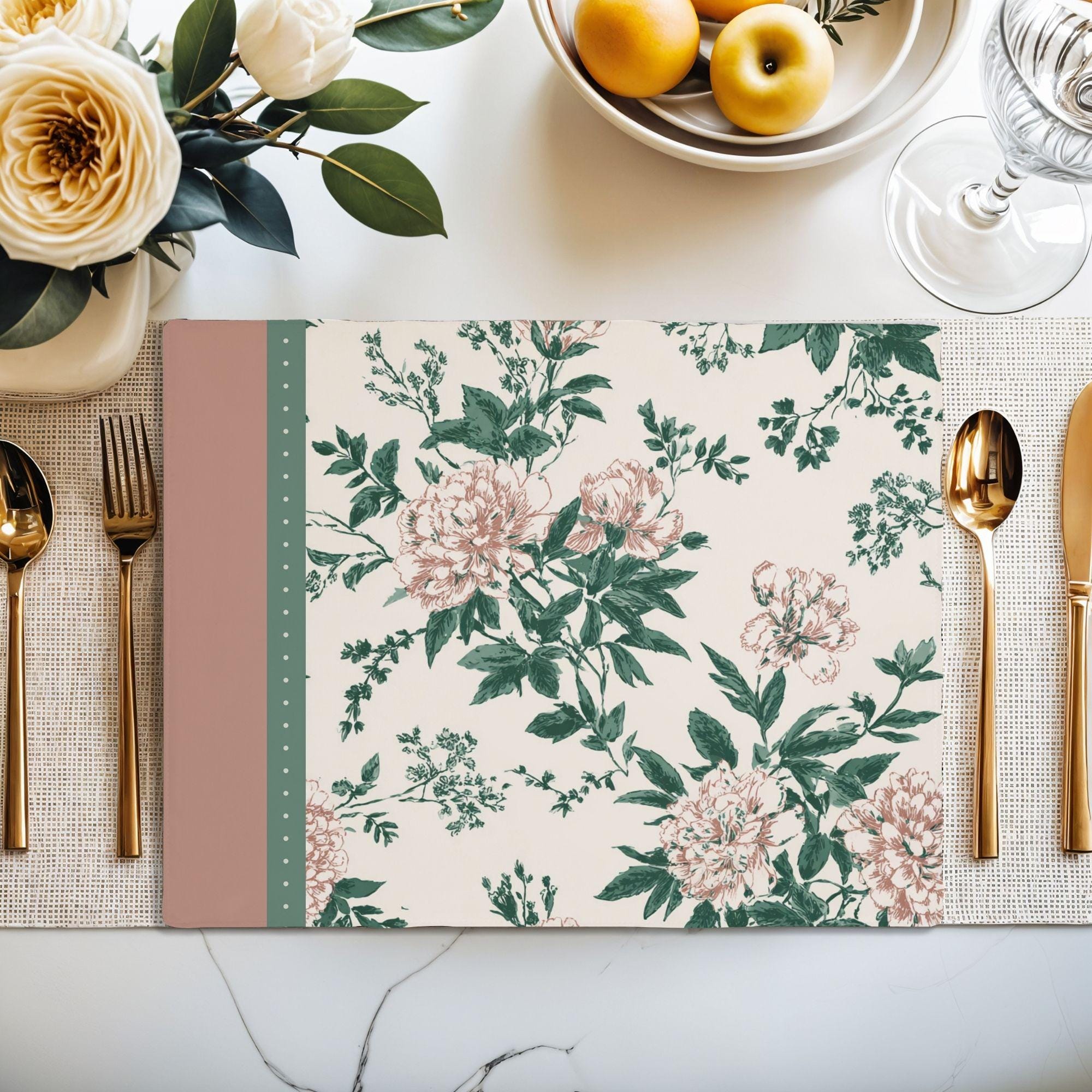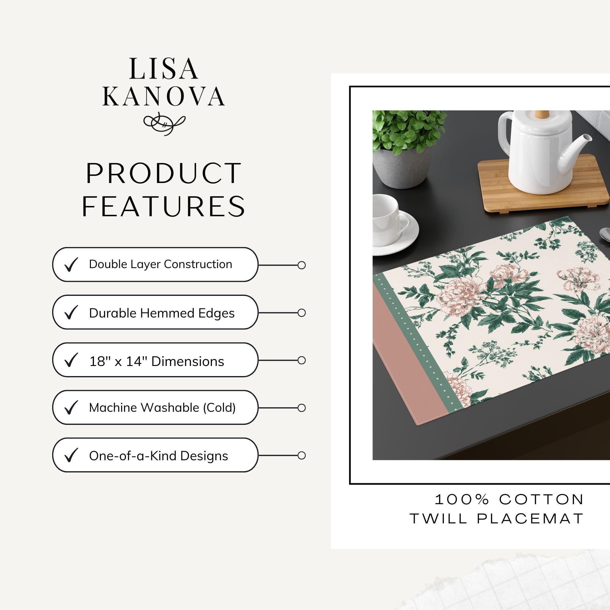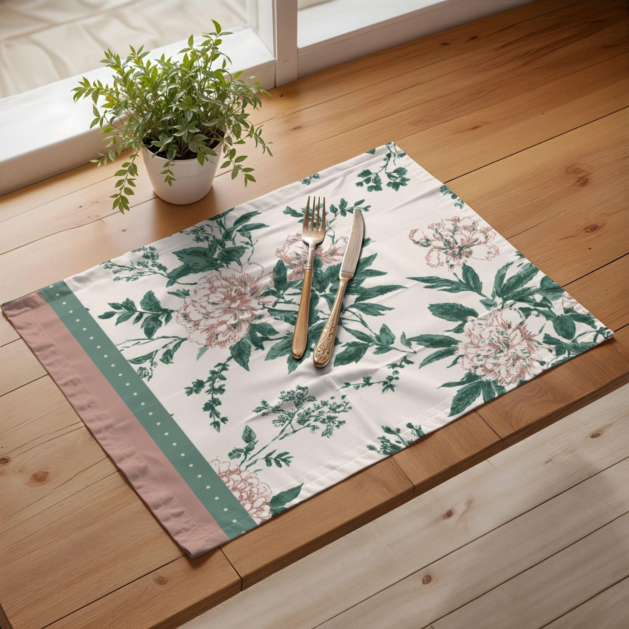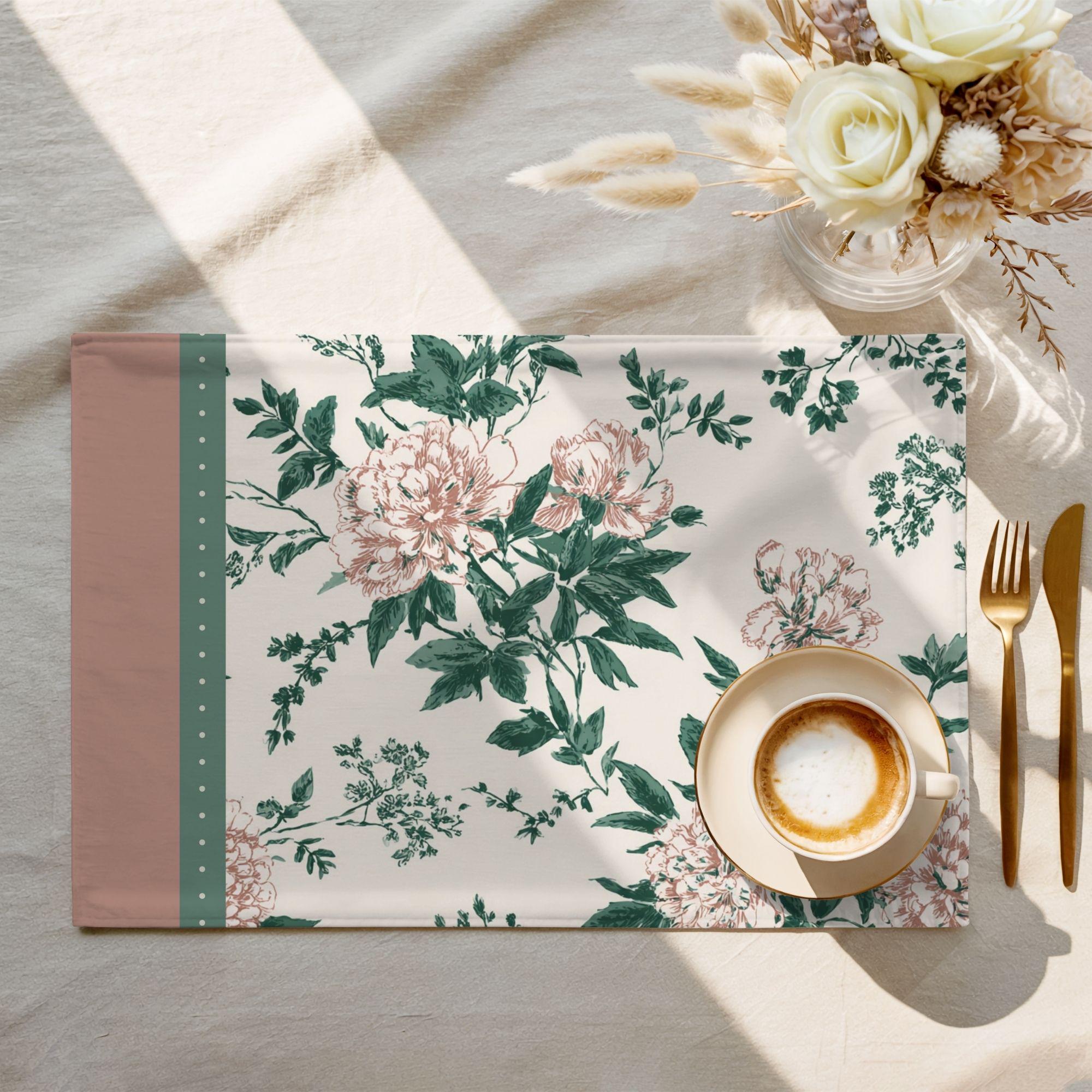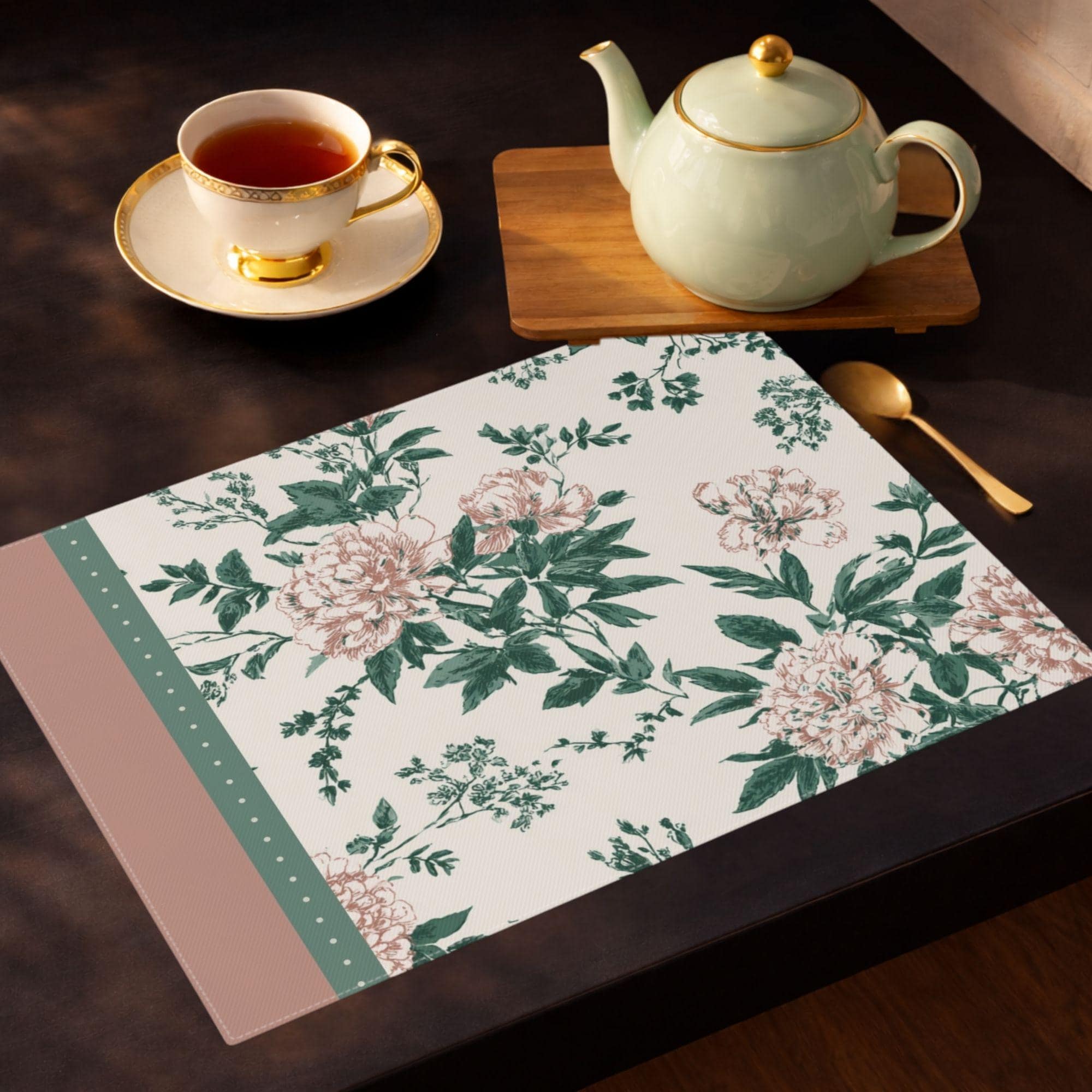 Exclusive Designer Pattern Placemat | 100% Cotton Twill in Dotted Blush Garden