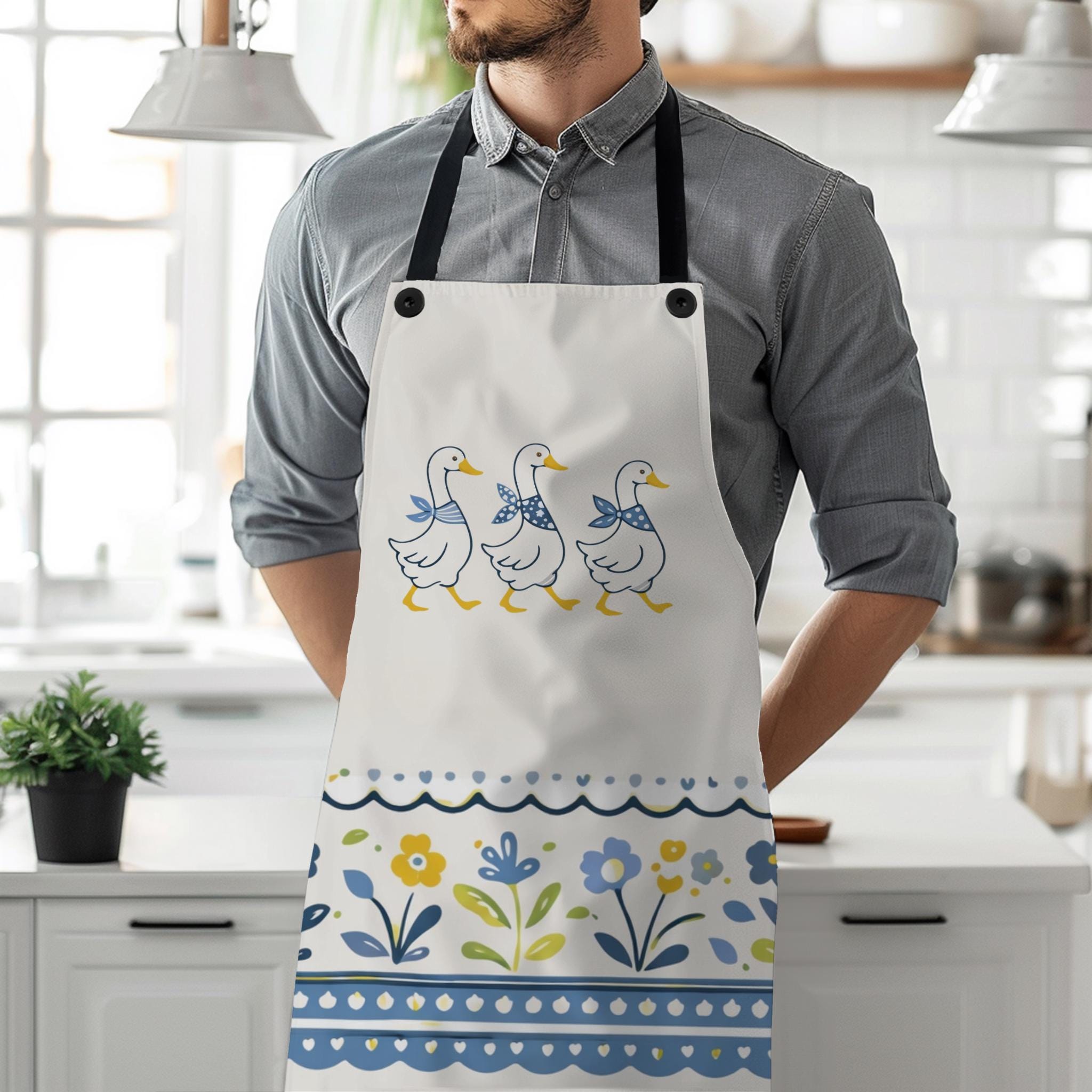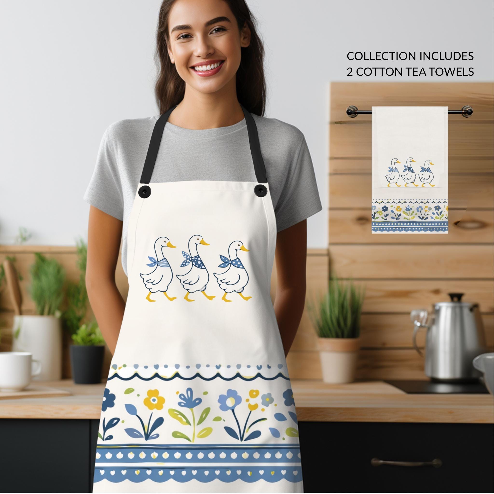 Bring effortless charm to your kitchen with this thoughtfully coordinated apron and tea towel set. Designed to feel both timeless and fresh, this set blends stylish geese with a tailored border detail for a look that’s equal parts functional and beautiful. Whether you’re cooking, baking, or hosting, it adds a quiet layer of luxury to everyday moments.
