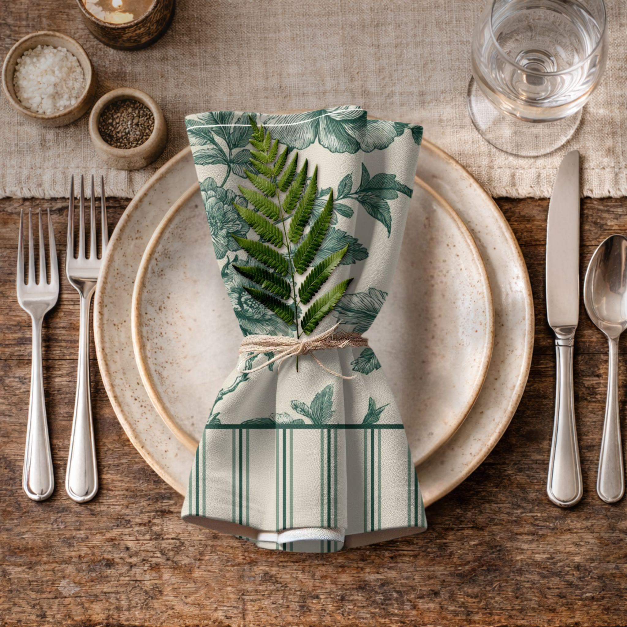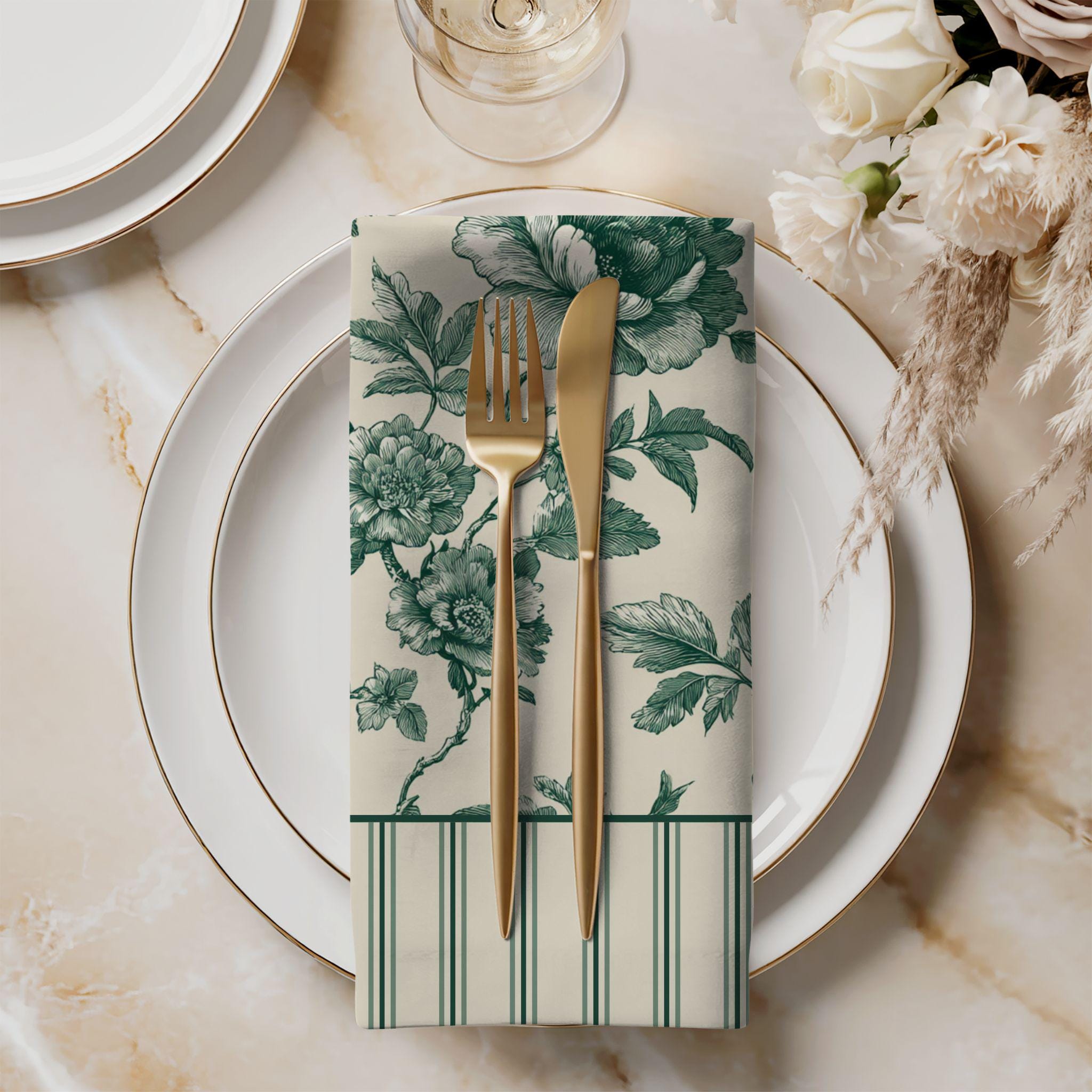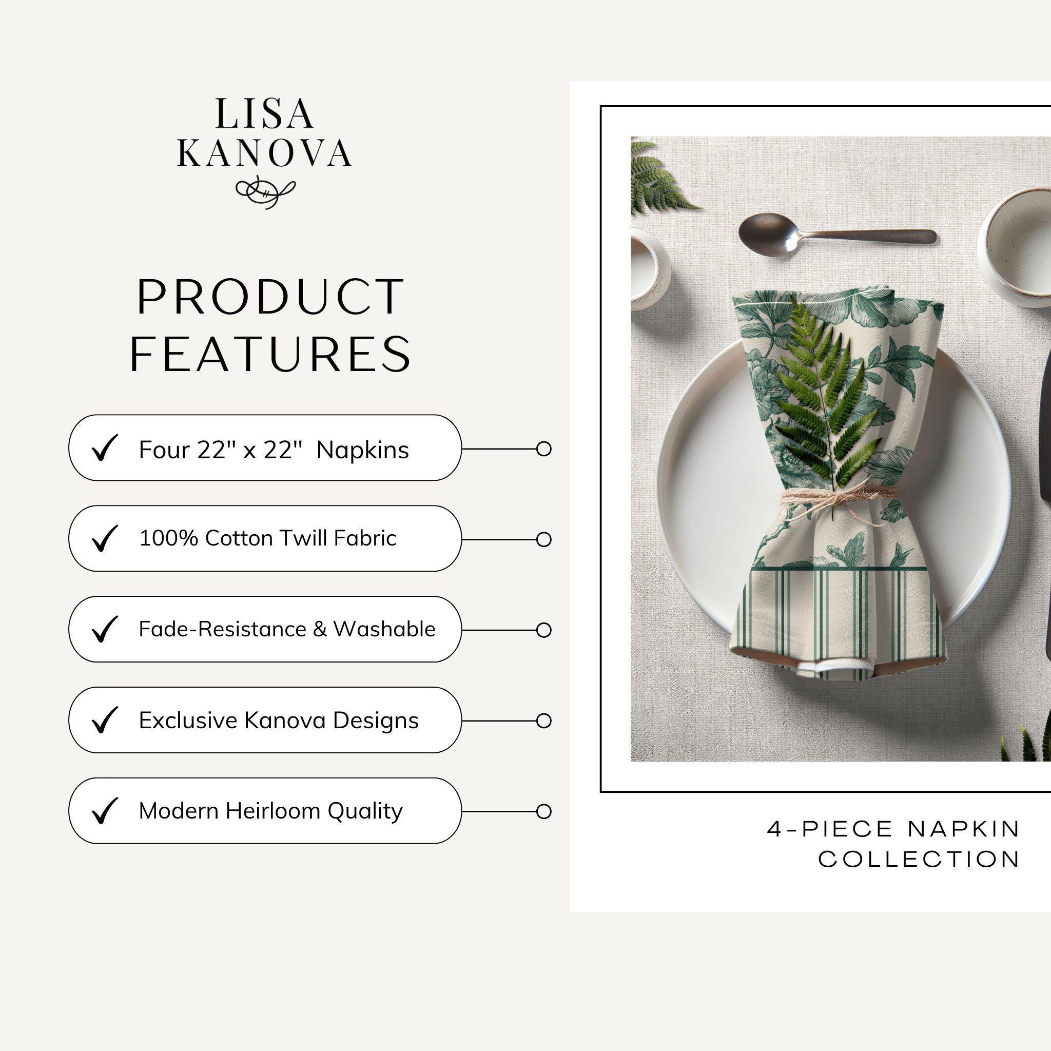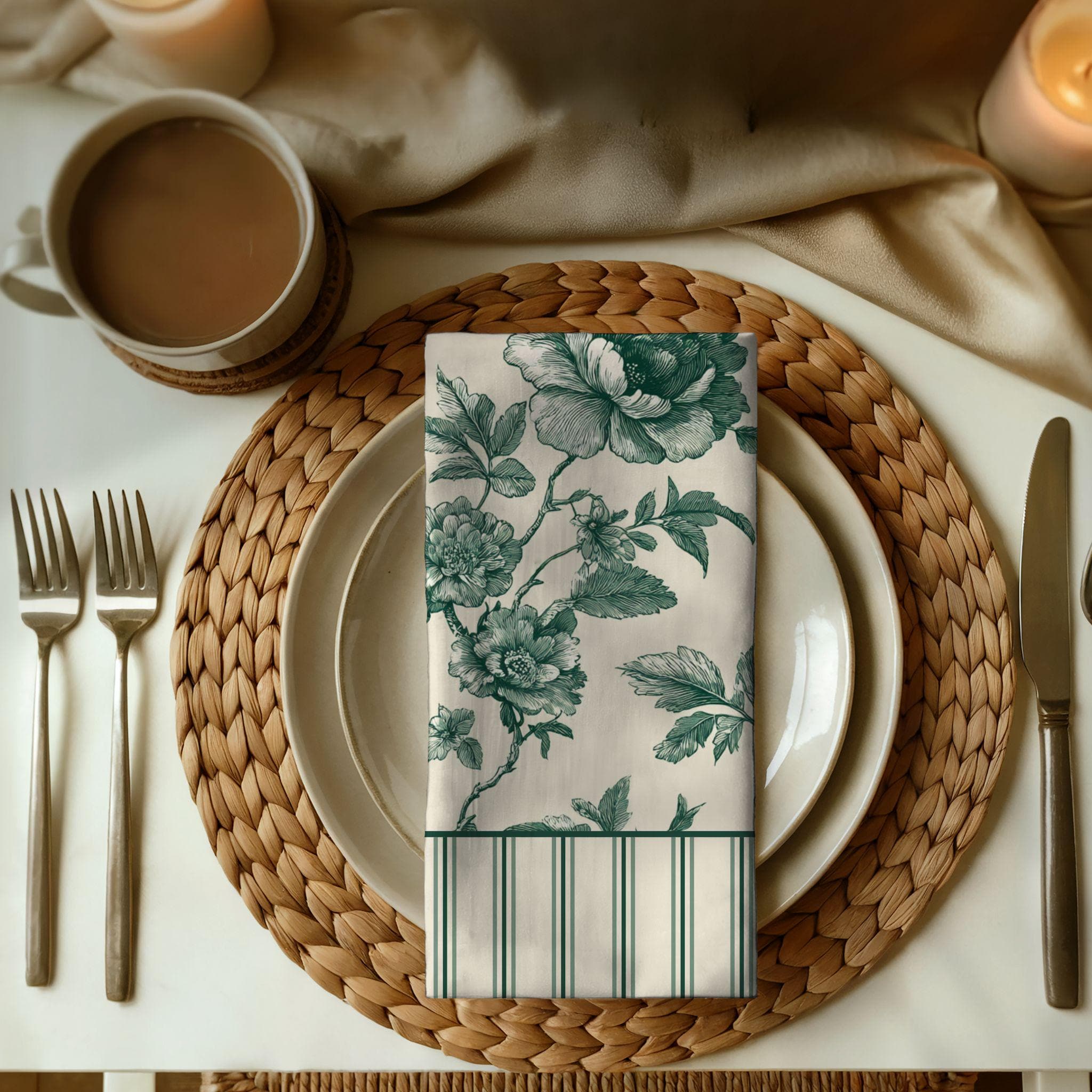 Designed to bring a sense of quiet luxury to the table, these Lisa Kanova dining napkins balance timeless pattern with modern restraint. A classic floral is paired with a refined striped border, creating a composition that feels intentional, collected, and effortlessly elegant.