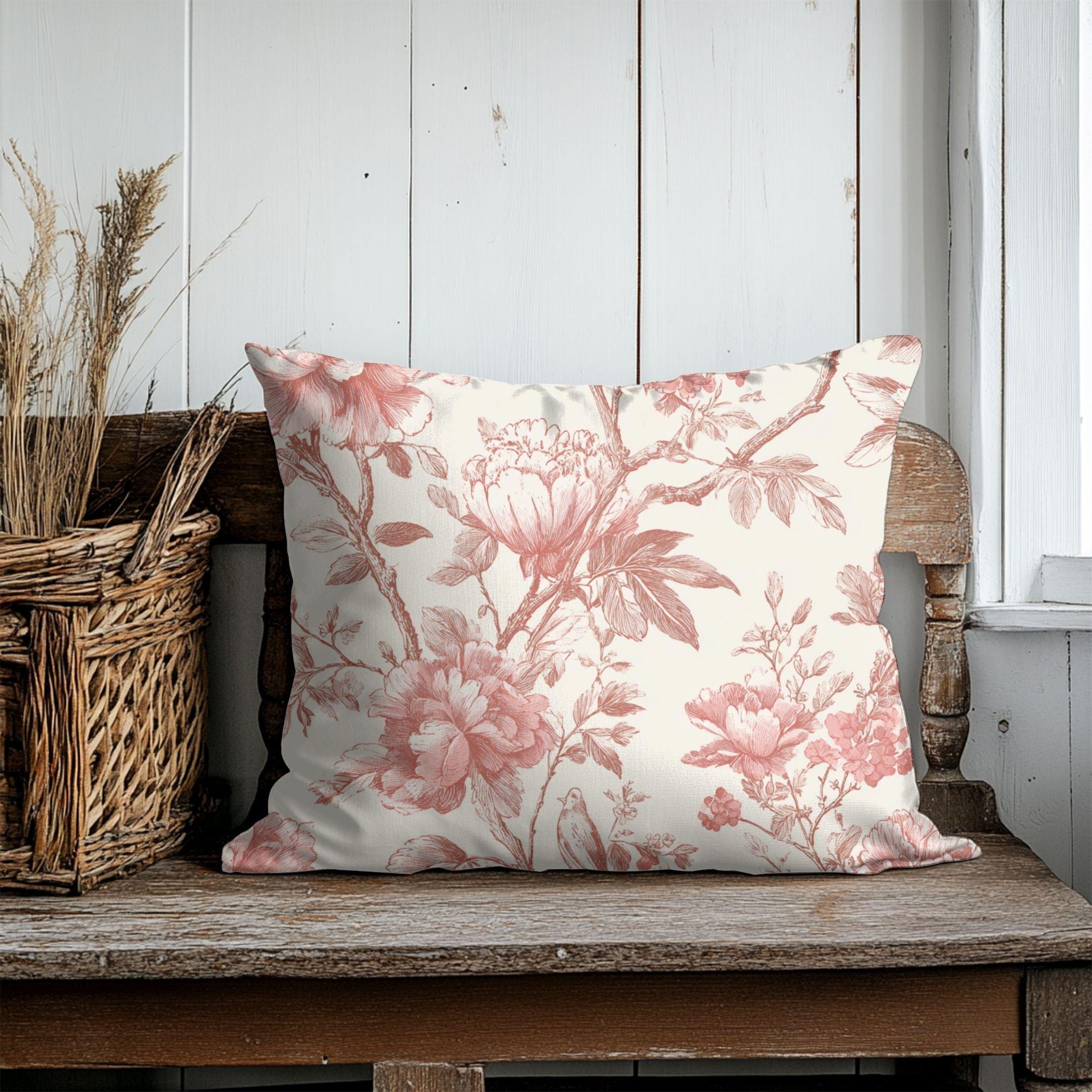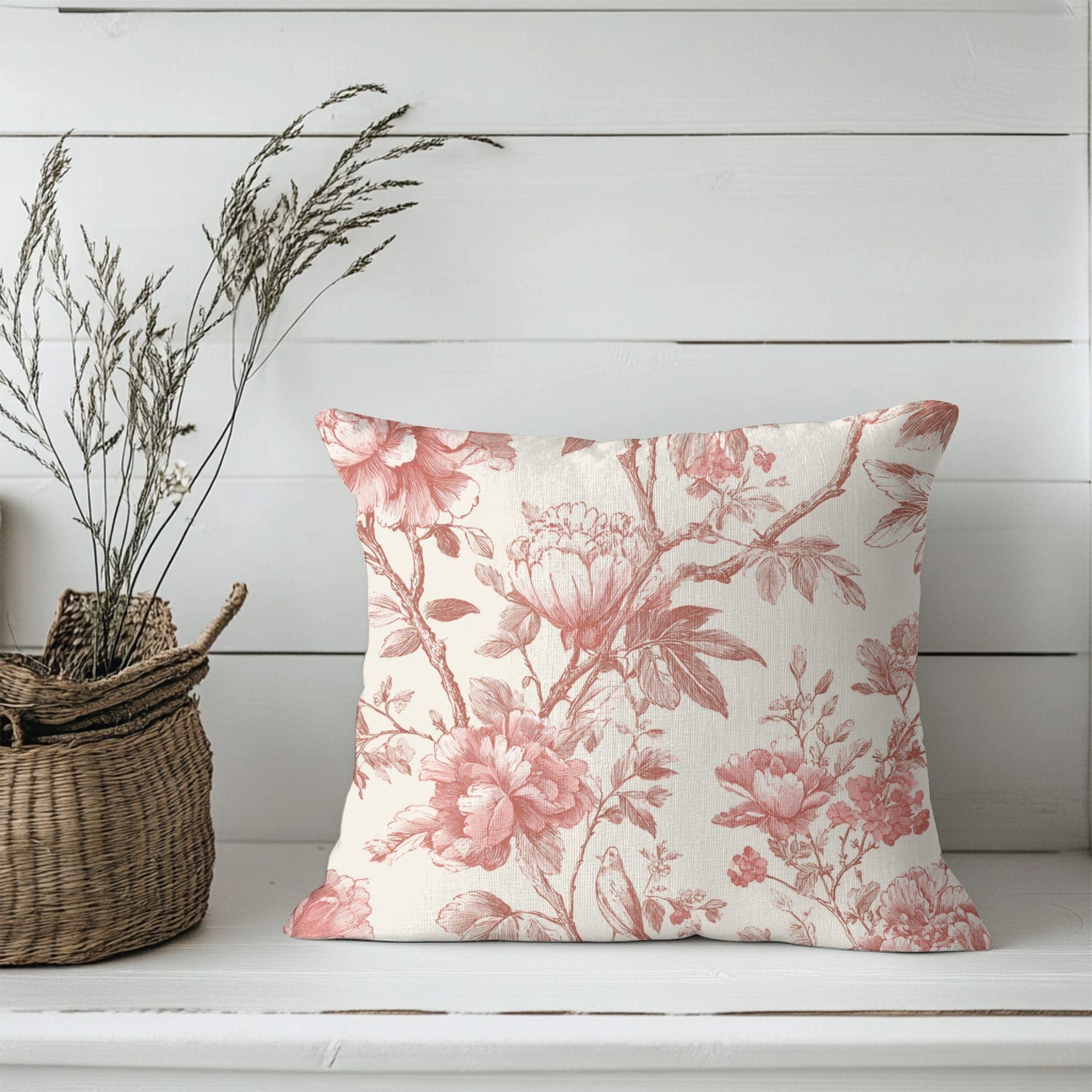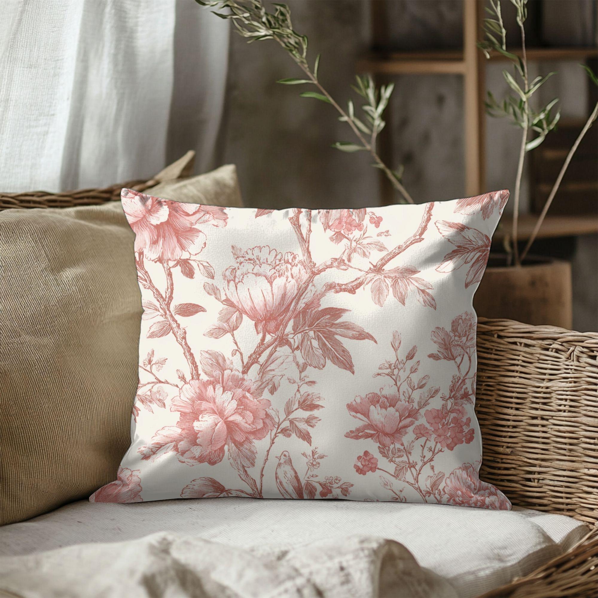 Soft, vintage-inspired floral blooms printed in warm rose tones on a creamy background — this square pillowcase adds quiet romance to a sofa, reading nook, or bed. The spun polyester fabric holds the detailed double-sided print with gentle texture and little fuss: it stays smooth, resists wrinkles, and keeps its shape through everyday use. A concealed beige zipper with a metal pull keeps the look seamless while letting you slip a cushion in and out easily. It pairs particularly well with neutral linens and muted decor, bringing a calm, lived-in charm to slow mornings and evening unwind moments.