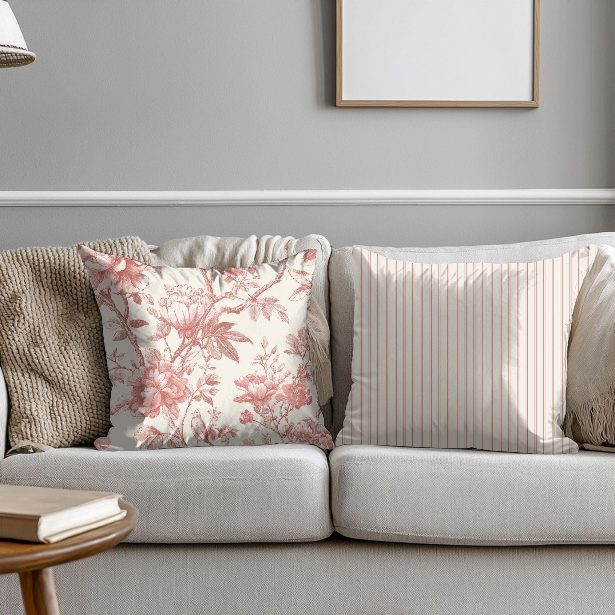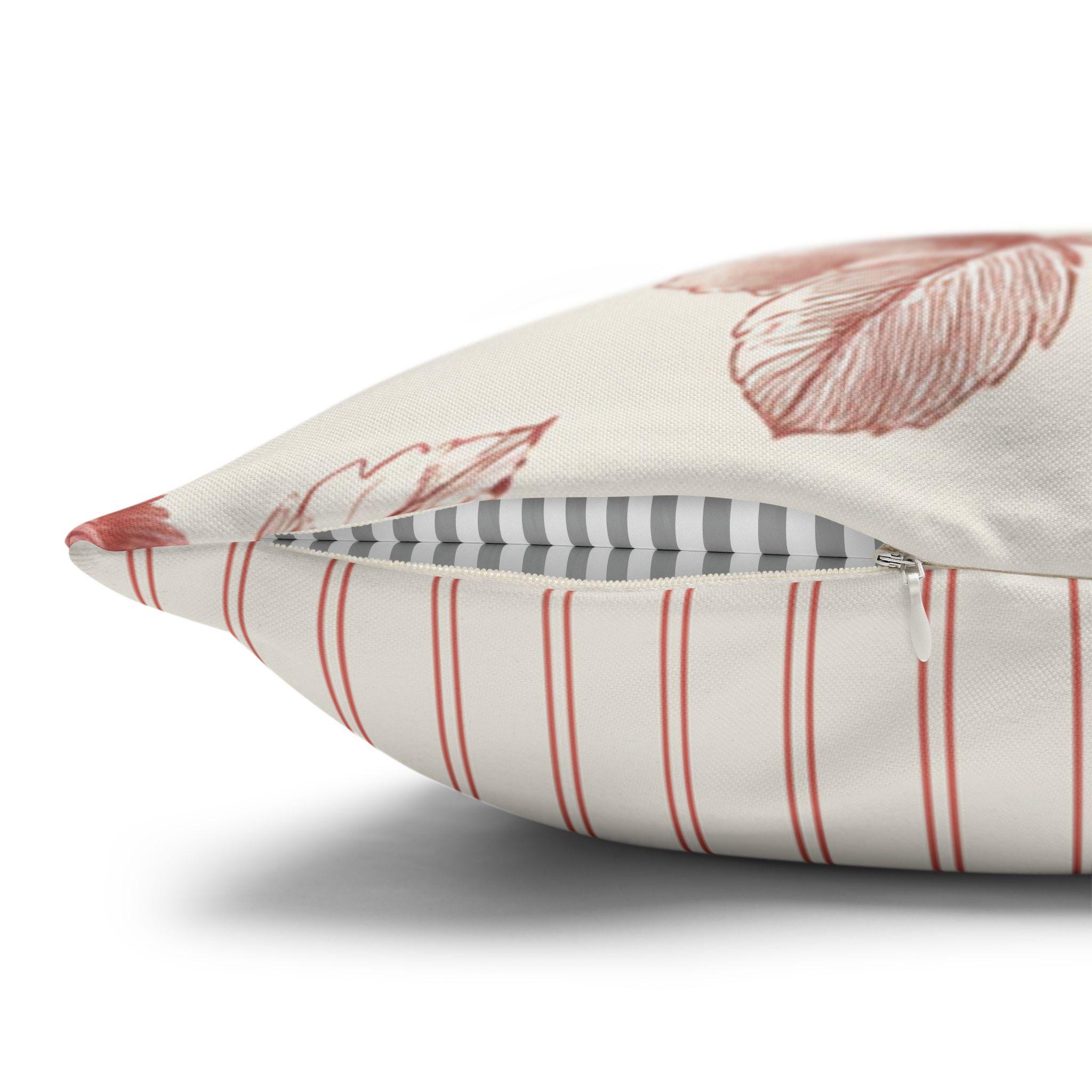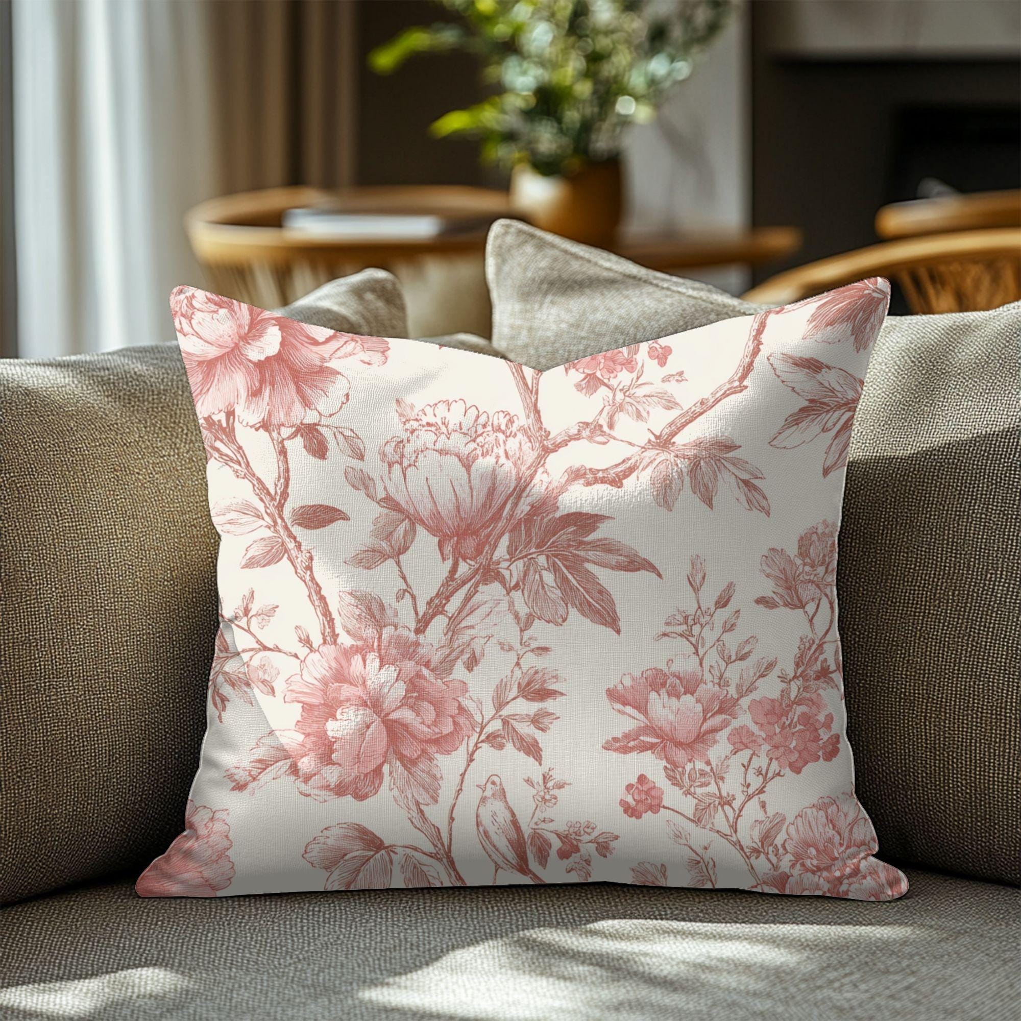 Soft, vintage-inspired floral blooms printed in warm rose tones on a creamy background — this square pillowcase adds quiet romance to a sofa, reading nook, or bed. The spun polyester fabric holds the detailed double-sided print with gentle texture and little fuss: it stays smooth, resists wrinkles, and keeps its shape through everyday use. A concealed beige zipper with a metal pull keeps the look seamless while letting you slip a cushion in and out easily. It pairs particularly well with neutral linens and muted decor, bringing a calm, lived-in charm to slow mornings and evening unwind moments.