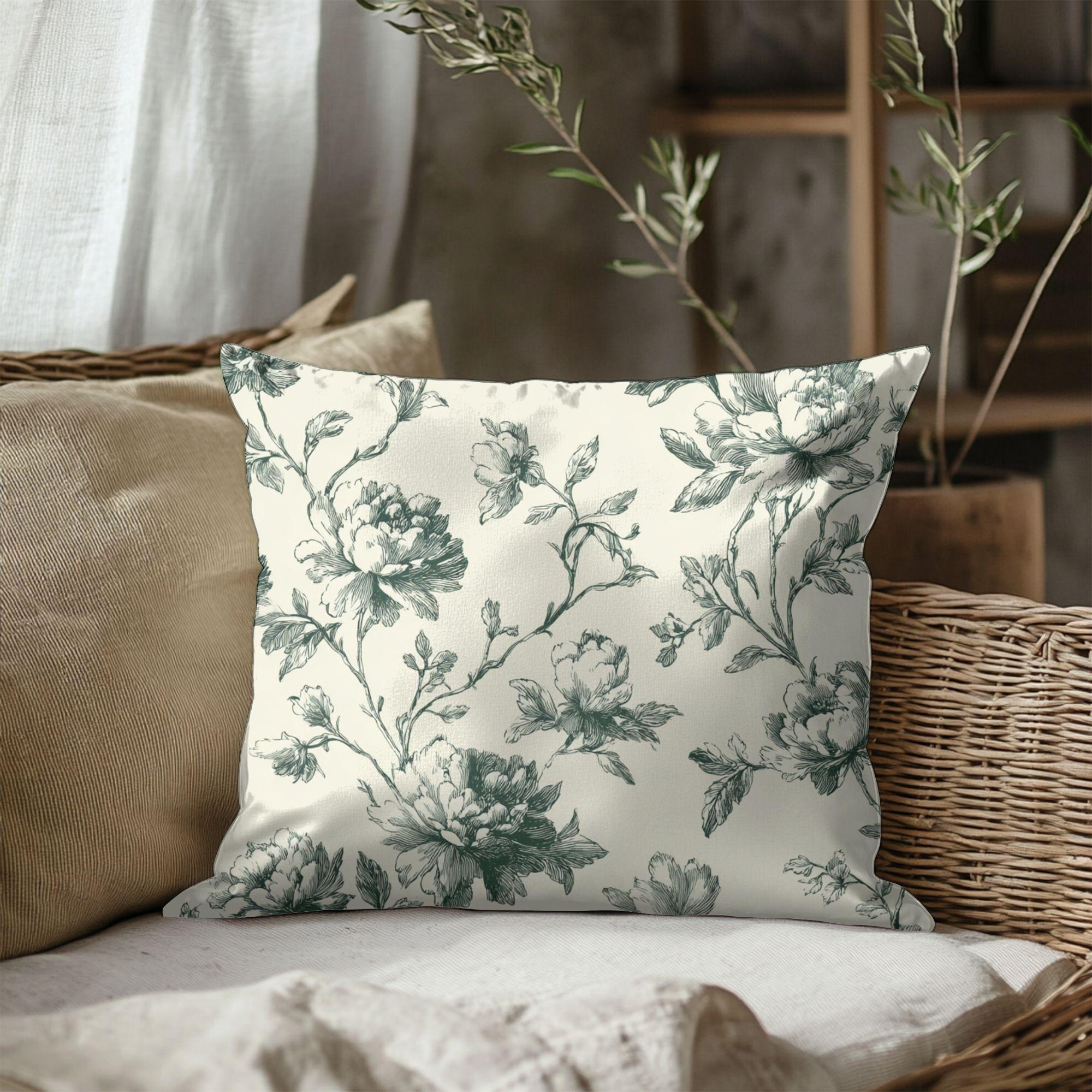 Soft, vintage-inspired floral blooms printed in gorgeous tones on a creamy background — this square pillowcase adds quiet romance to a sofa, reading nook, or bed. The spun polyester fabric holds the detailed double-sided print with gentle texture and little fuss: it stays smooth, resists wrinkles, and keeps its shape through everyday use. A concealed beige zipper with a metal pull keeps the look seamless while letting you slip a cushion in and out easily. It pairs particularly well with neutral linens and muted decor, bringing a calm, lived-in charm to slow mornings and evening unwind moments.