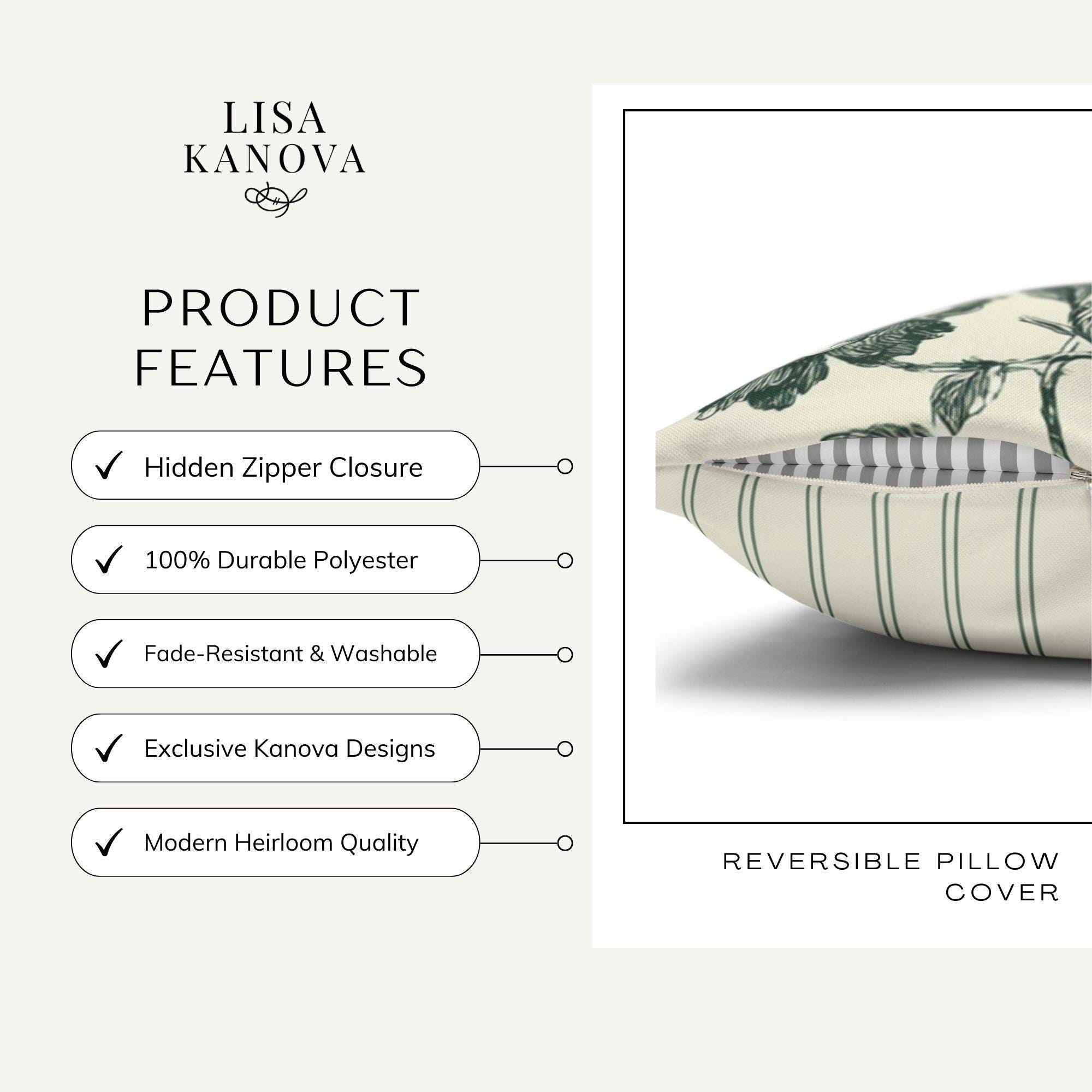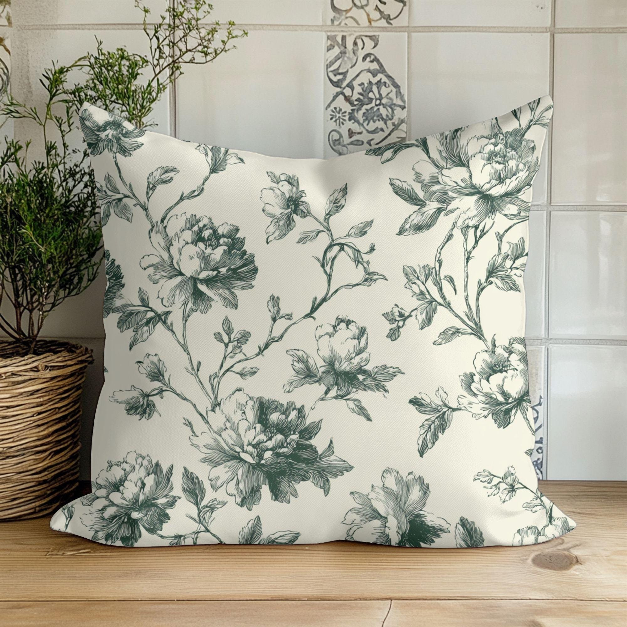 Designer Reversible Vintage Floral Toile Pillow Cover in Proper Sage Green