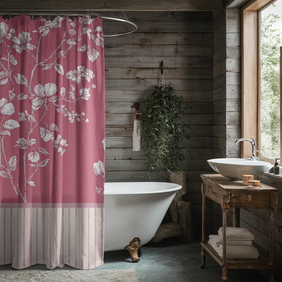 Romantic Rebellion is a modern take on traditional floral toile — designed for those who love beauty, but refuse predictability. Delicate white linework blooms across an unexpected rose ground, softened by tailored stripes that bring structure and restraint. The result is a collection that feels both timeless and quietly daring.