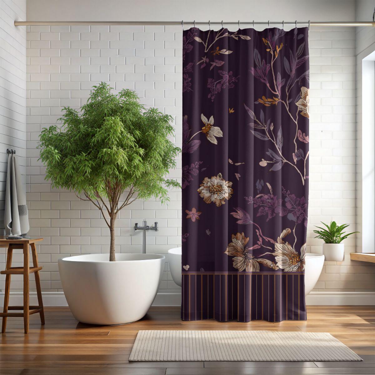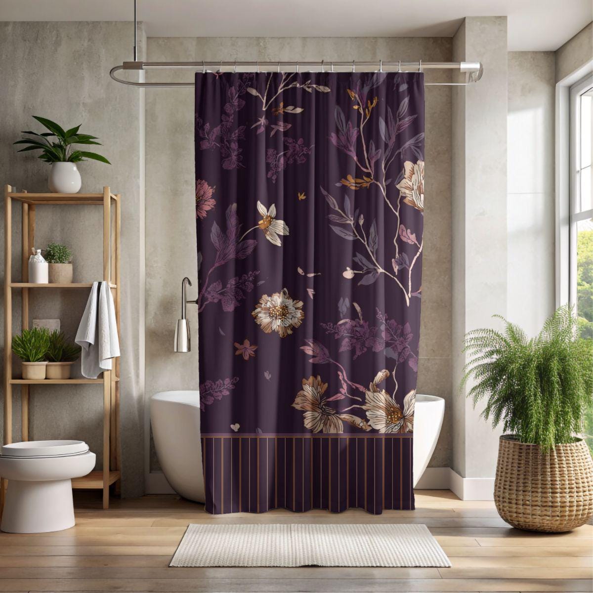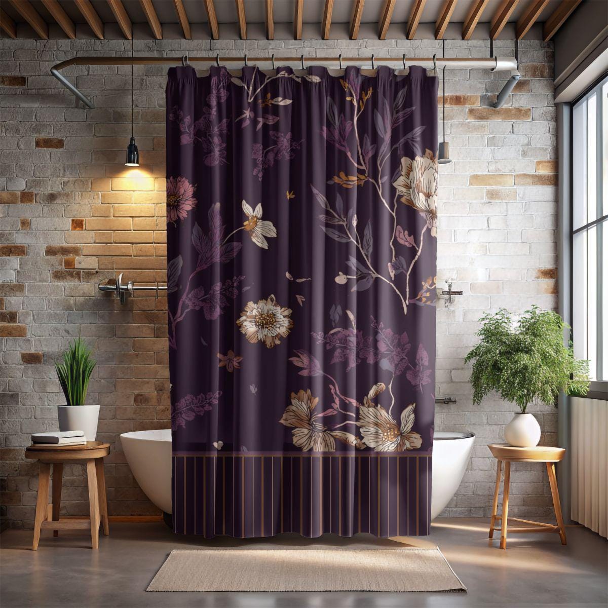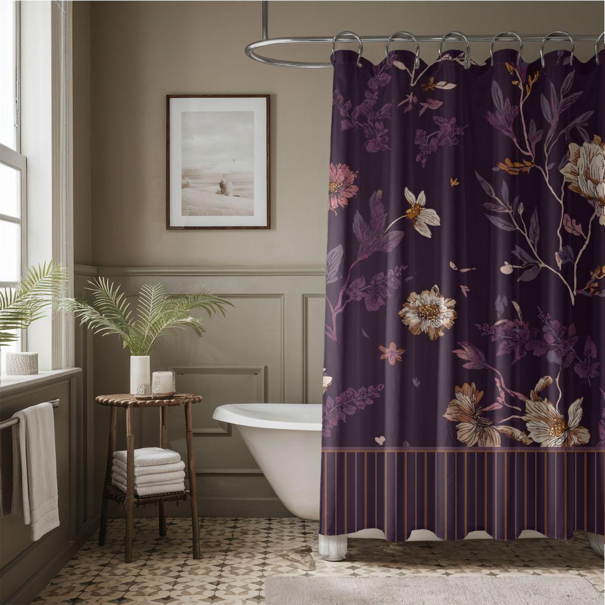 A dramatic plum ground layered with hand-drawn florals and a tailored striped border. Rich, romantic, and quietly bold — designed to turn an everyday bath into a statement moment. Includes coordinating hand towels for a pulled-together, intentional look.