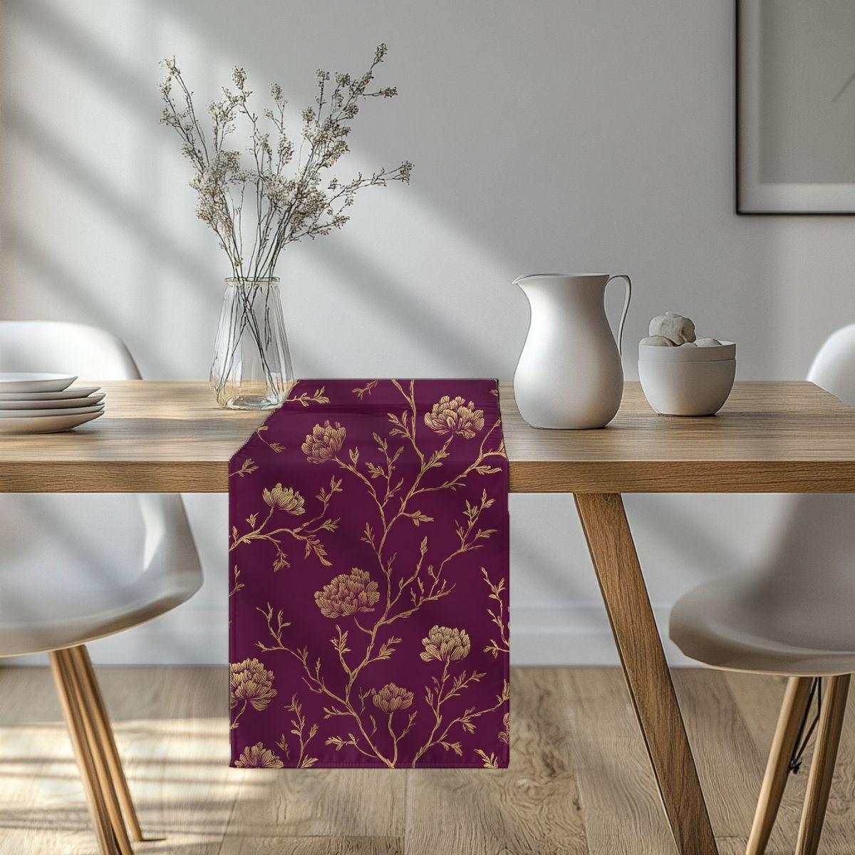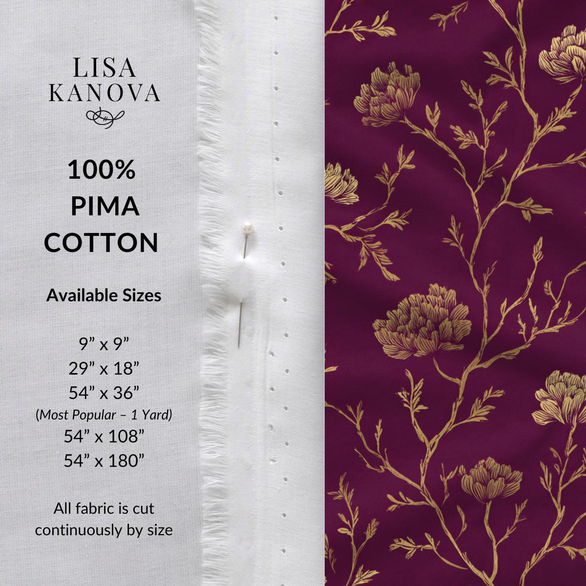 Royalty in Bloom is a richly layered floral printed on smooth, breathable Pima cotton, where delicate golden linework blooms across a deep, jewel-toned plum ground. The contrast feels opulent yet controlled, giving the pattern a sense of refinement rather than excess. There’s a timeless elegance here — dramatic without being heavy, ornate without feeling busy — making it ideal for bedrooms, statement baths, or spaces that call for depth and quiet luxury. Designed to feel enduring and elevated, this fabric brings a sense of richness and presence that instantly transforms a room.